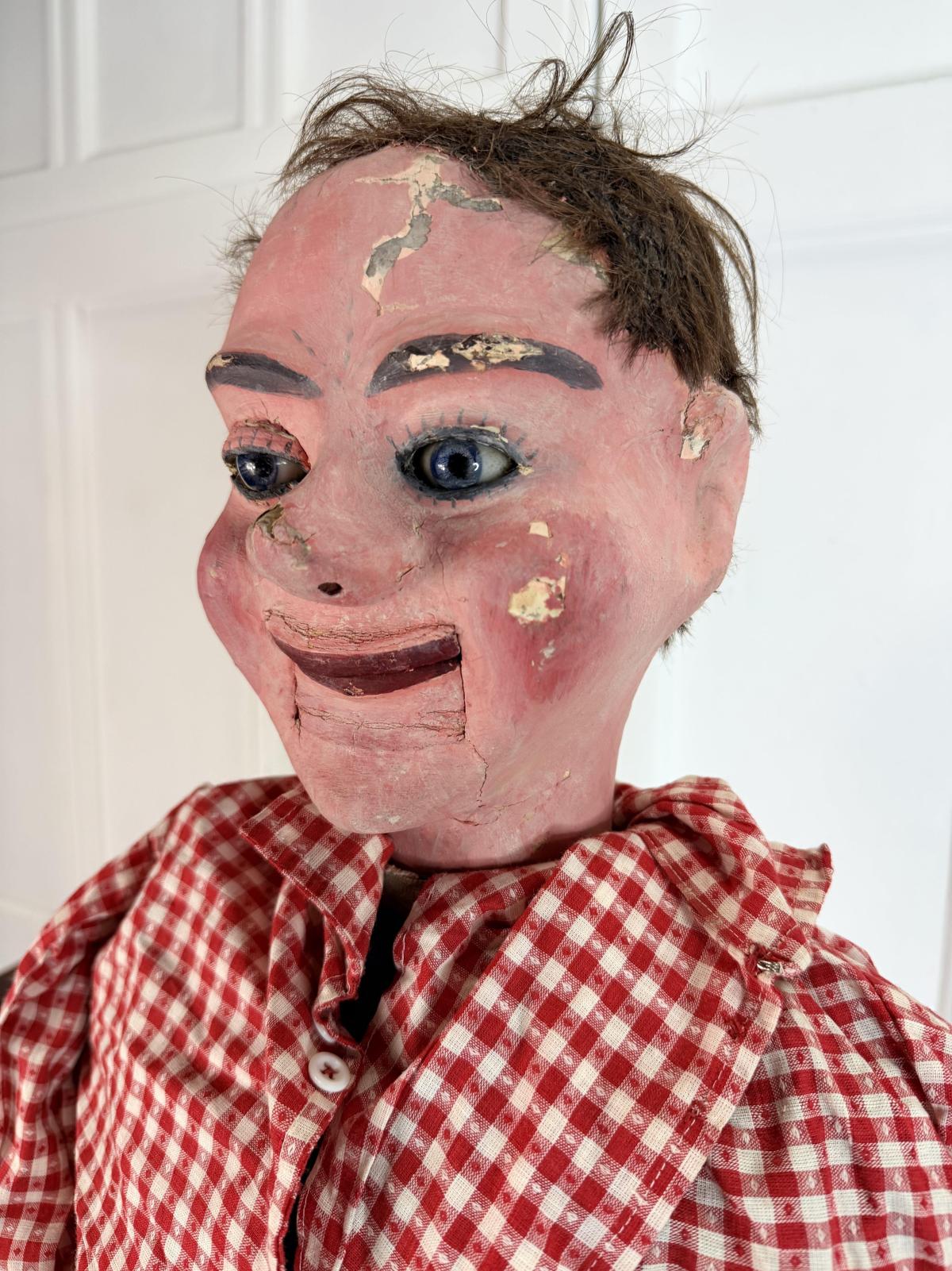 A rare, early 1900s ventriloquist dummy, retaining his period costume.