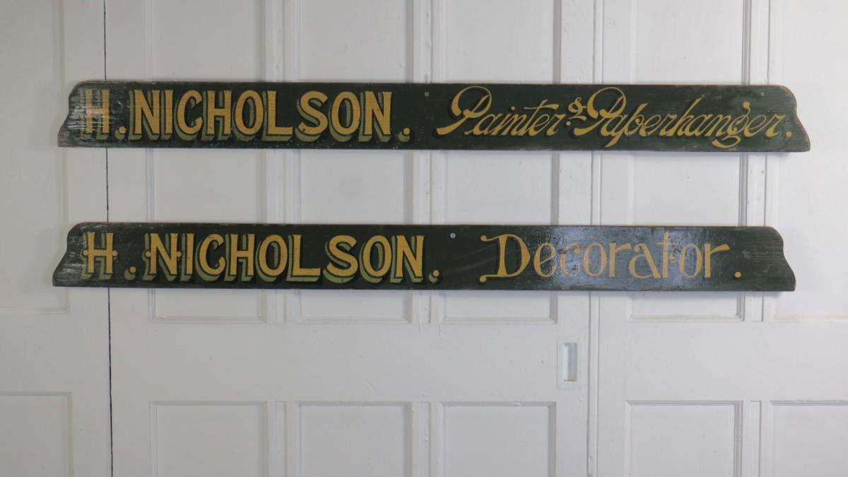 Decorative shadow font typography, for an H Nicholson, advertising his services as a painter, decorator and paper hanger.
