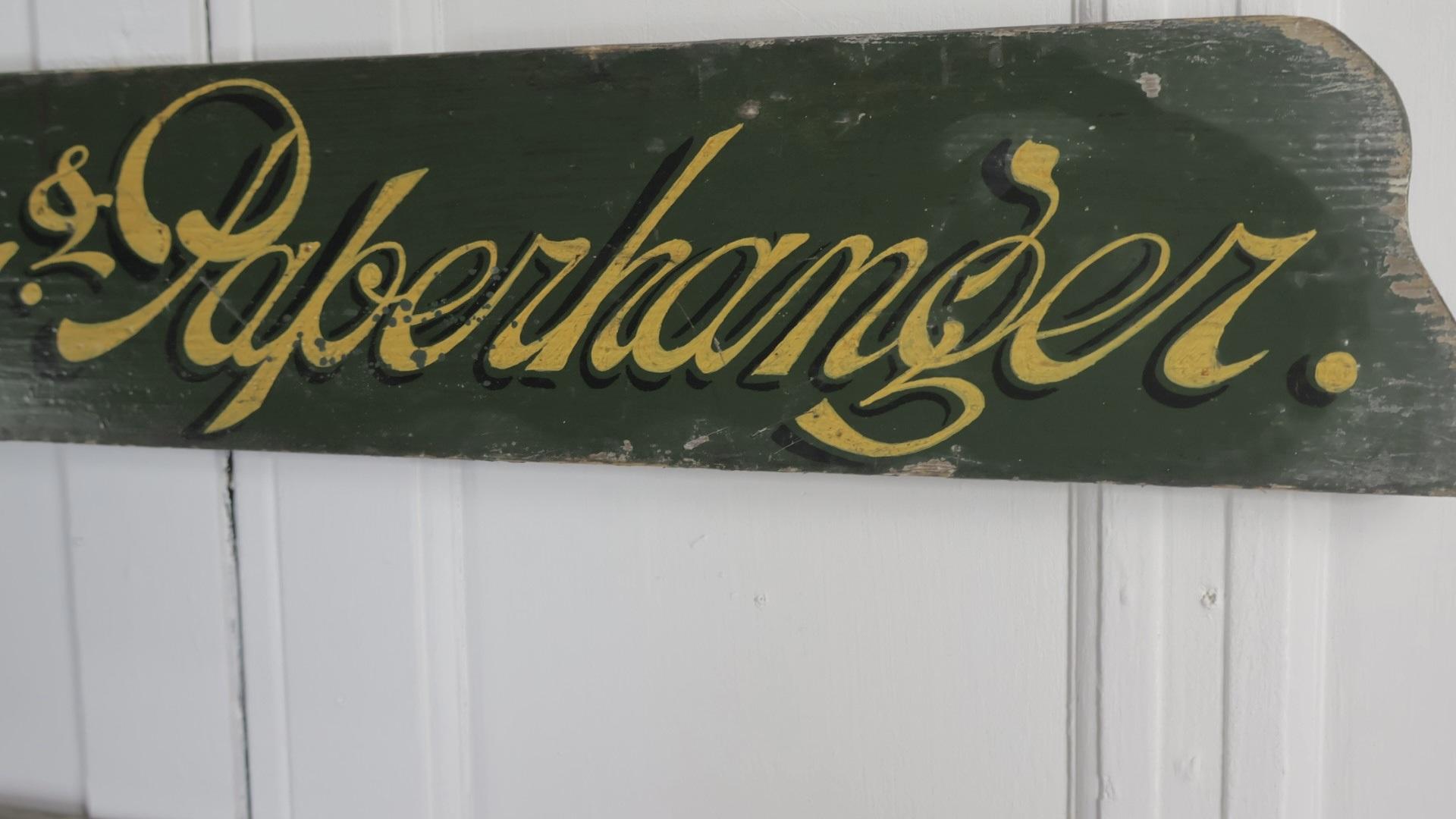 Charming pair of wooden, hand painted trade signs, originally on the side of a cart.