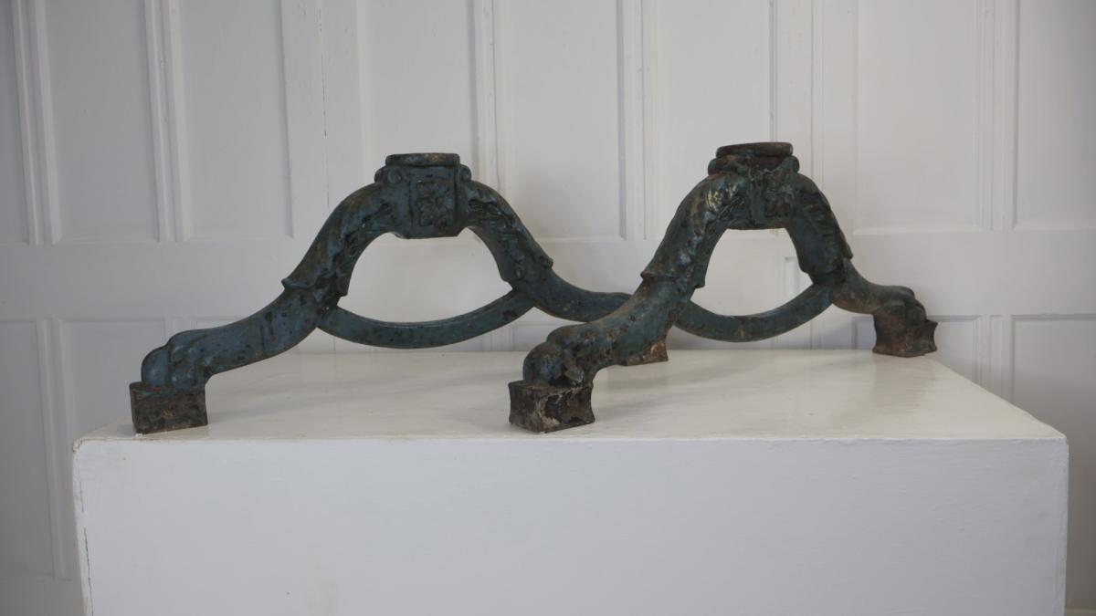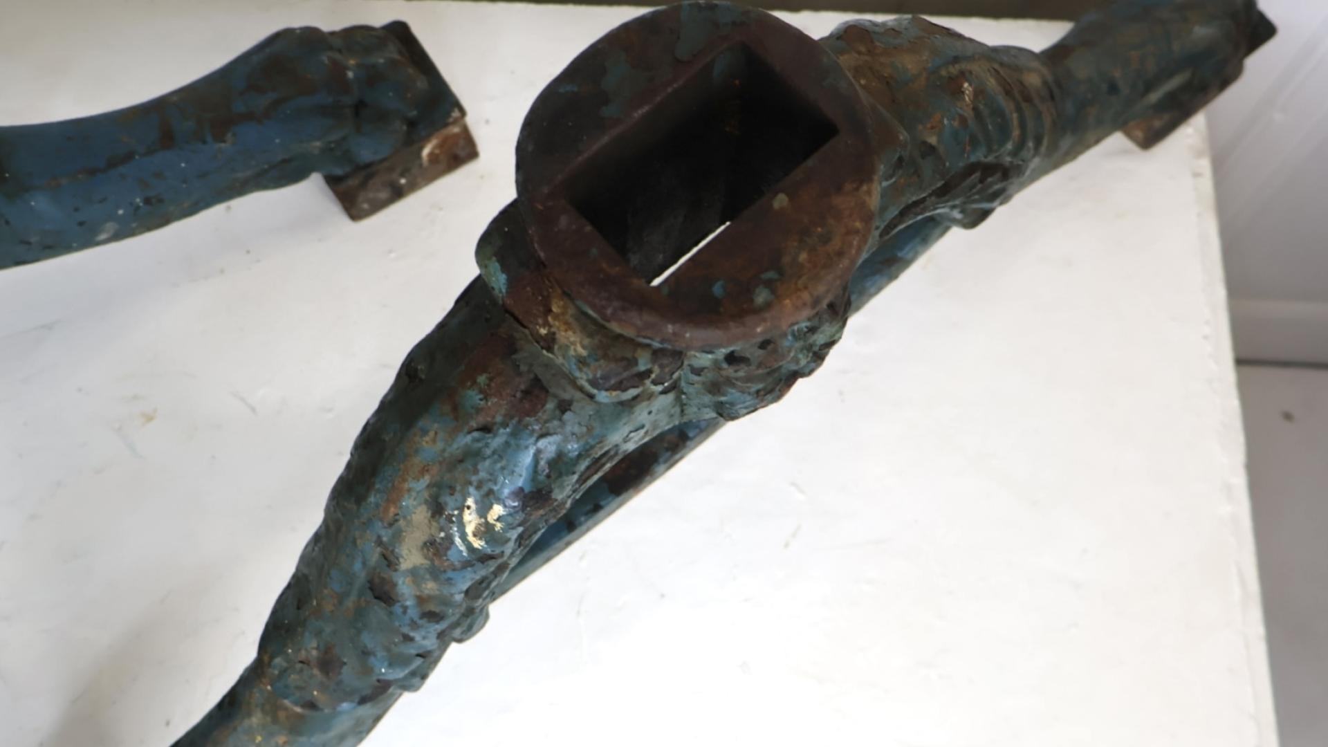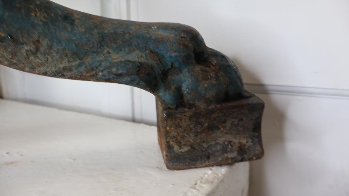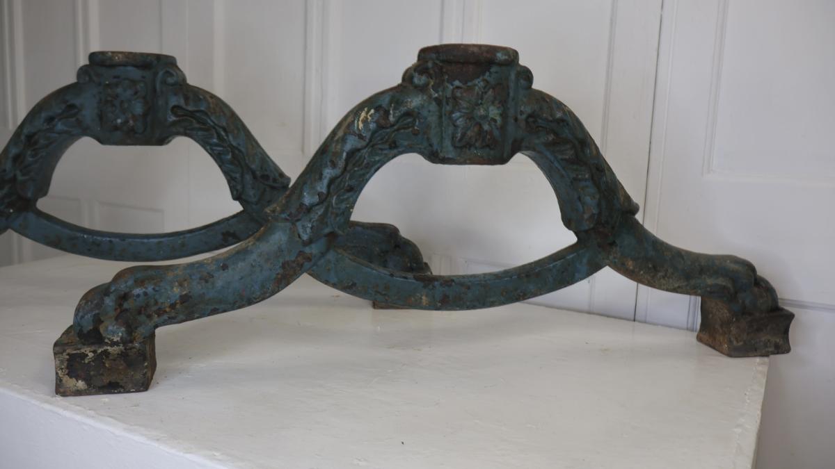Retaining the original blue paint, with decorative embossed detail and claw feet.