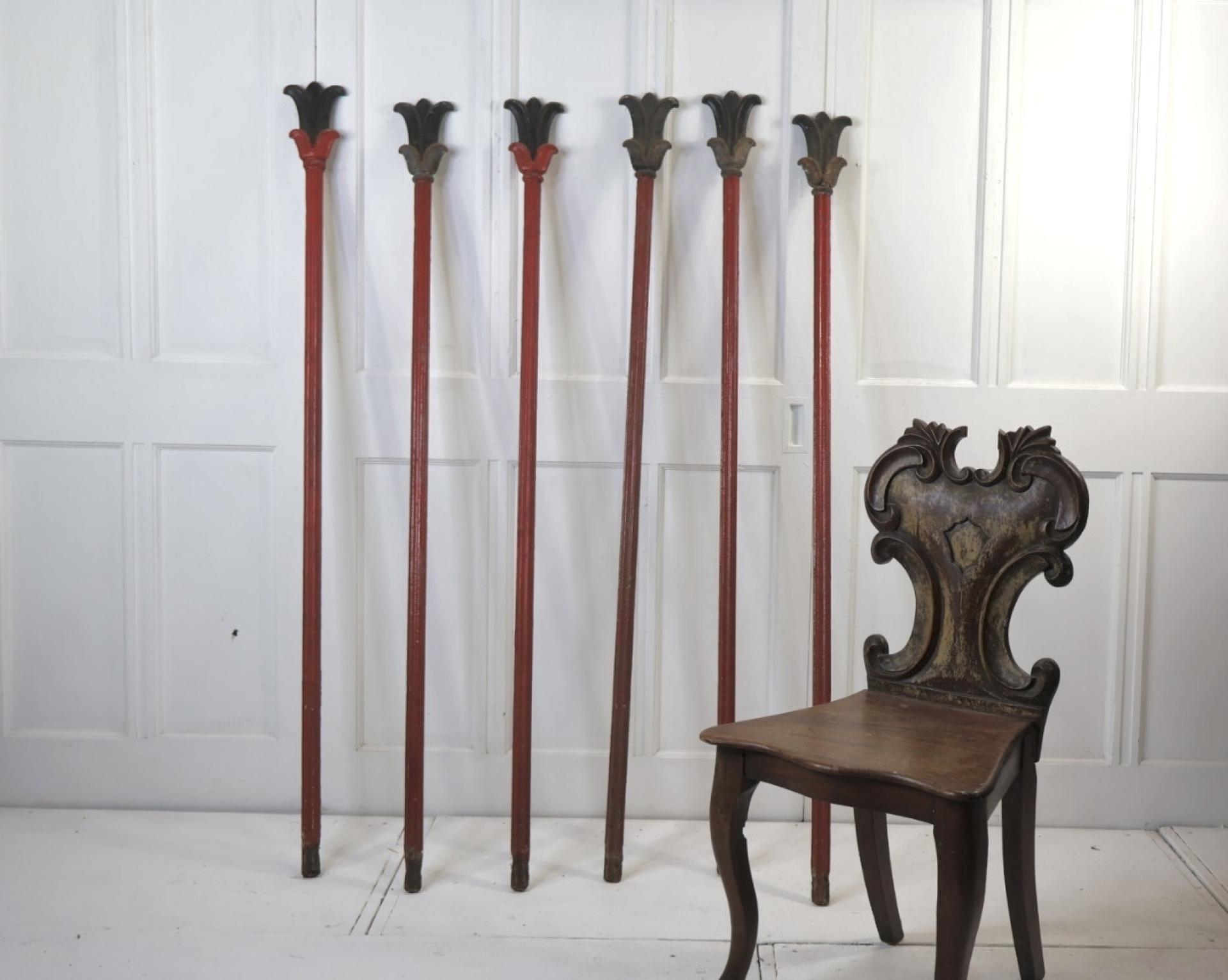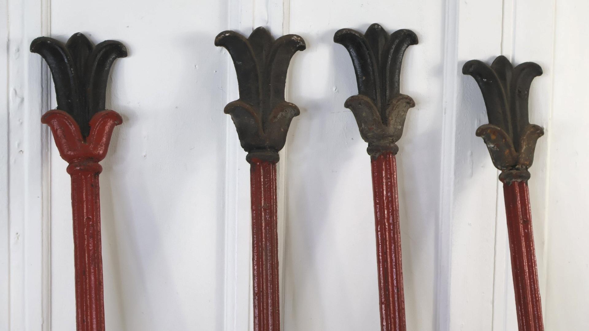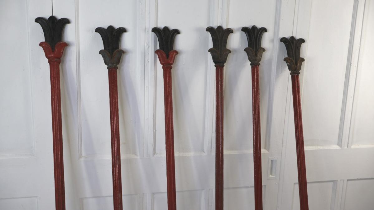 A run of 6 decorative, 19thc solid cast stakes, commonly seen around the North east of England in the Victorian period.
