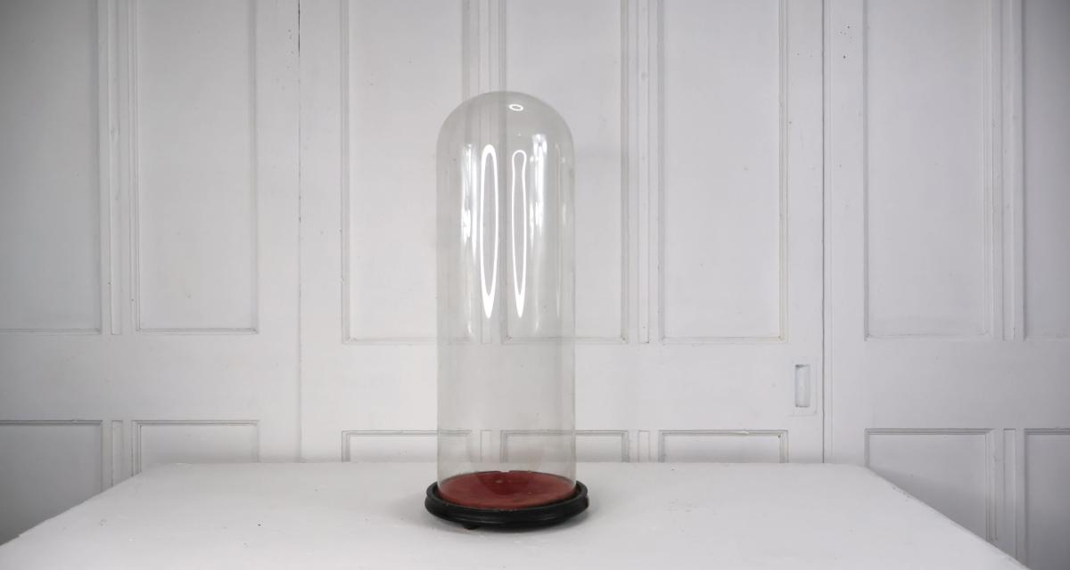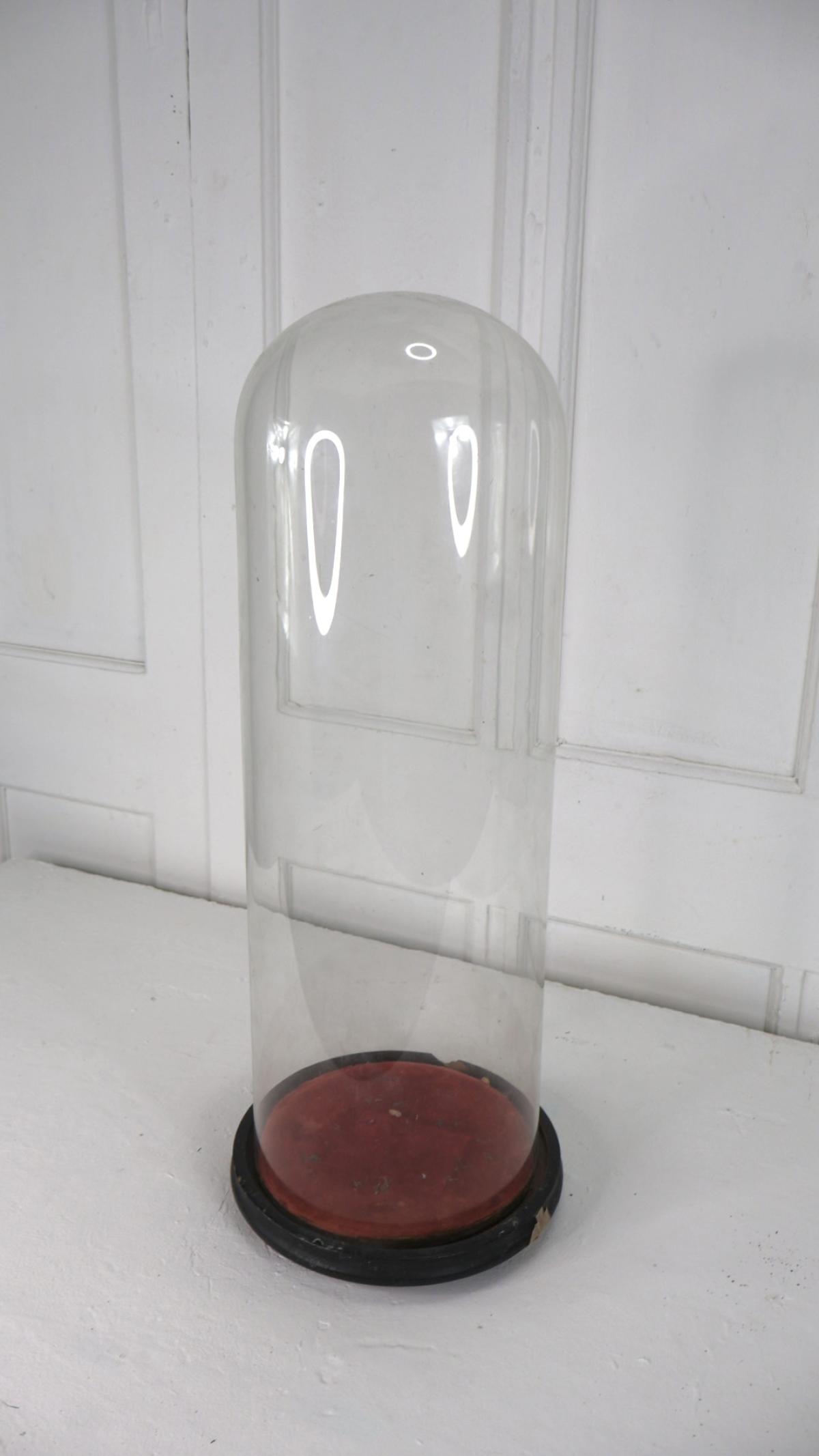 A nice example of a tall, hand blown 19thc glass dome.