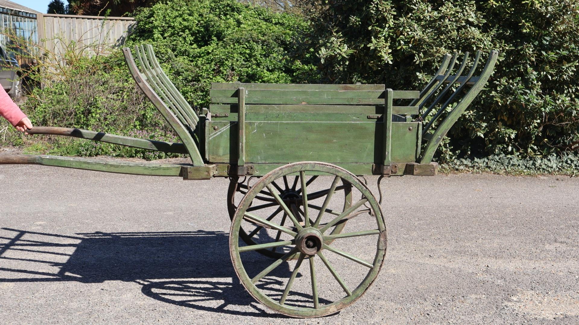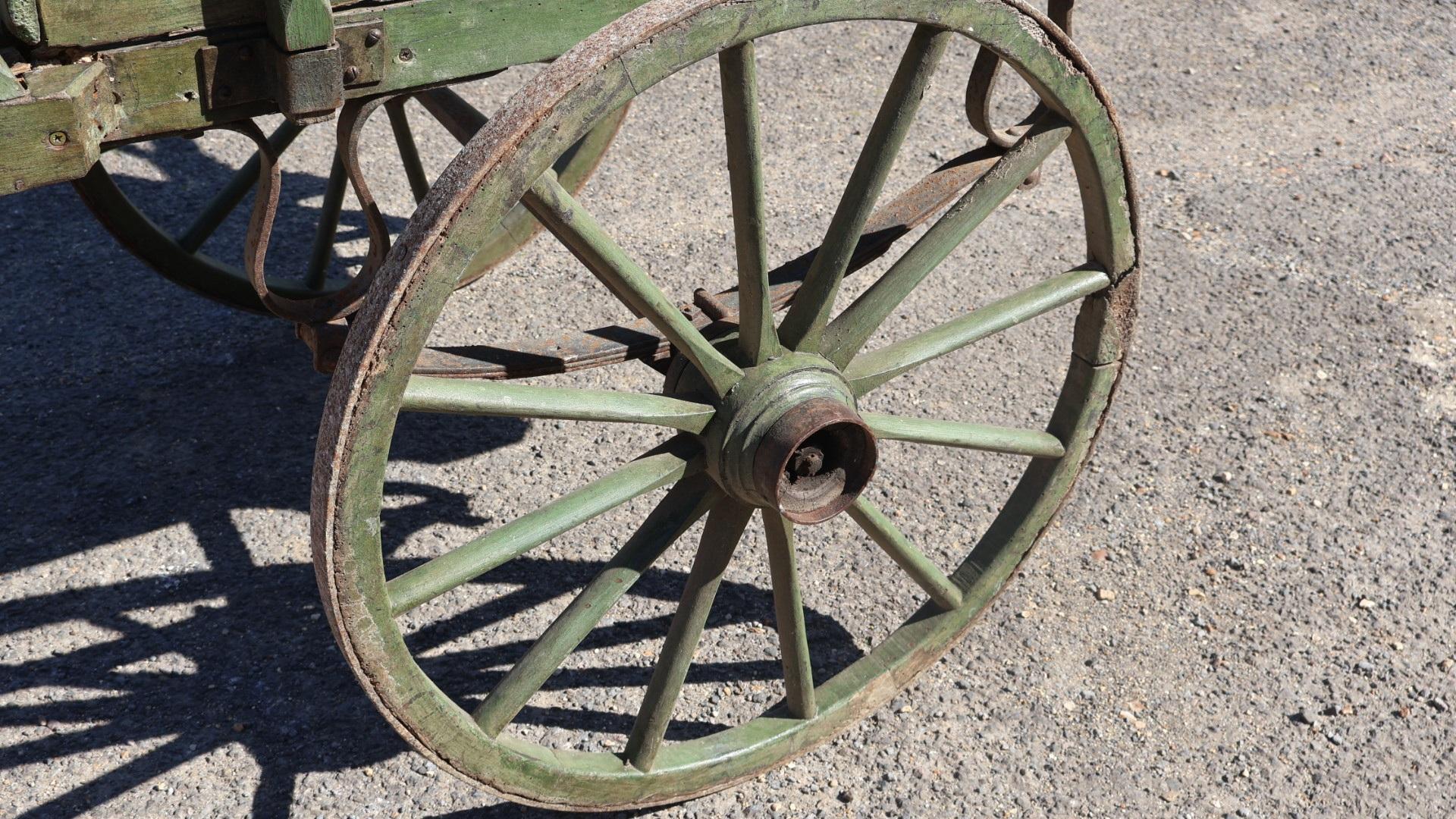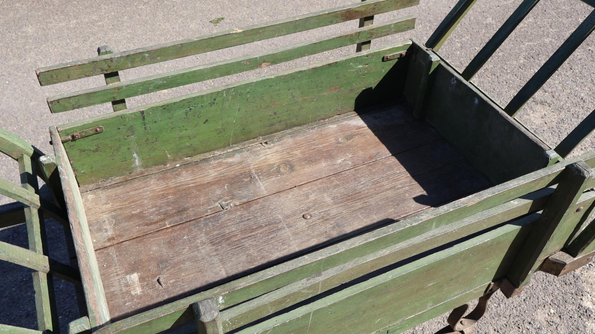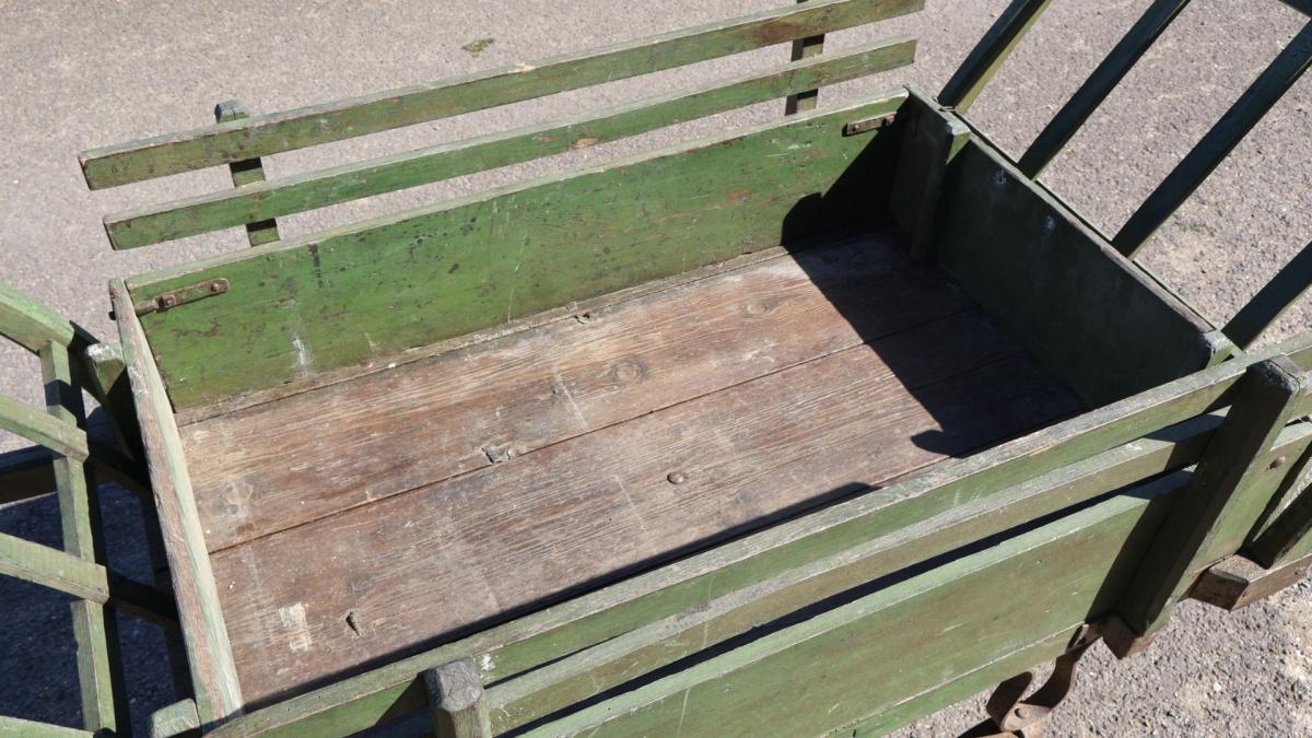 French, 19thc, wooden farmers trade cart, most likely used for textiles.