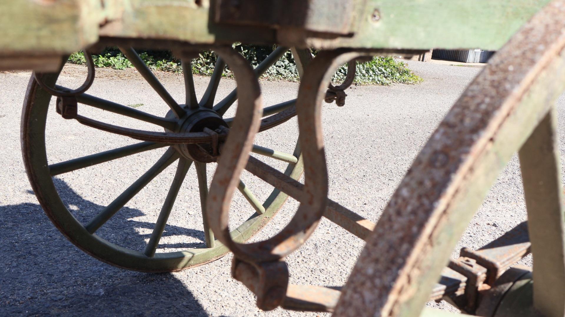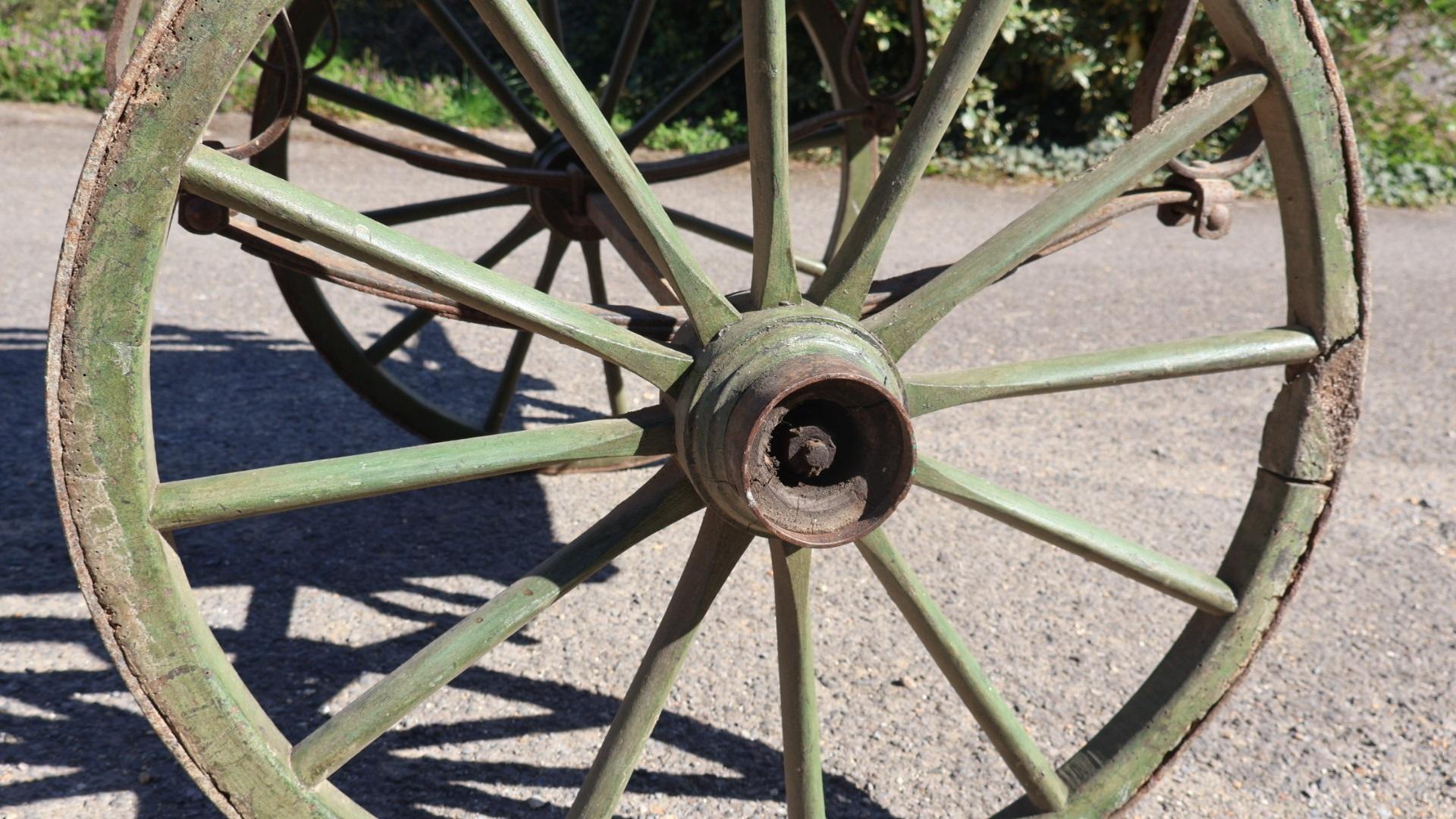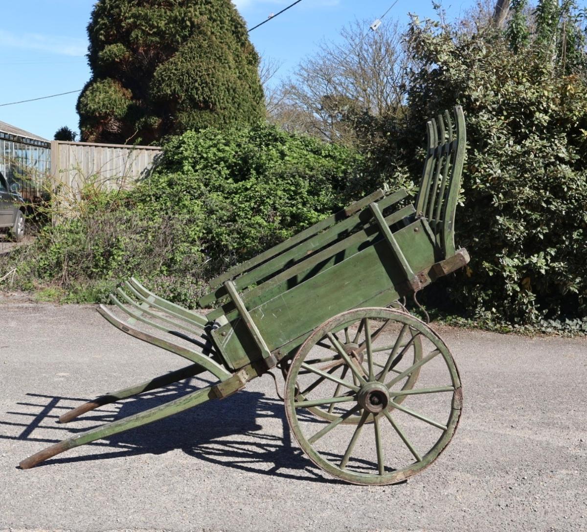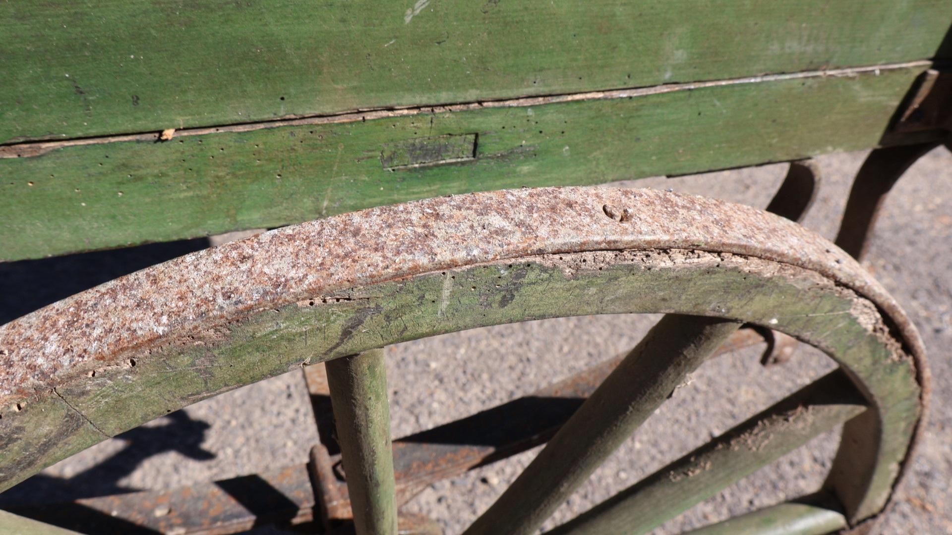French, 19thc, wooden farmers trade cart, most likely used for textiles.