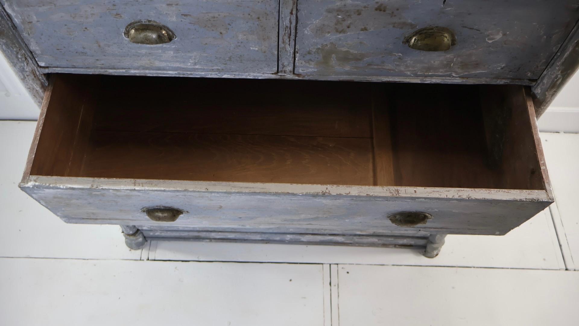 Comprising of 4 deep drawers with original metal cupped handles, scalloped edges and original back boards.