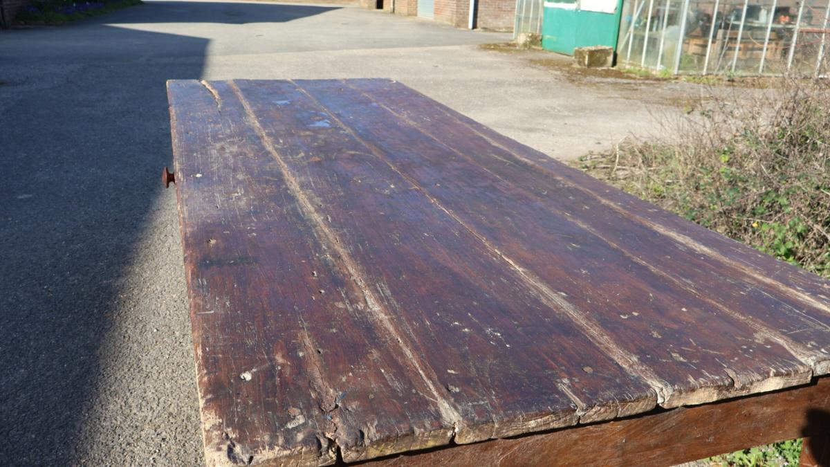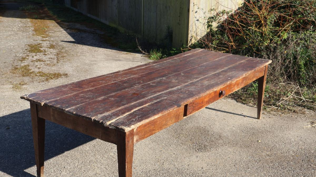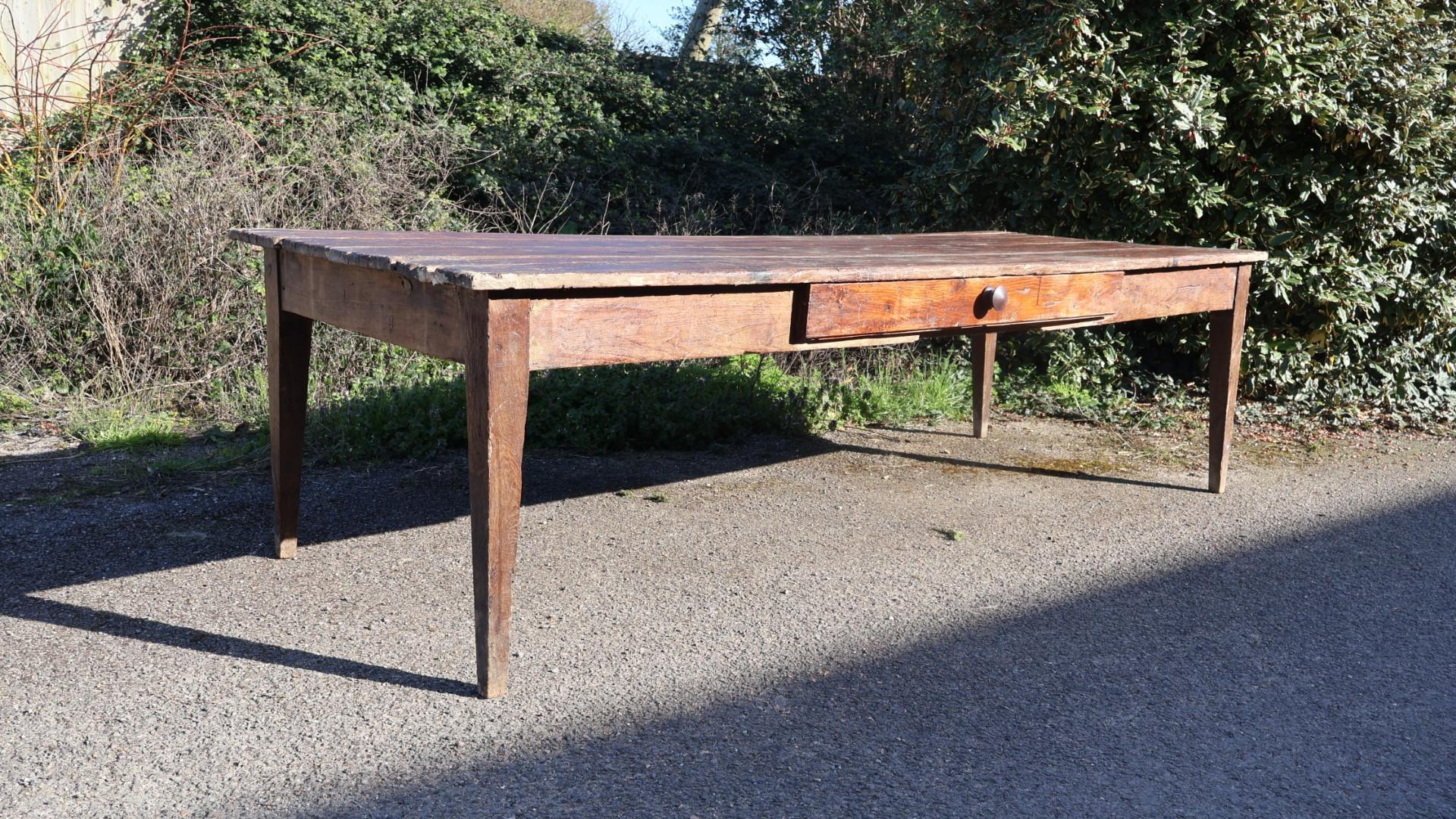 A large (just under 9 ft) rustic, 19thc, French farmhouse table.