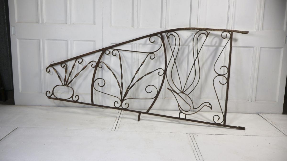 Originally installed in stone garden steps, the rail could be reinstated or displayed as a decorative panel.