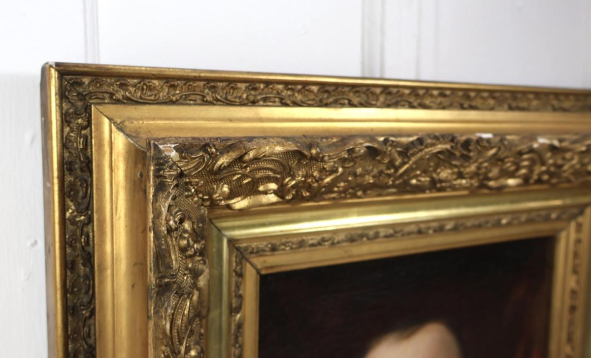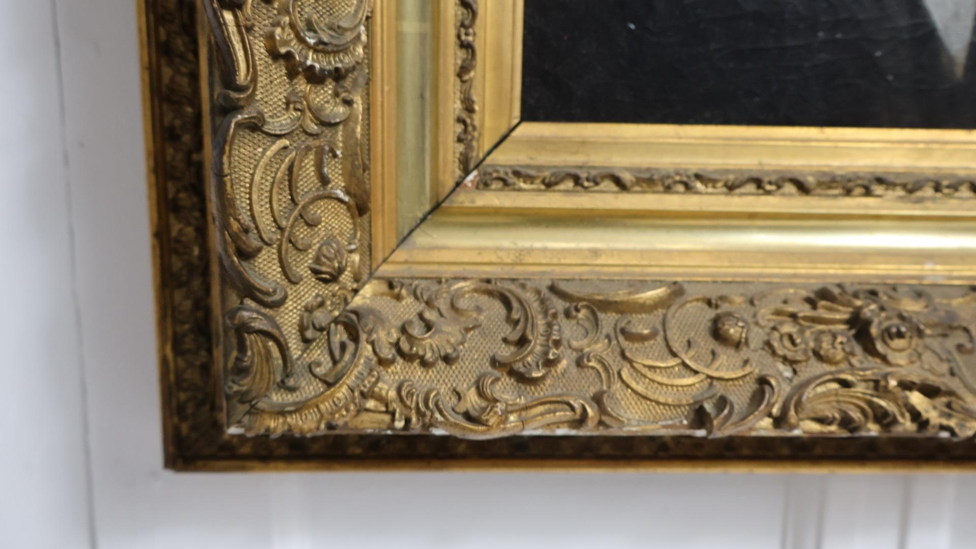Displayed in an incredible quality, hand carved and gilded gesso frame.