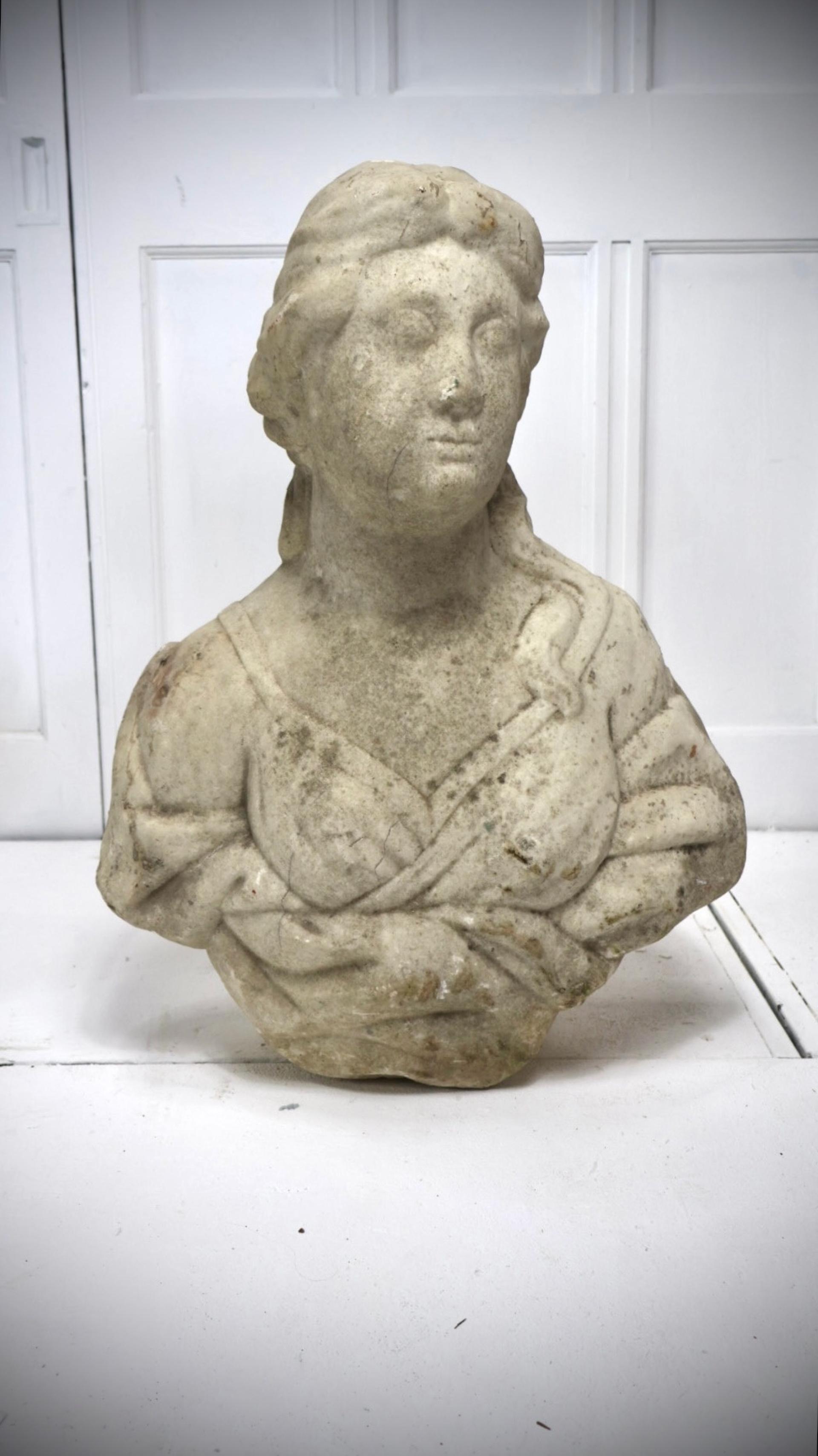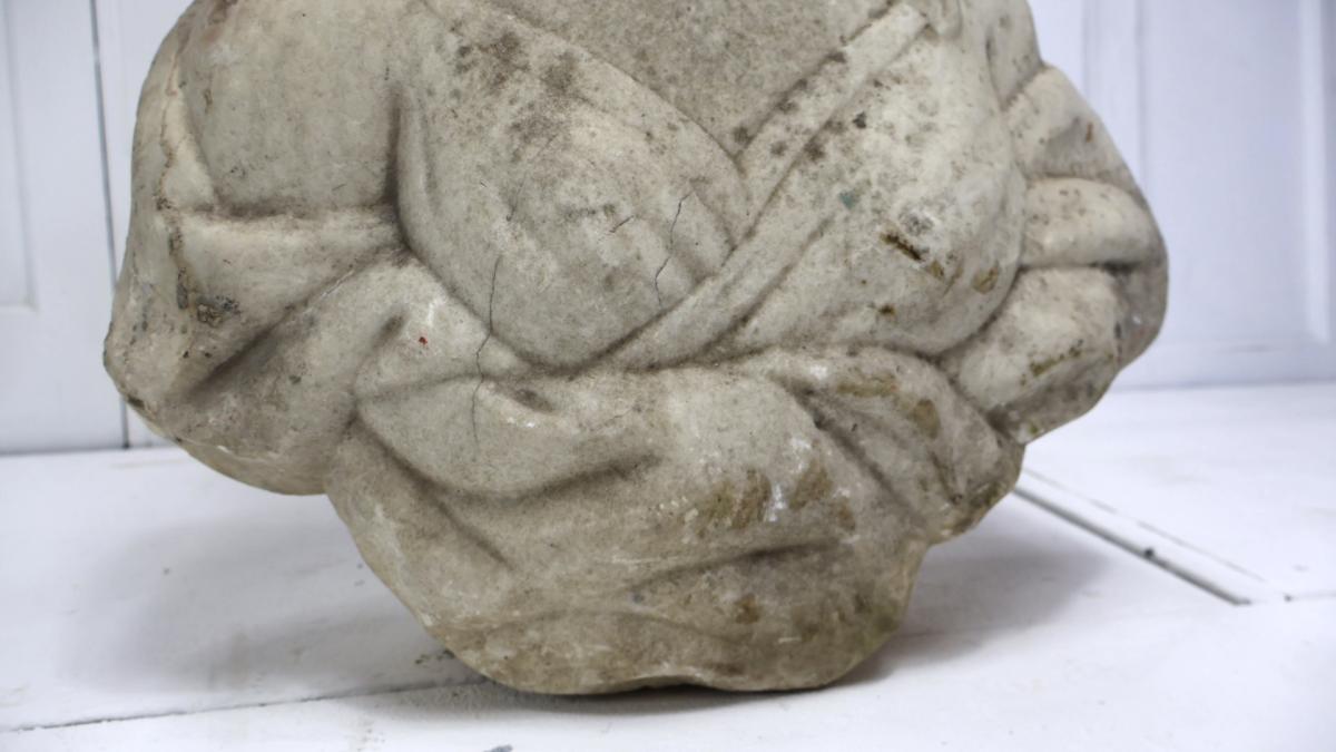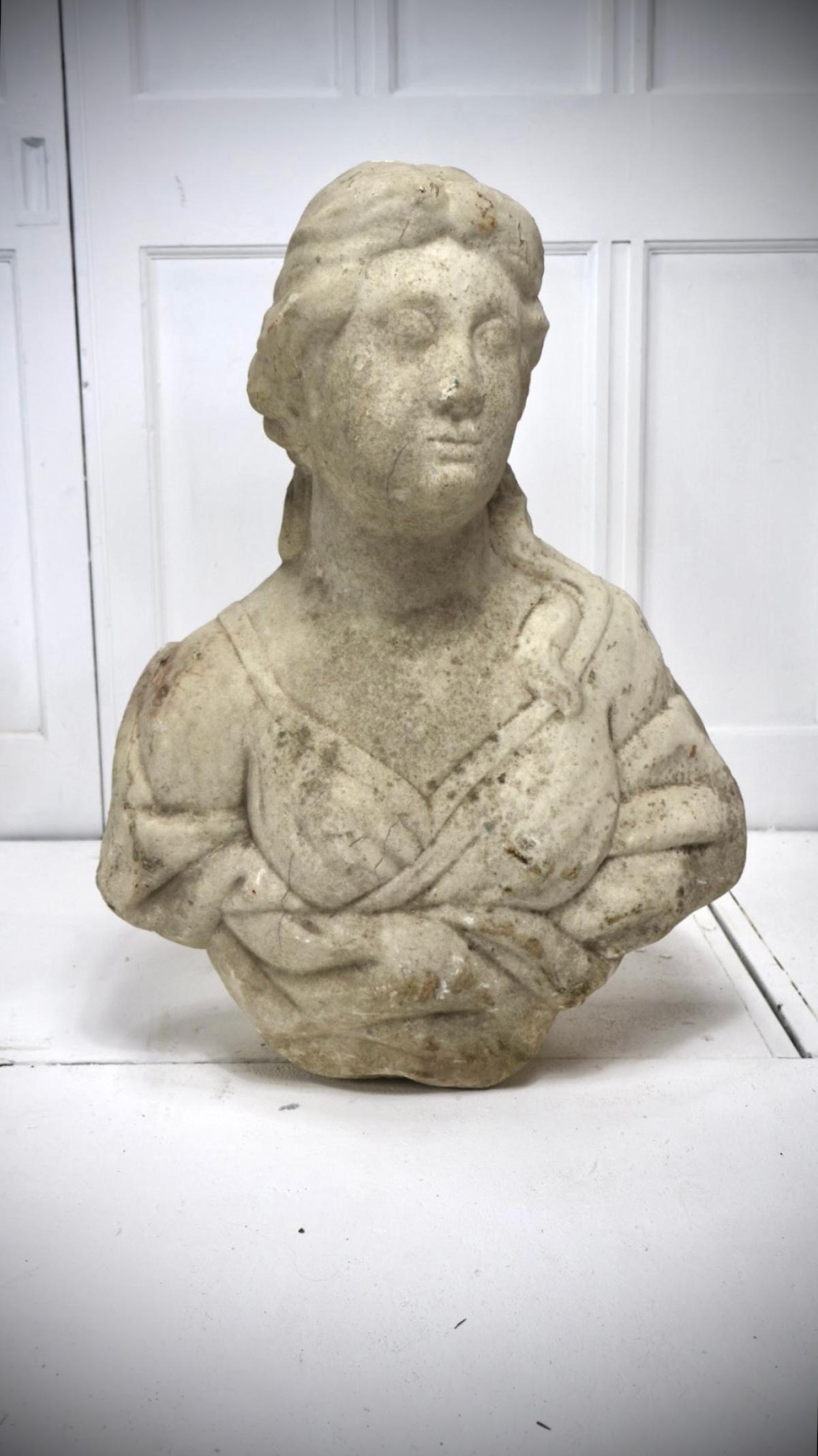 The bust has been outside for around 200 years giving the figure a ghostly weathered look.
