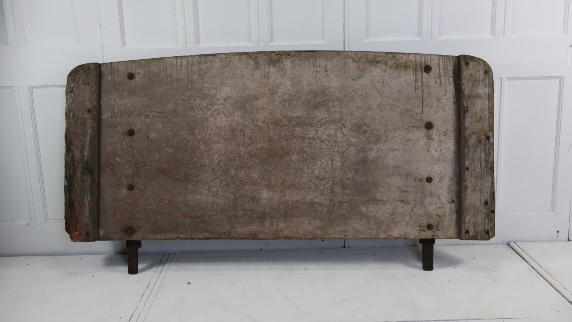 The sign still has the original wrought iron strapping, and hand forged bolts where it was attached to the cart.