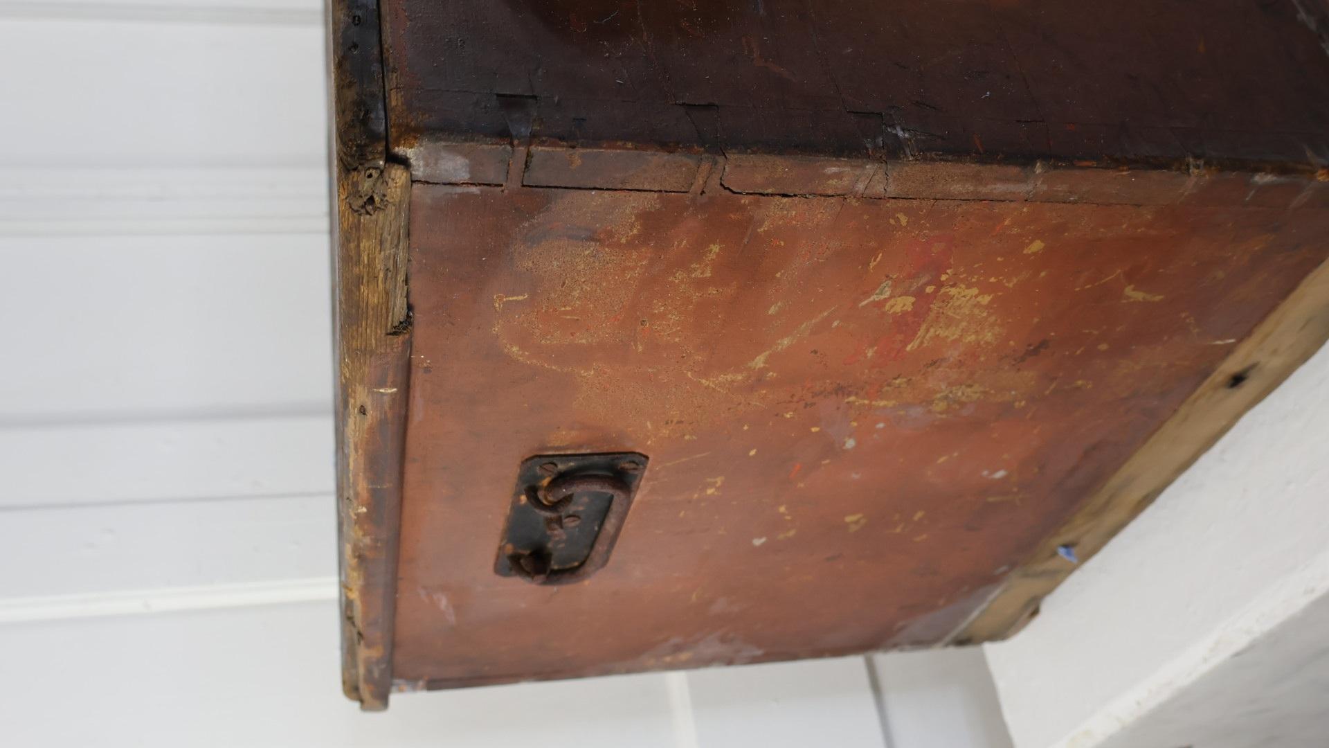 A very decorative, mid 19thc pine travel trunk in its original colour.