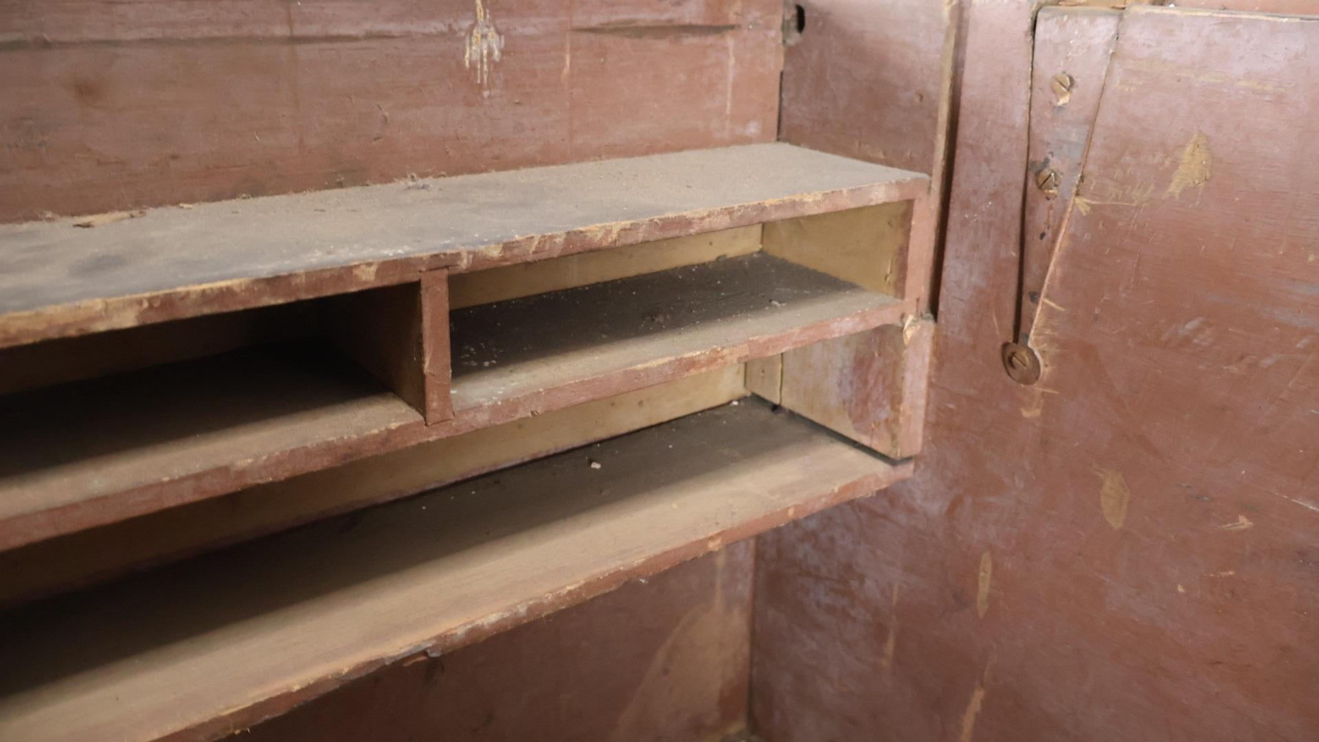 Clean and tidy internally, with a small divided section originally housing candles, wicks and matches.