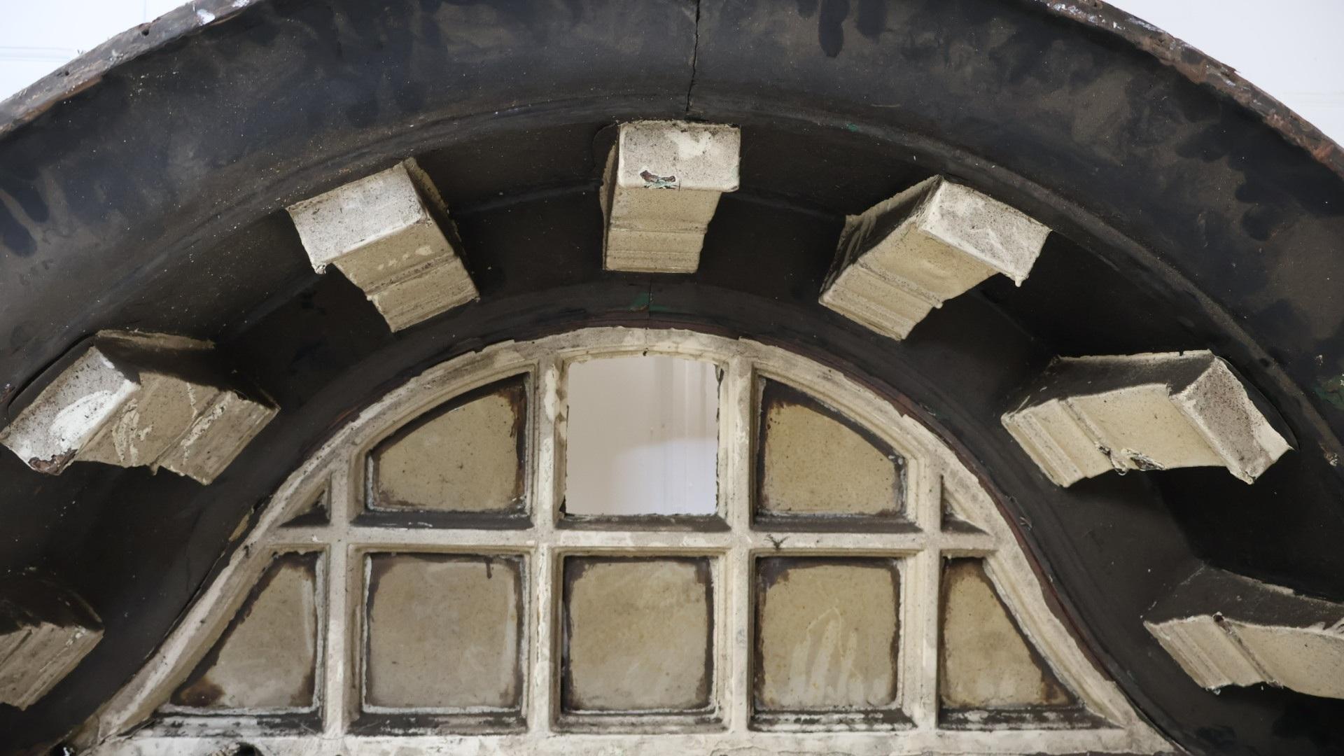 In the shape of Napoleons hat, this wooden arch with its borrowed light window sat above the door of a pub in Liverpool docks.