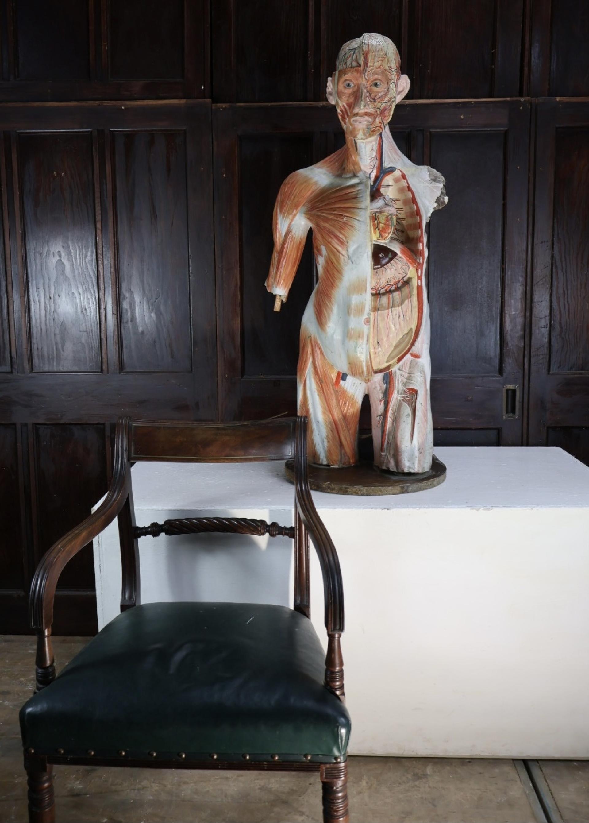 The torso and head are layered in numbered sections which would have aided the doctors/surgeons during their education.