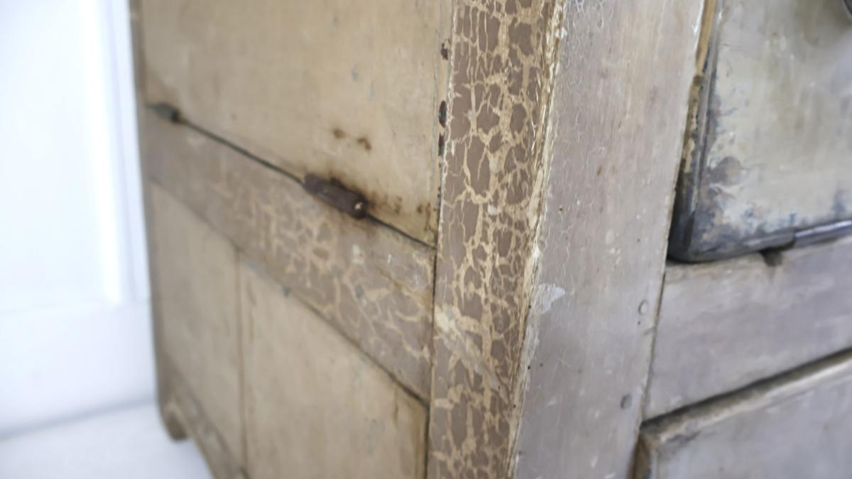 Finished in the original paint with a decorative crackled finish, in good, clean and solid condition.