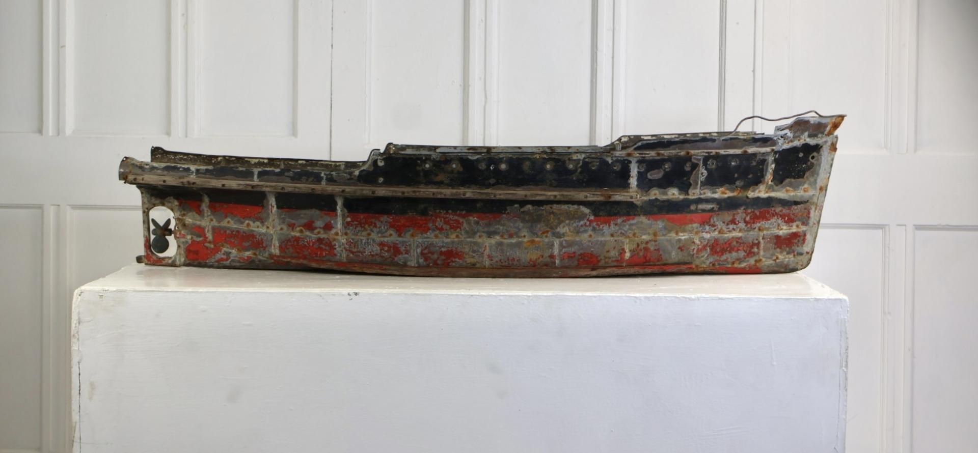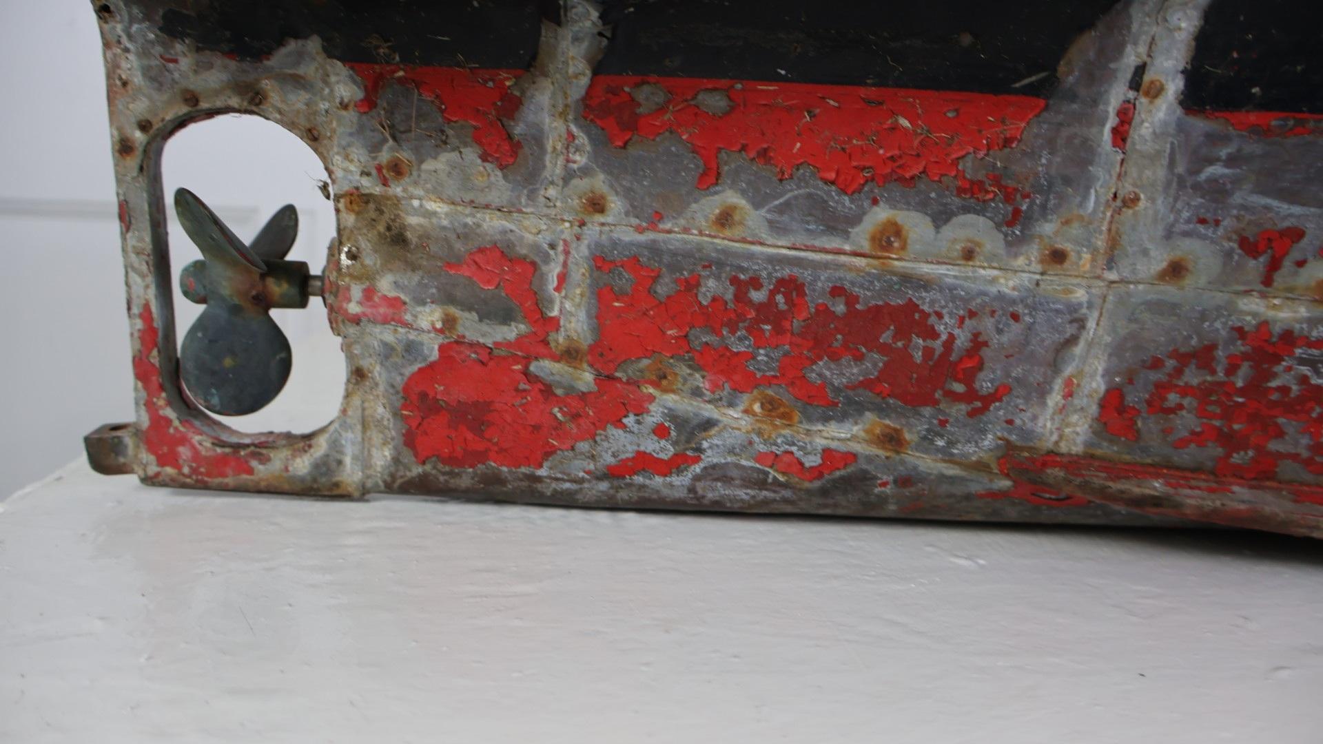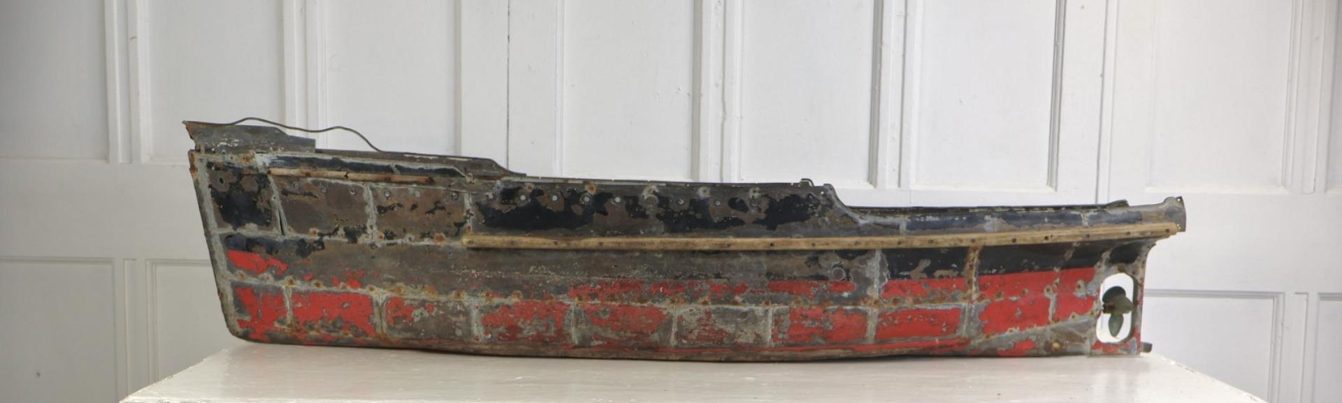 An incredible piece of early 1900s Folk Art, the ships hull (at over 4ft long) is handmade from copper, with hand made rivets.