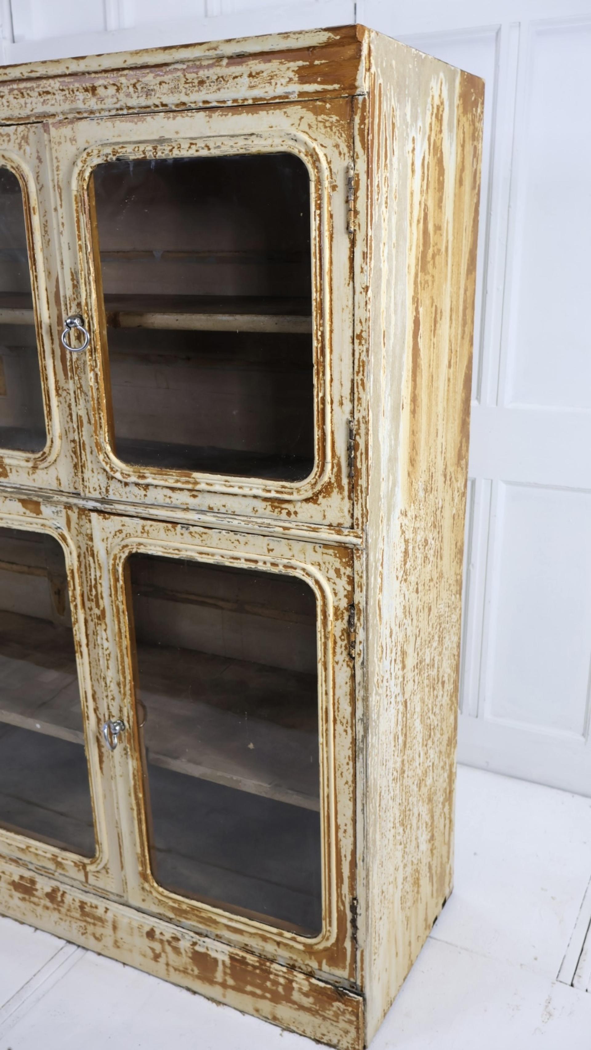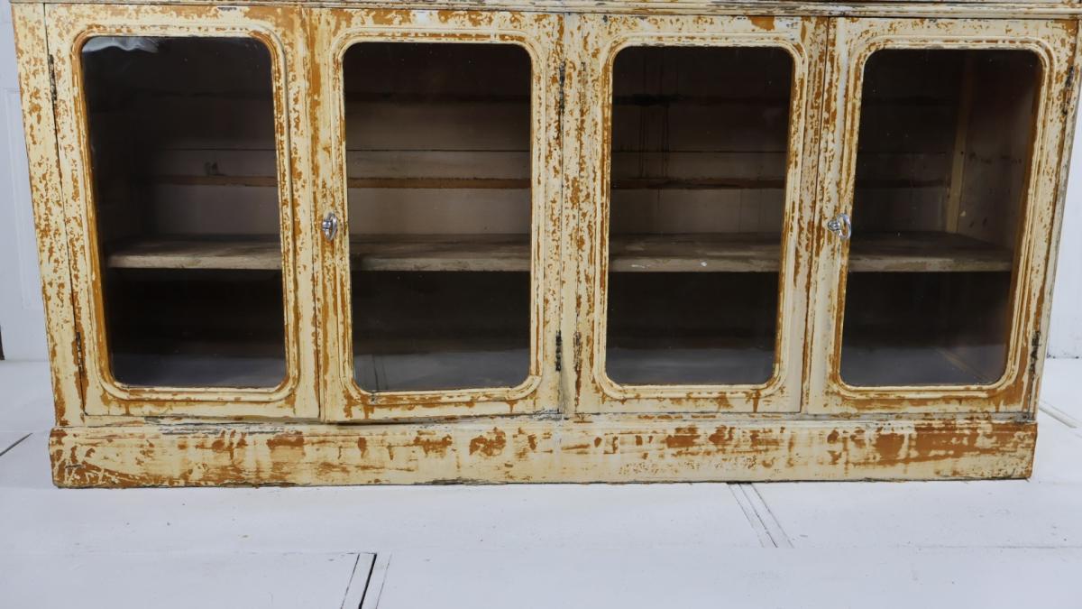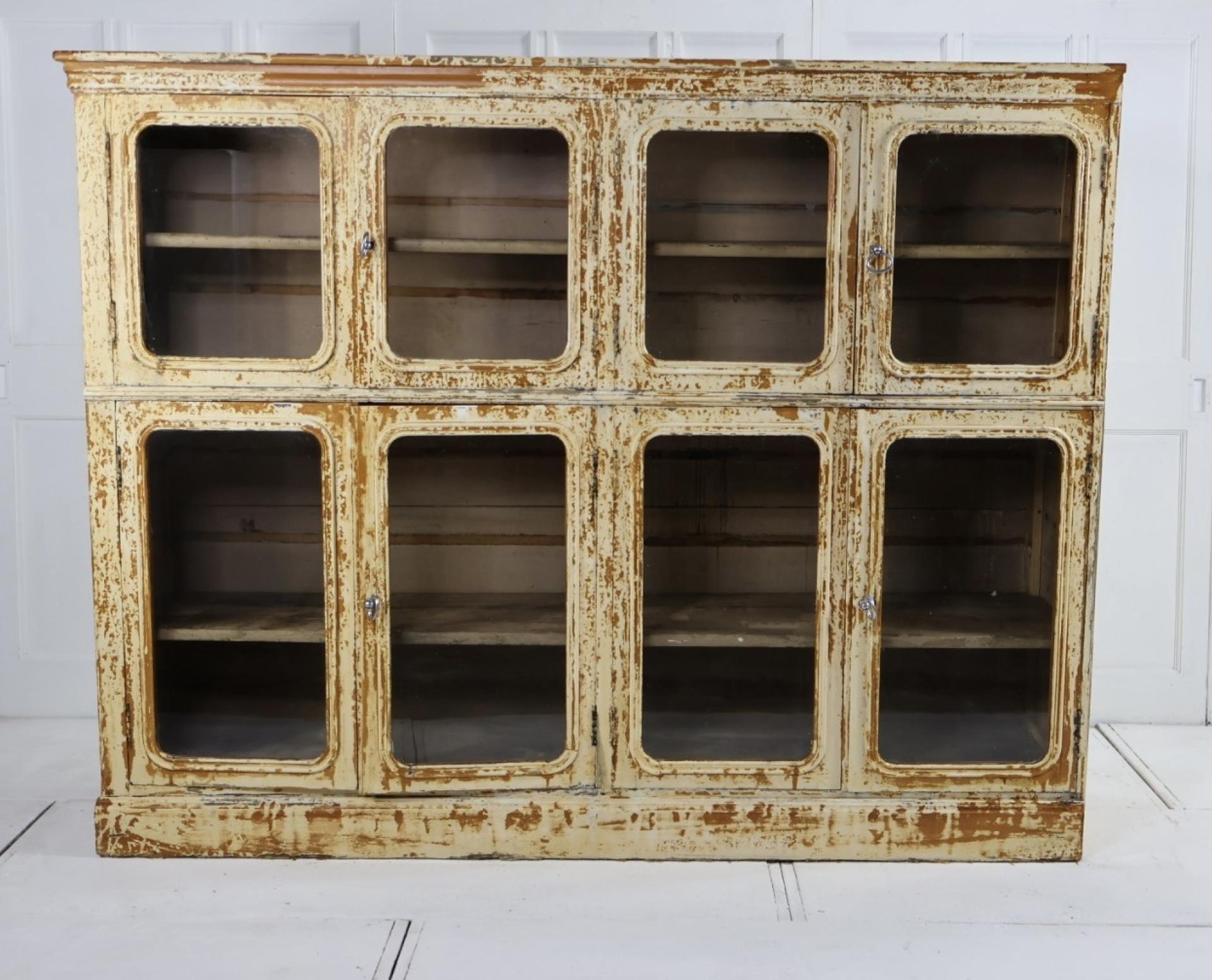 Comprising of 4 separate cupboard sections, each with 2 glazed doors, retaining their internal shutter style locks.