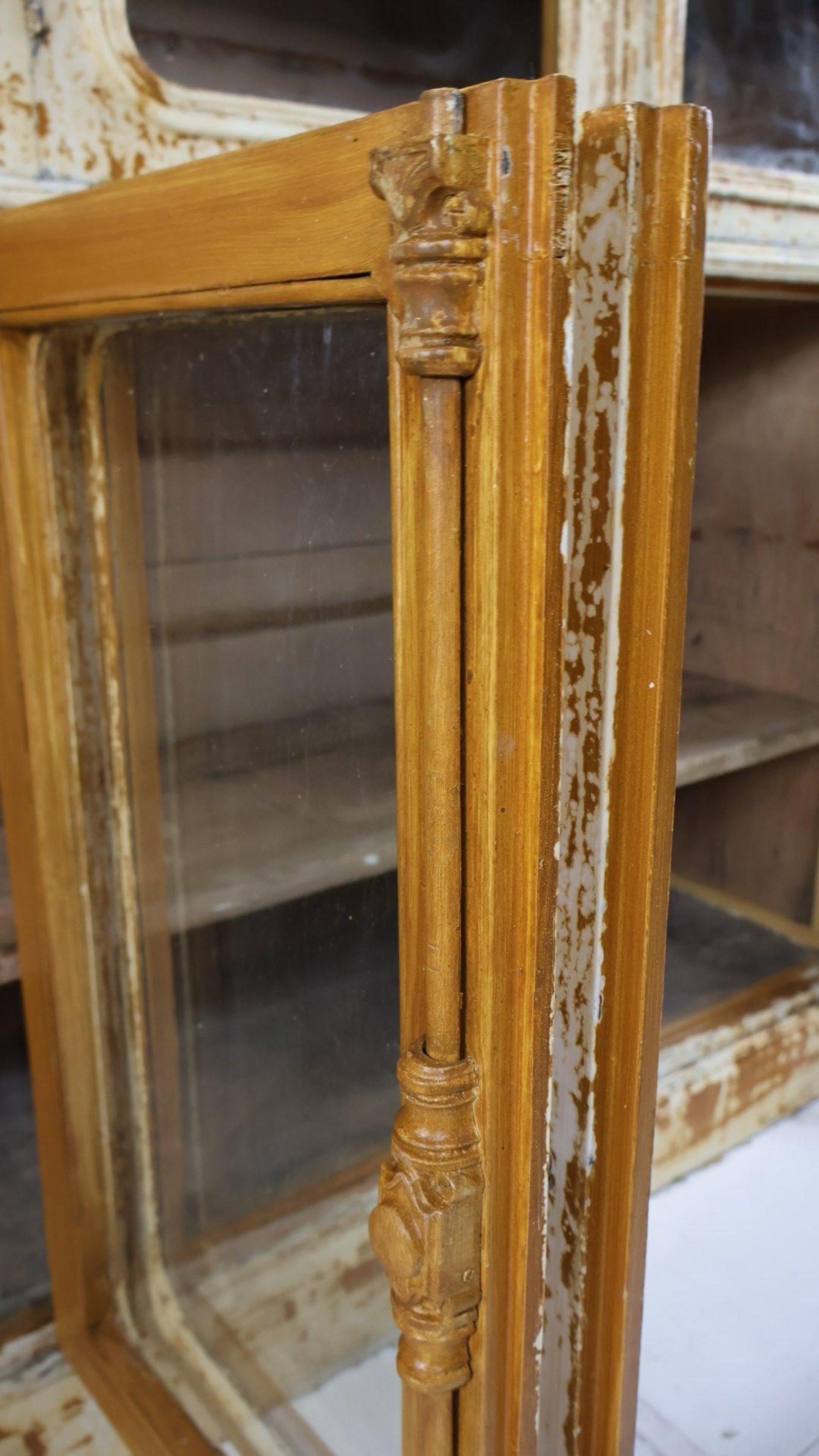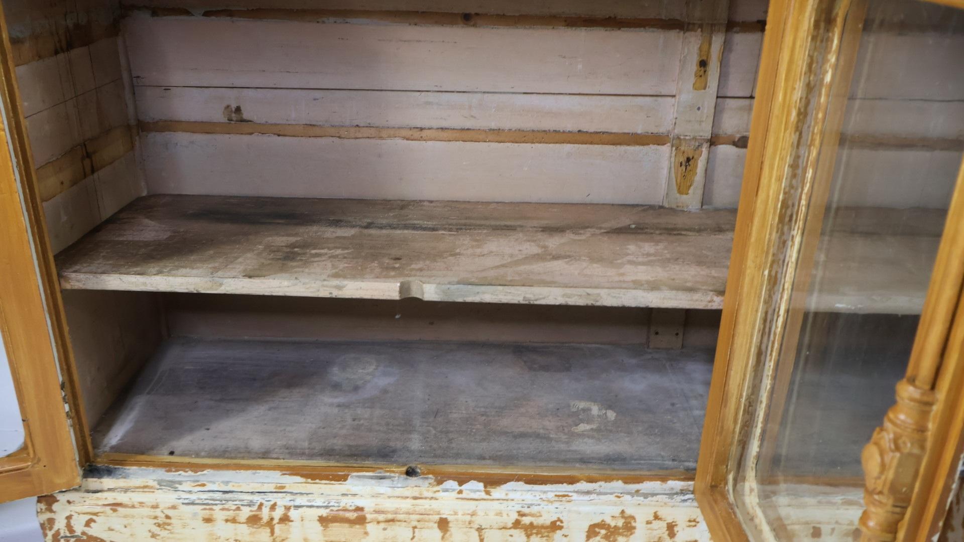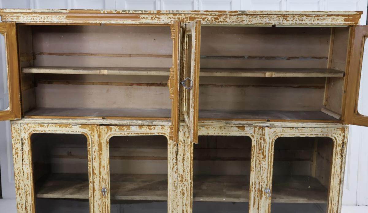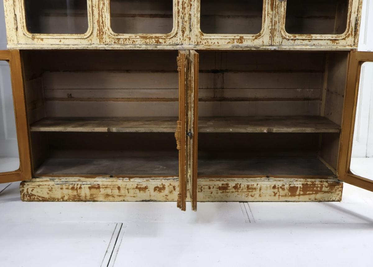 Comprising of 4 separate cupboard sections, each with 2 glazed doors, retaining their internal shutter style locks.