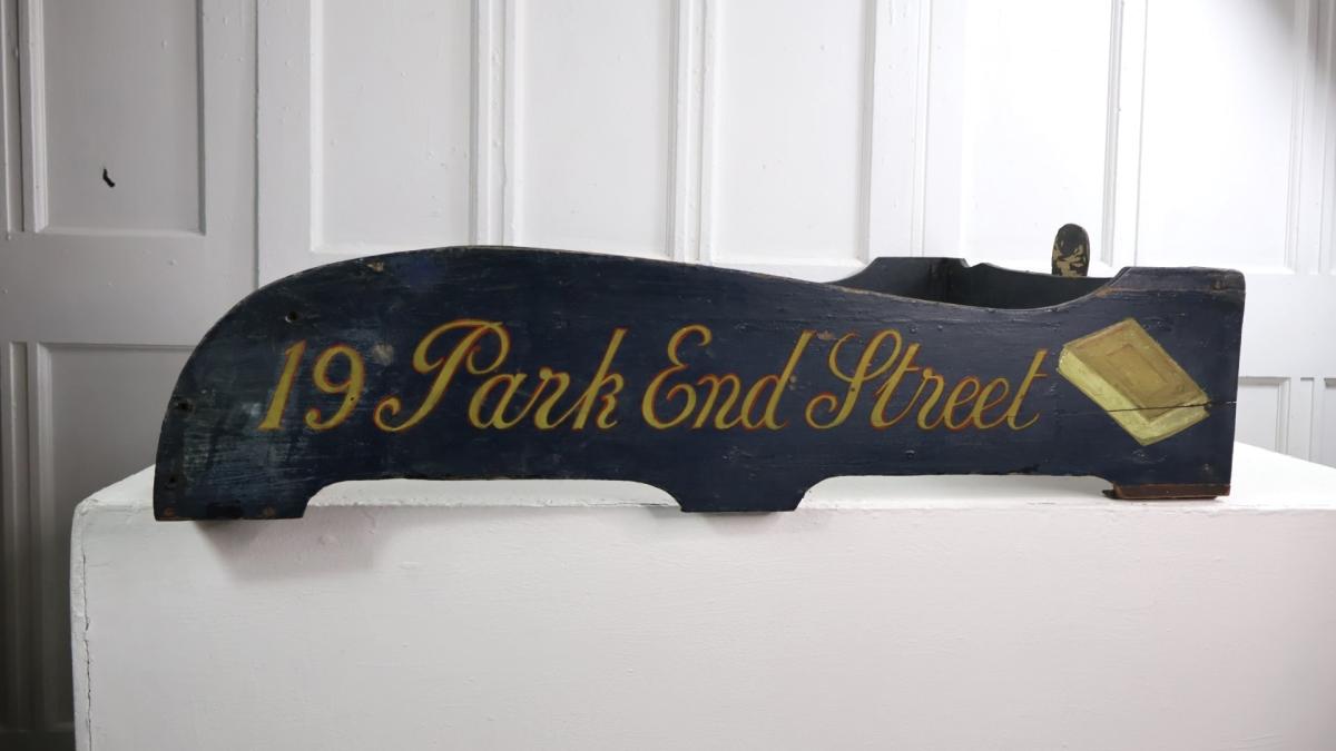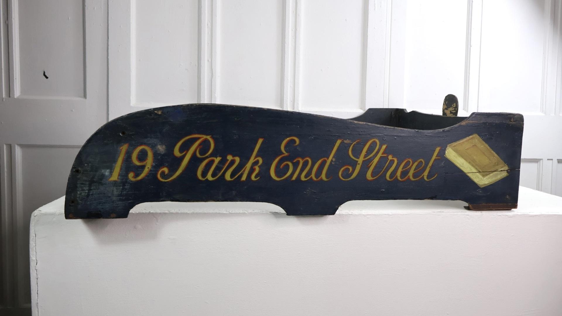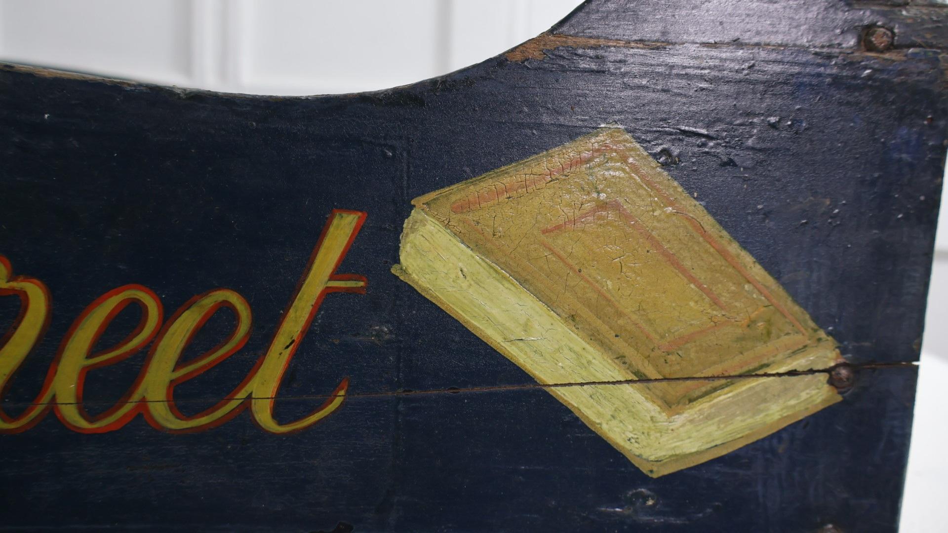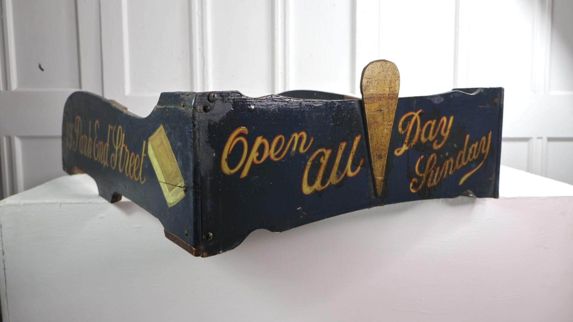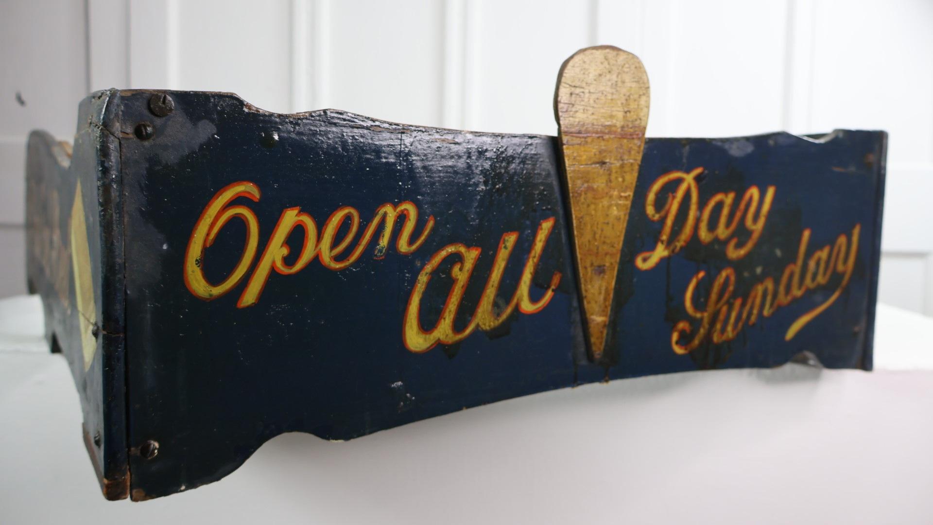 A very charming, hand painted, early 20thc trade sign, originally sitting on a trade cart outside an ice cream parlour.
