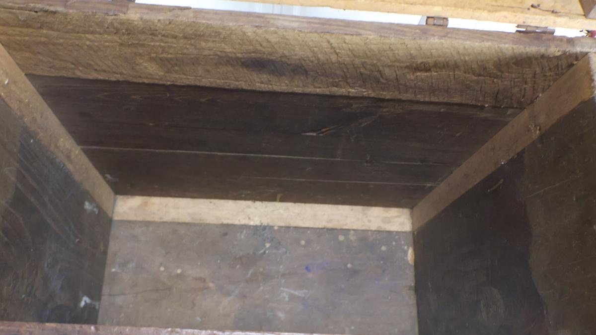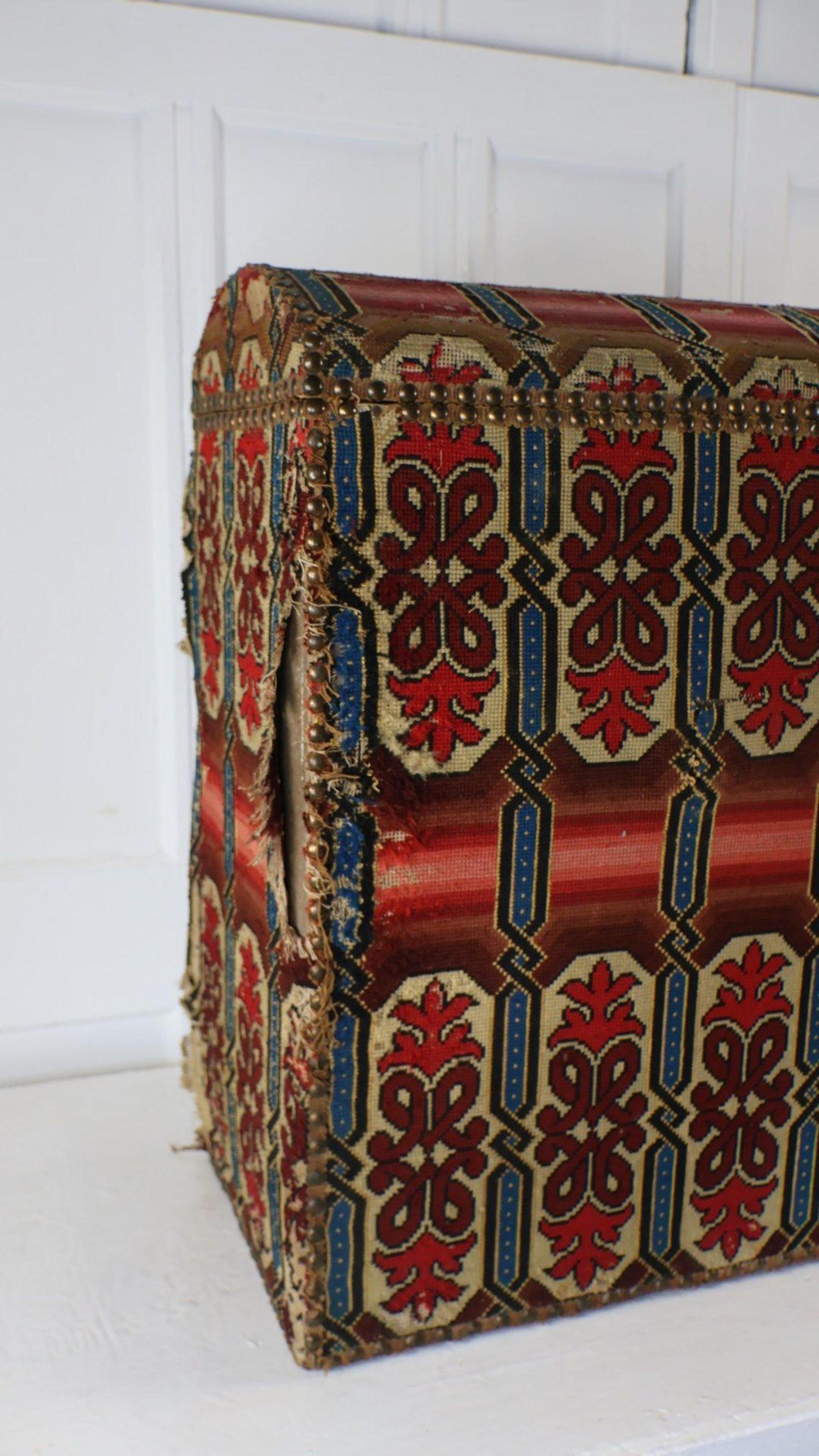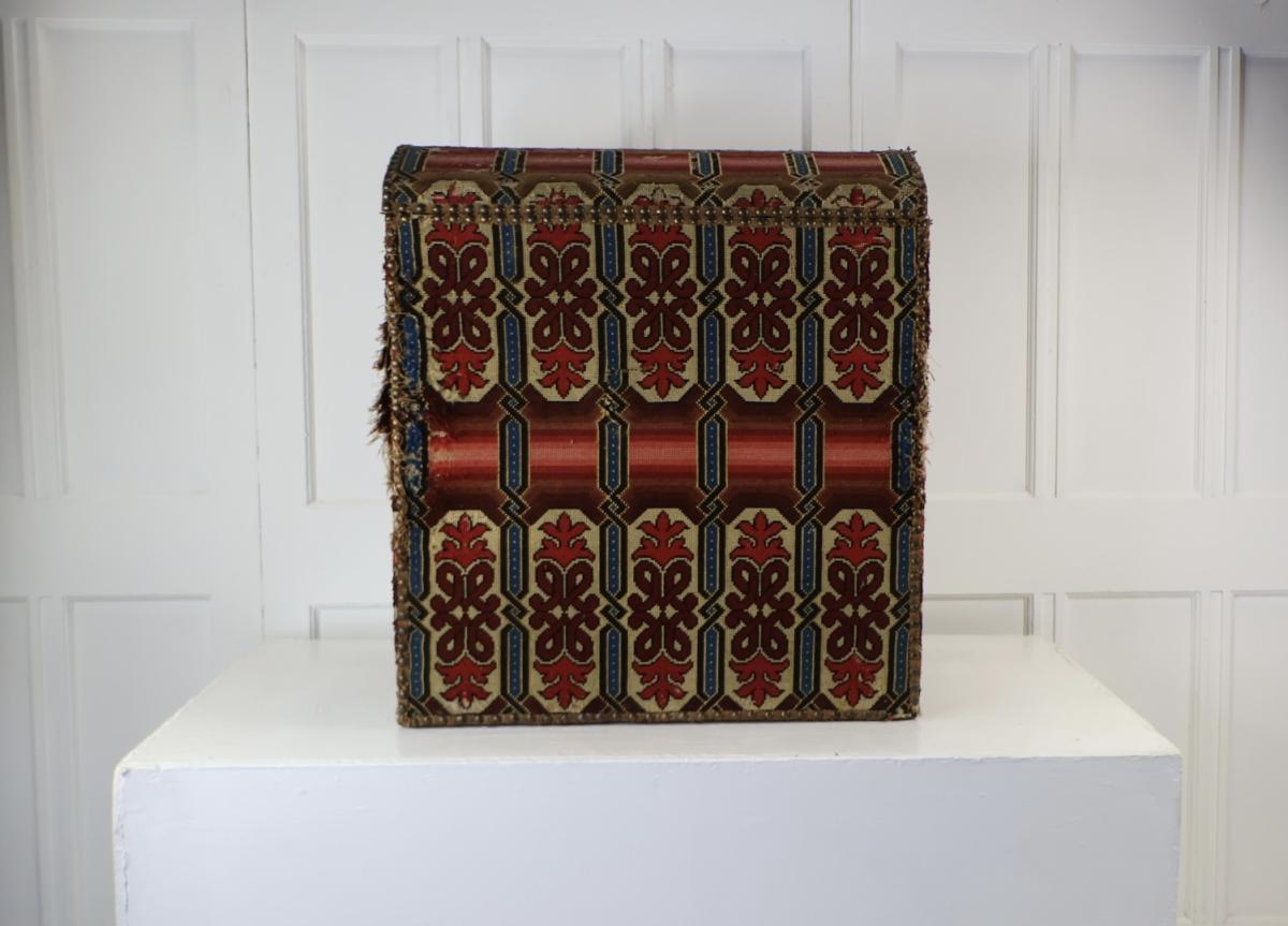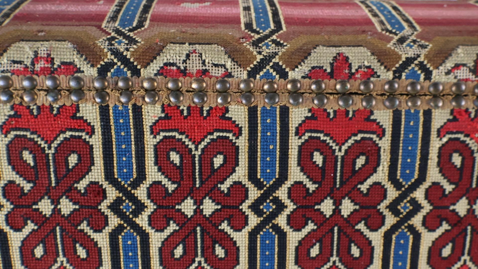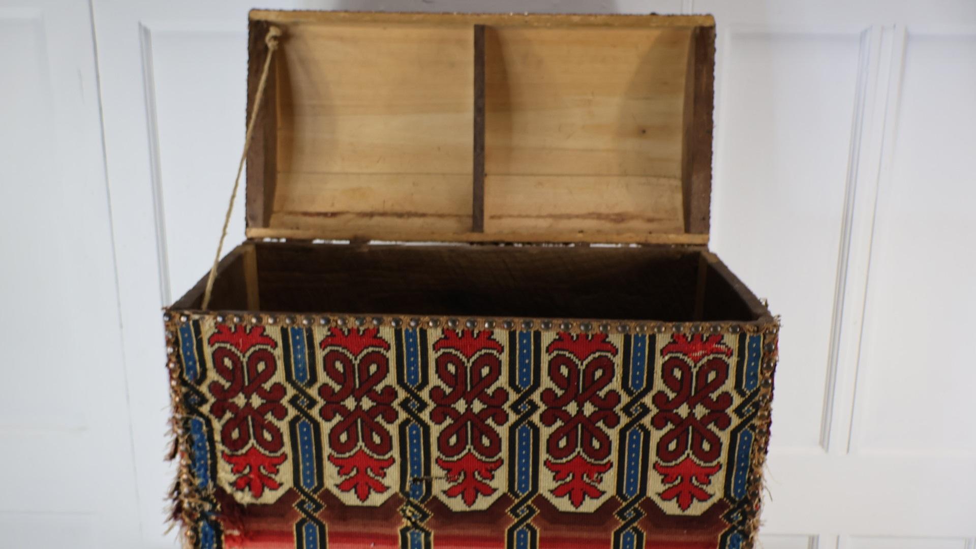A very decorative, 19thc, domed pine, very vibrant carpet chest.