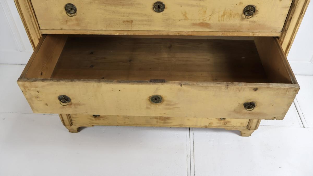 A 19thc French commode in excellent condition, comprising of 4 deep drawers with the top drawers having a divided section.