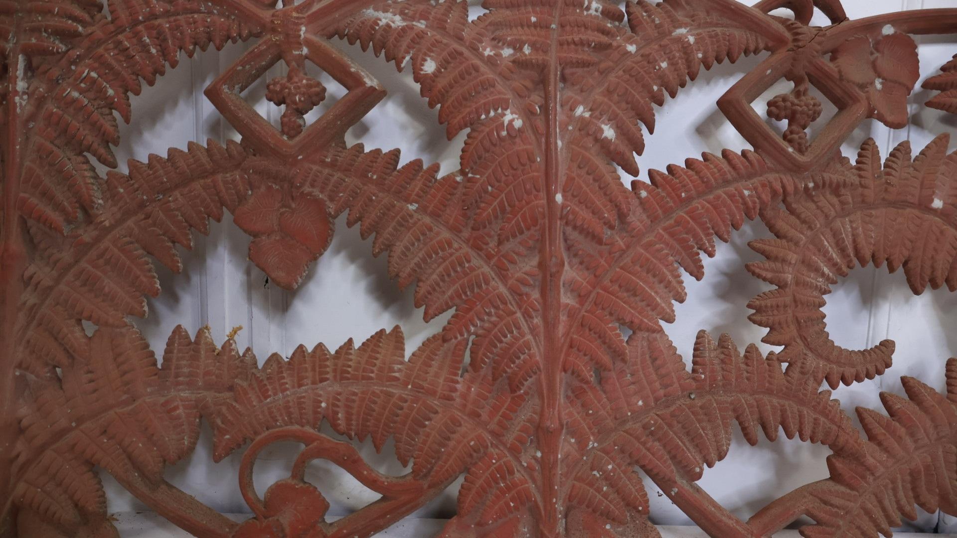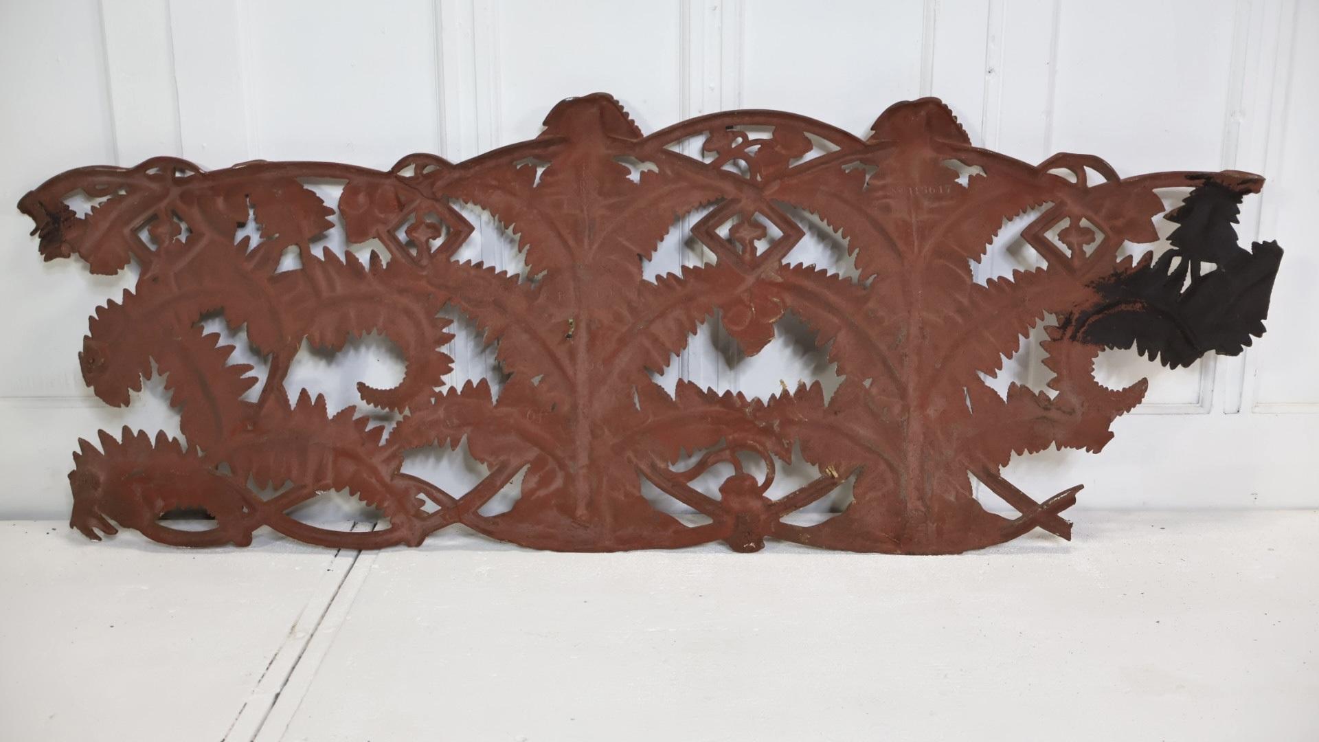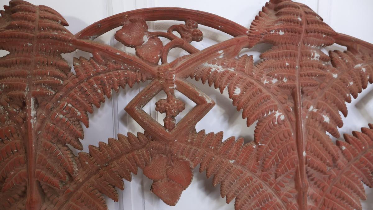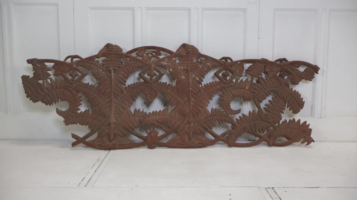 An original, 19thc, Coalbrookdale cast fern and blackberry back support from a garden bench.