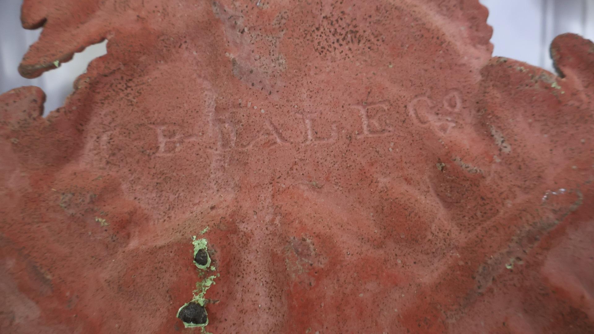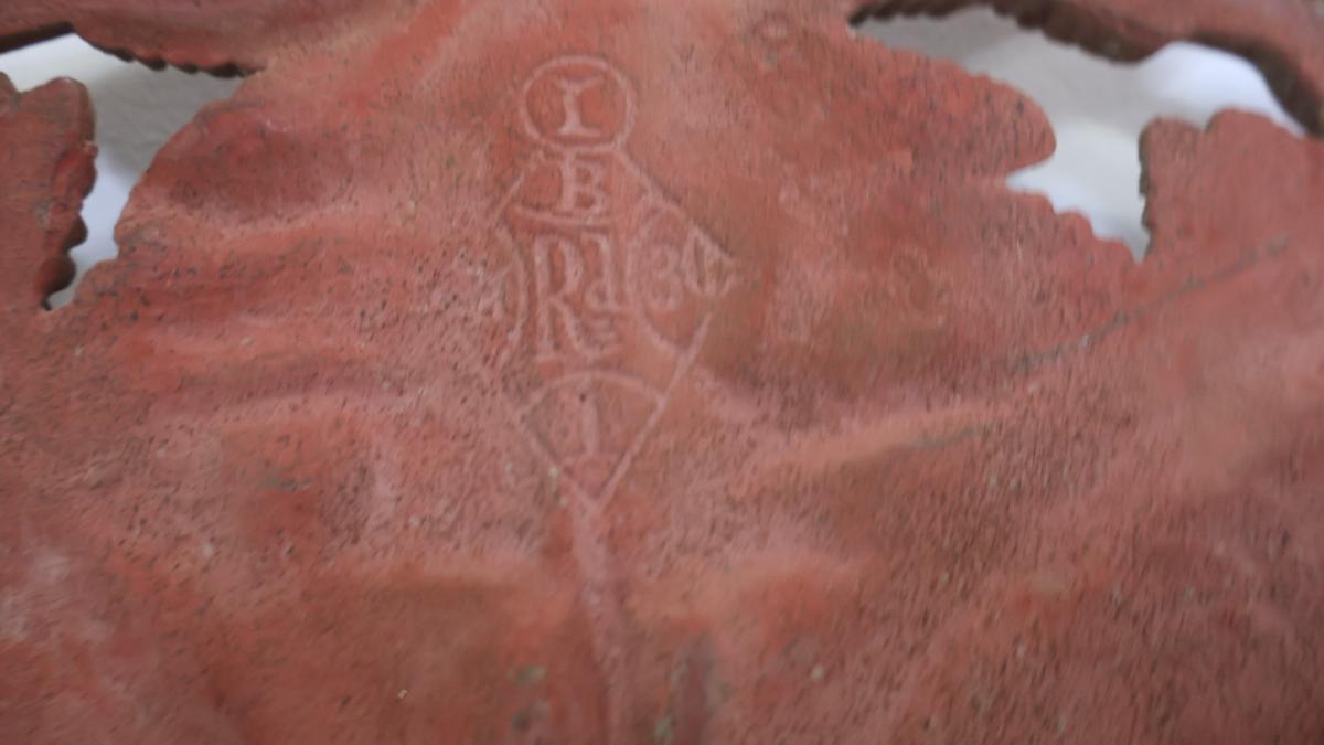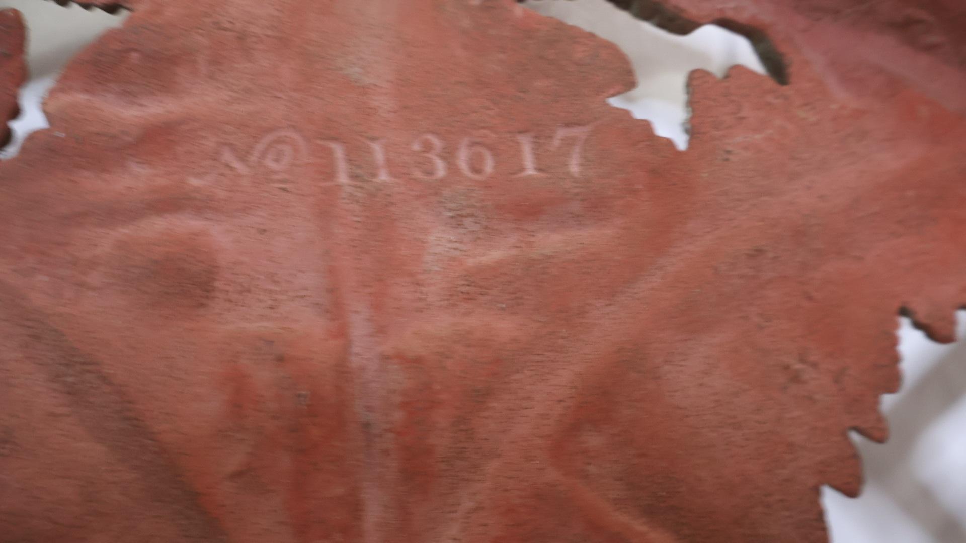 An original, 19thc, Coalbrookdale cast fern and blackberry back support from a garden bench.