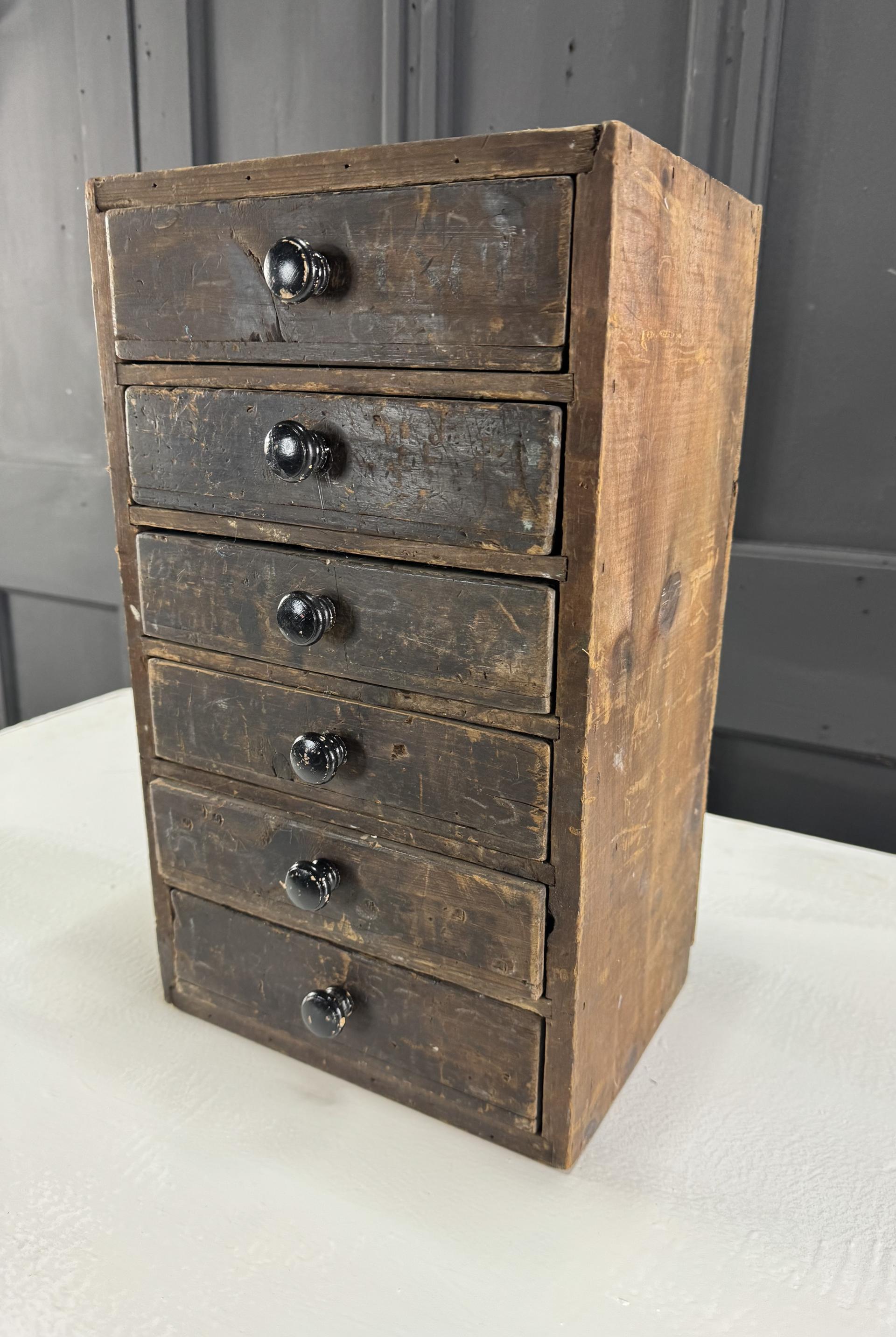 Original wooden set of drawers with ebonised knobs.