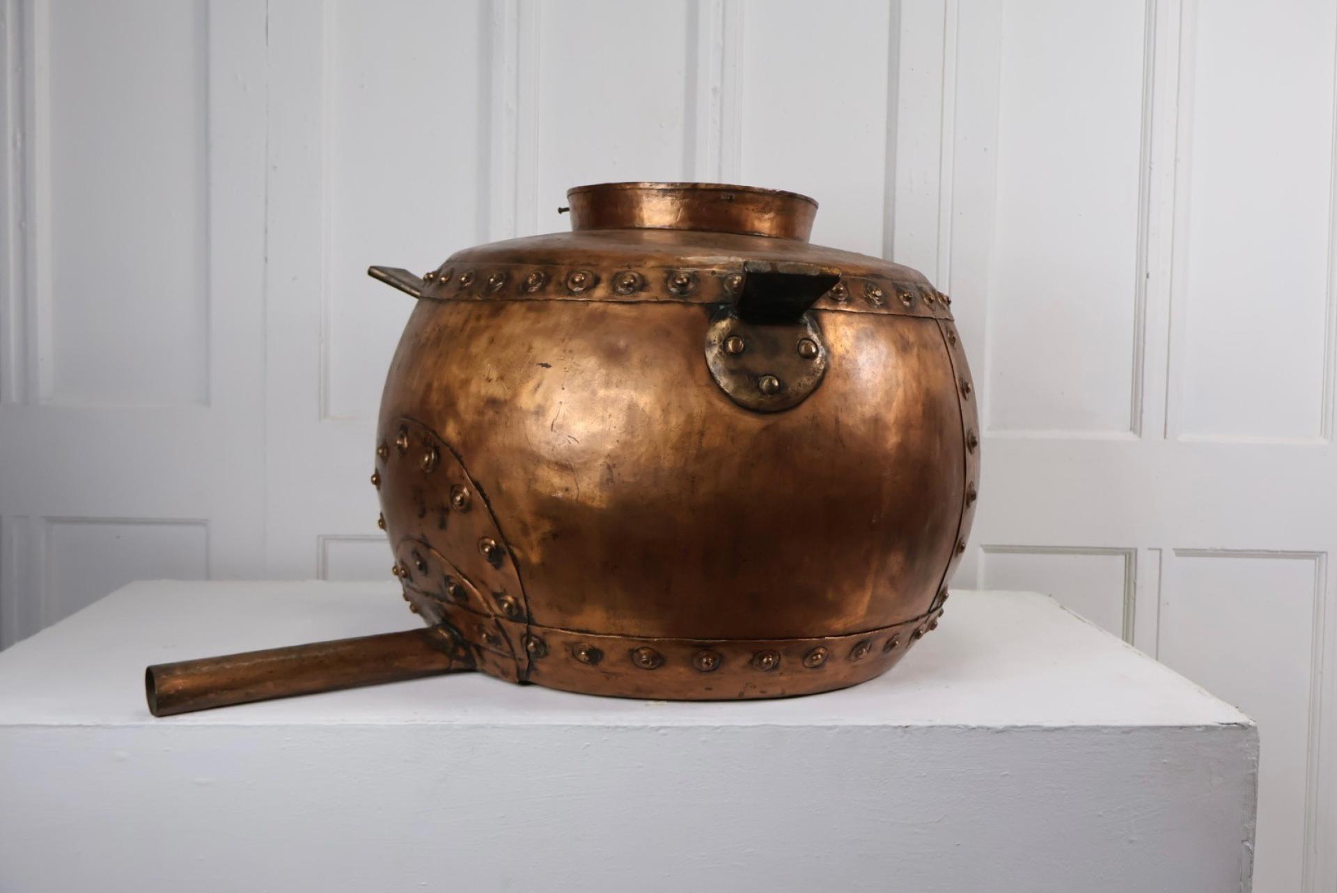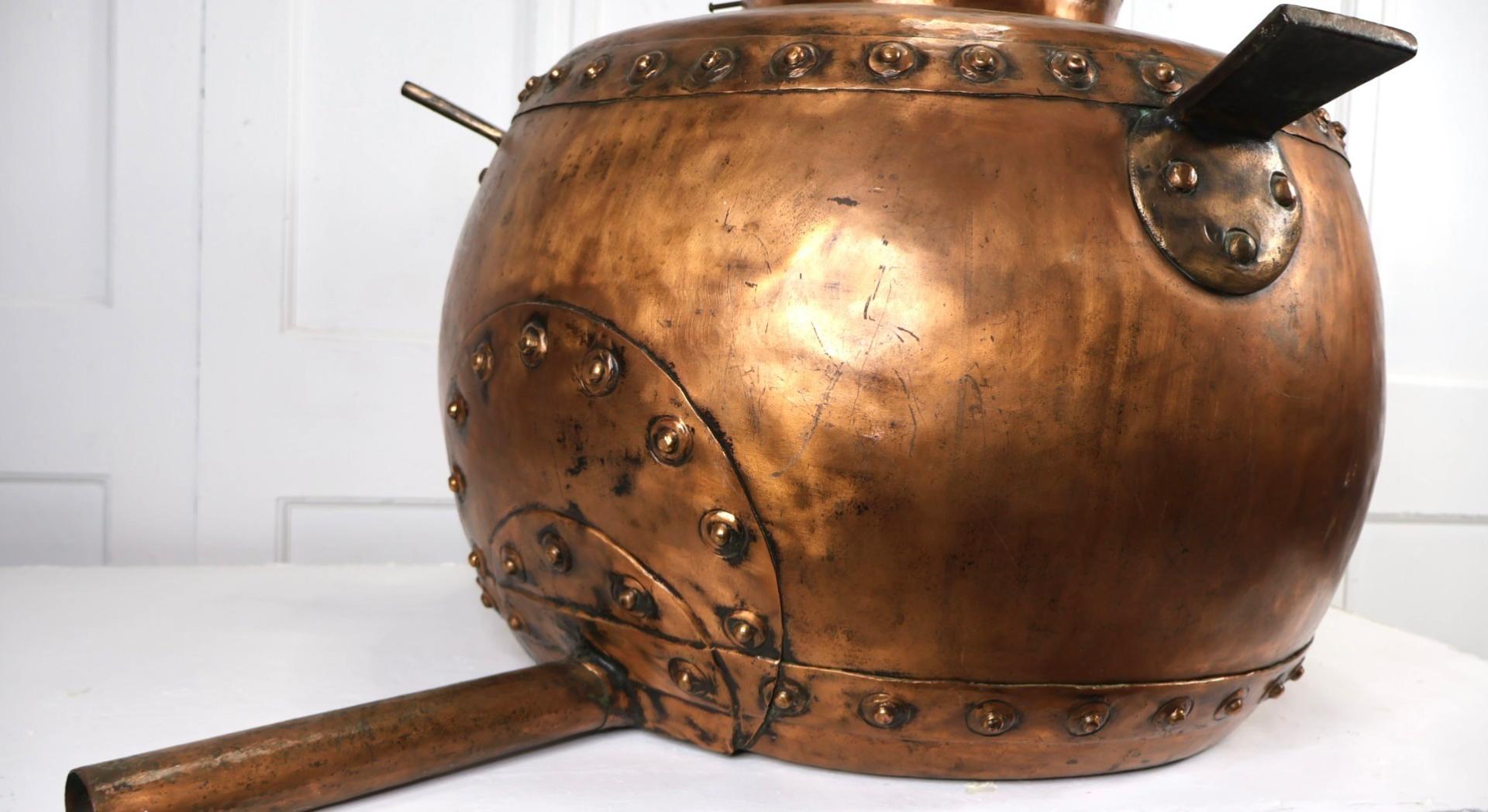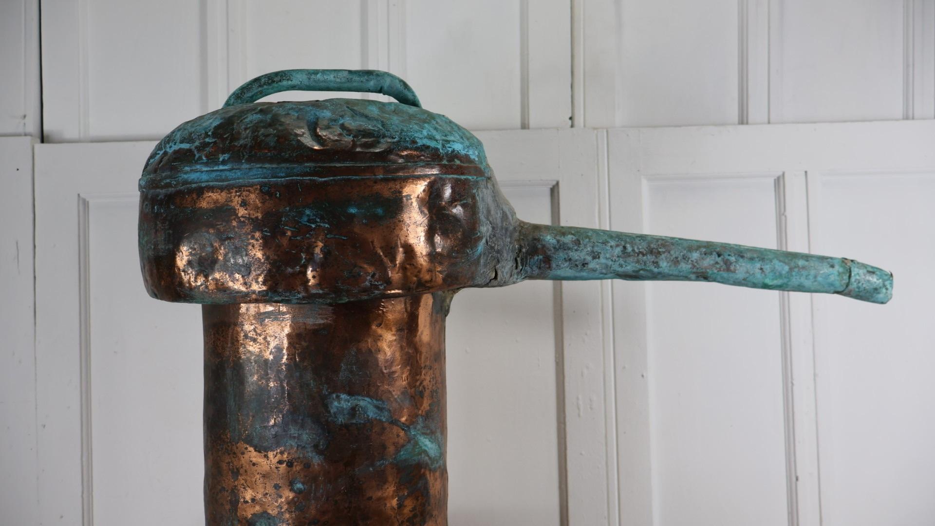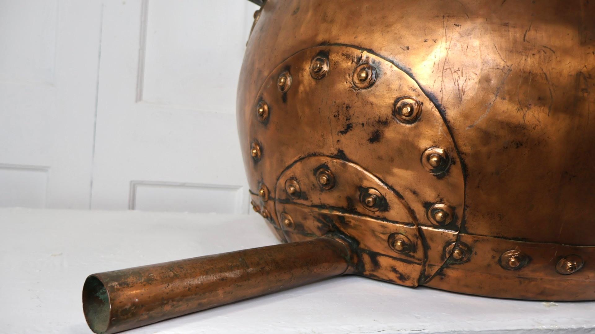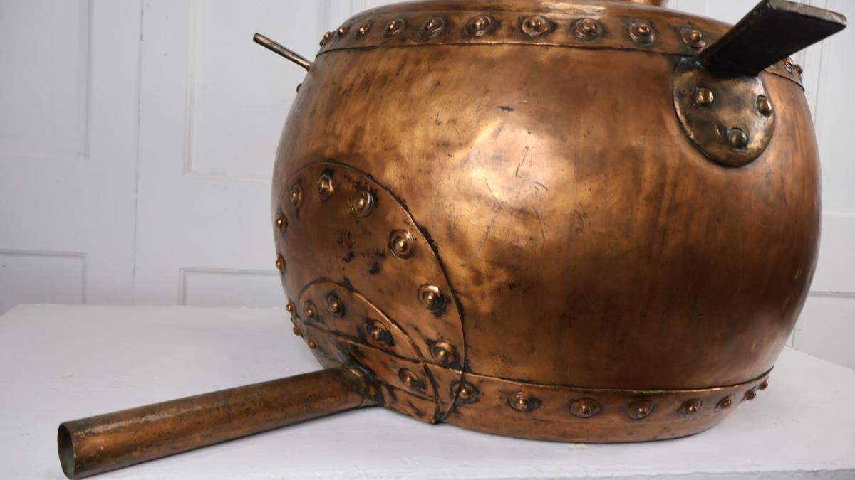 A nice large example of a copper still, most likely used for the distillation of whiskey, becoming popular in the mid 19thc.