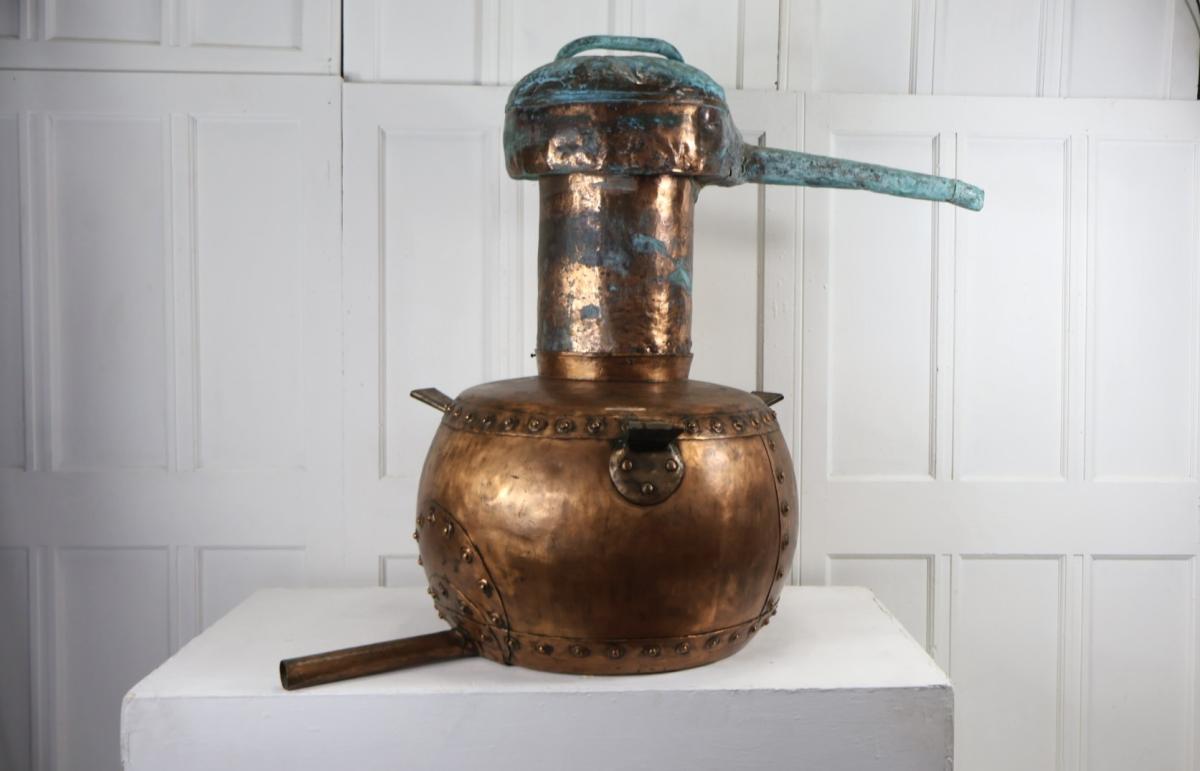 This example has a pot, helmet, and a swan neck pipe which would have led to the condenser.