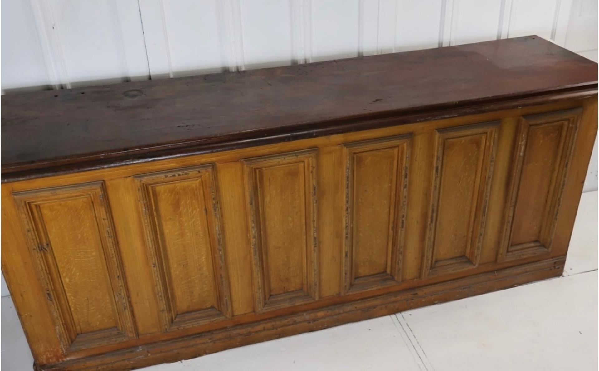 19thc pine shop counter with a solid mahogany top, could be used for its original purpose or it would make a great island, breakfast bar or console.