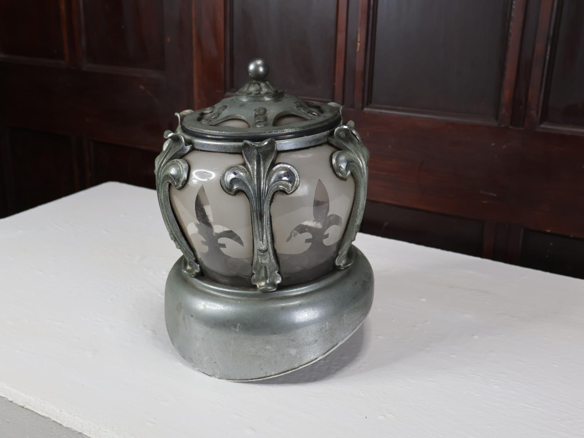 Decorative etched sides depicting Fleur De Lis.
