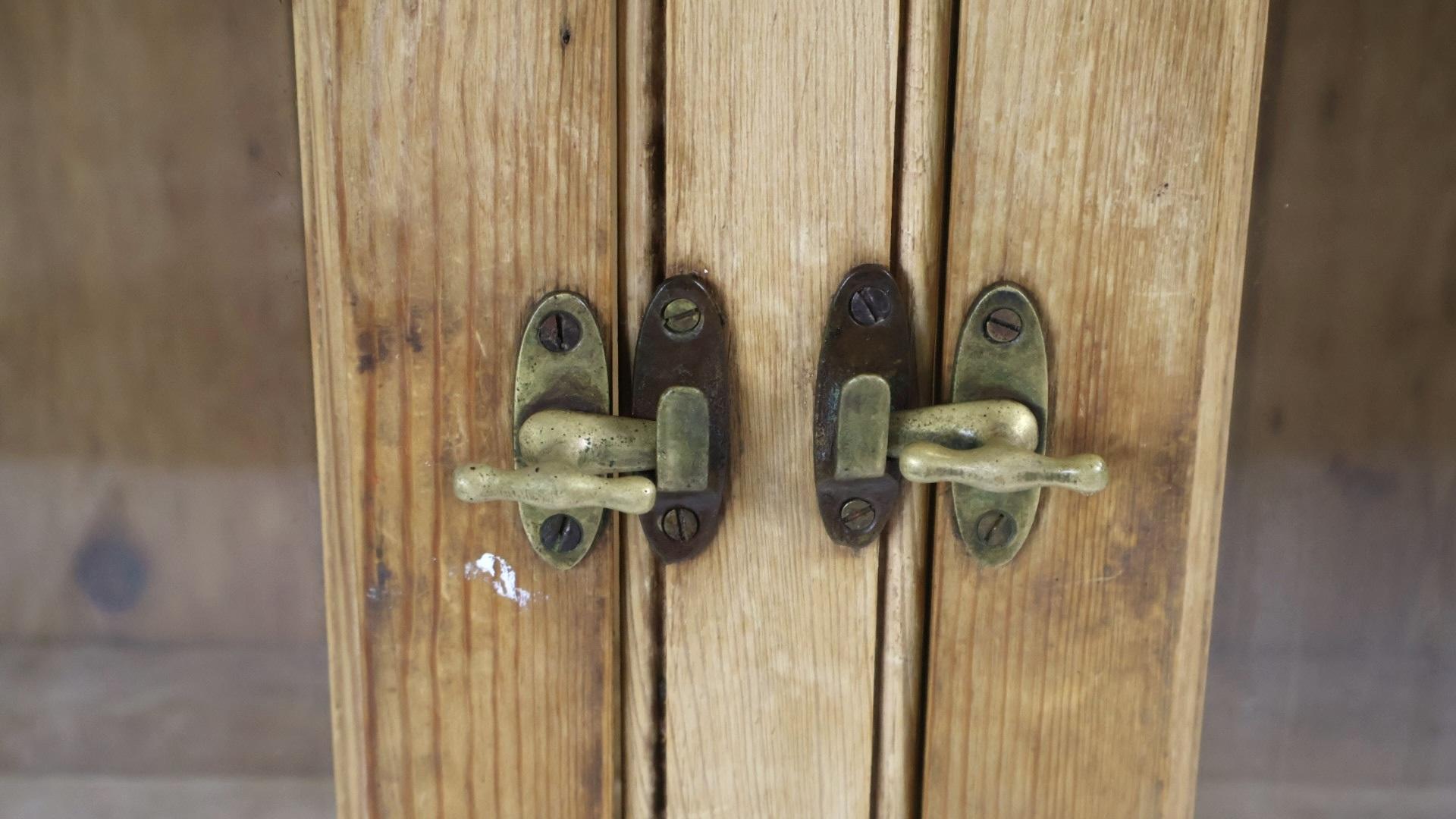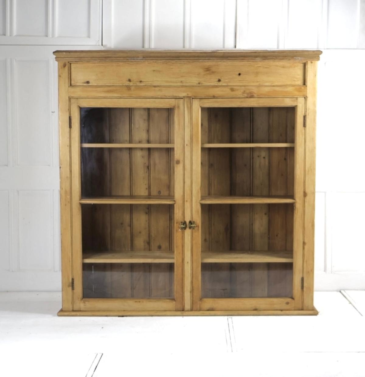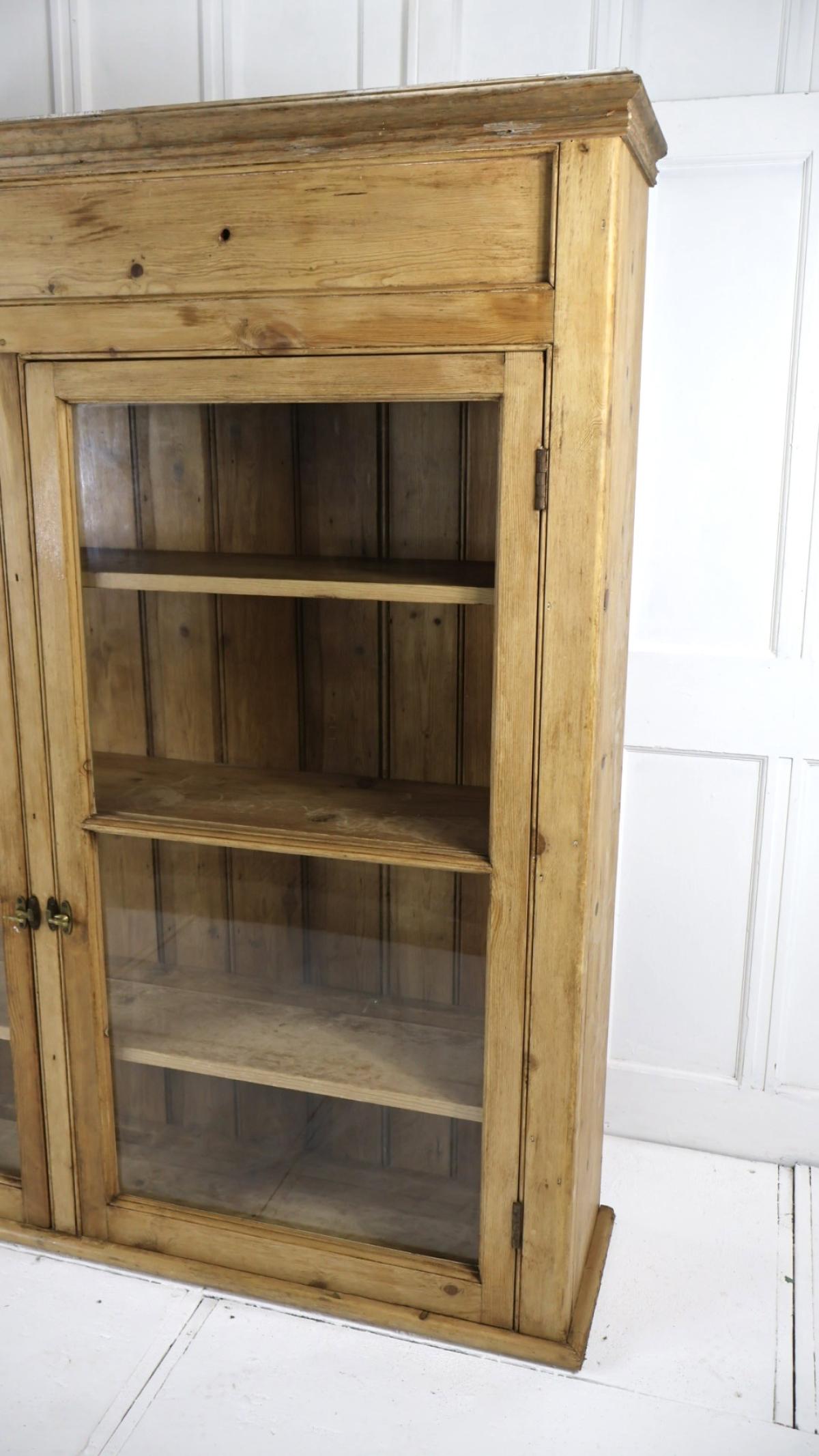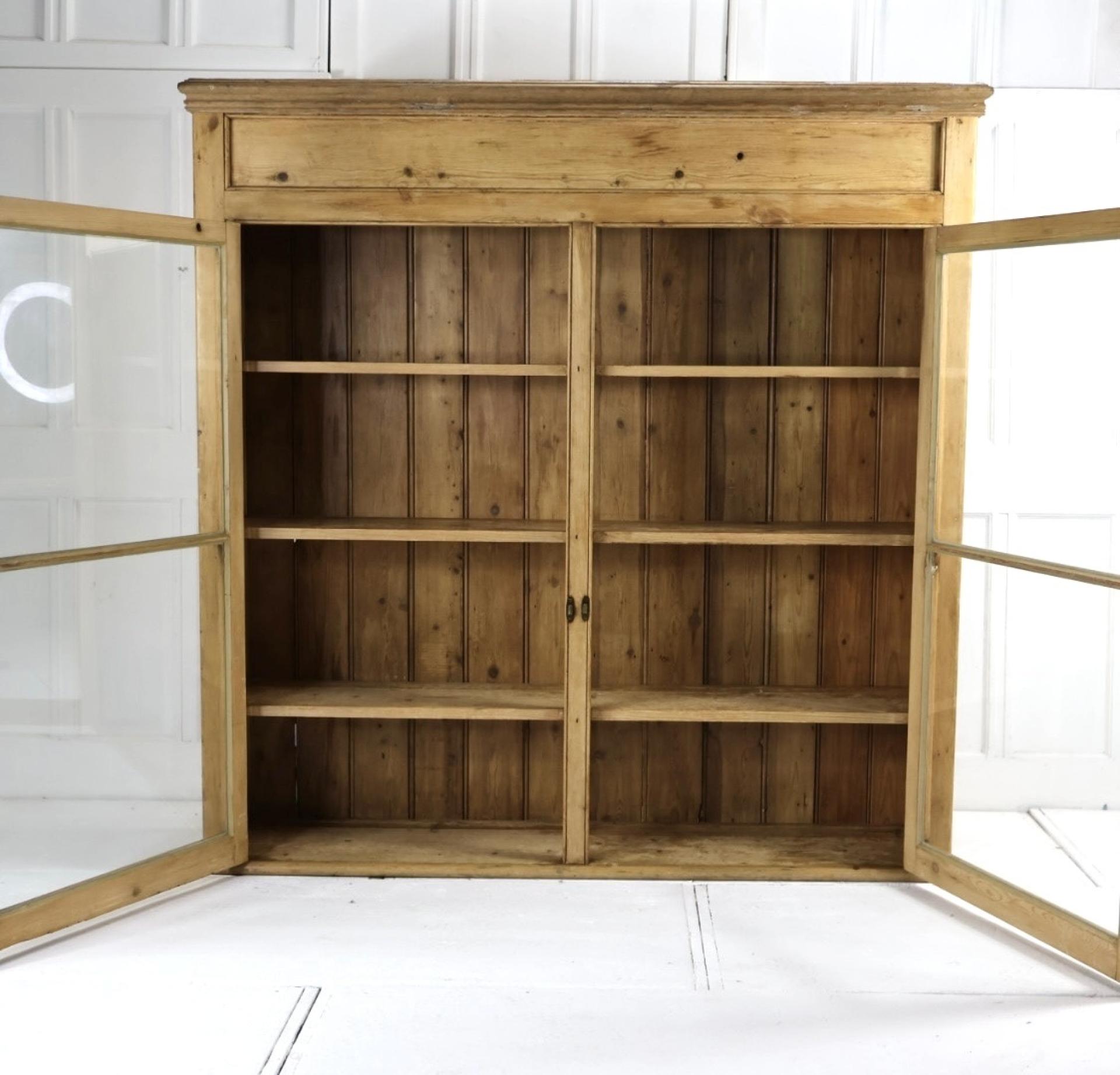 A large (5ft High), very clean, English pitch pine glazed cabinet.