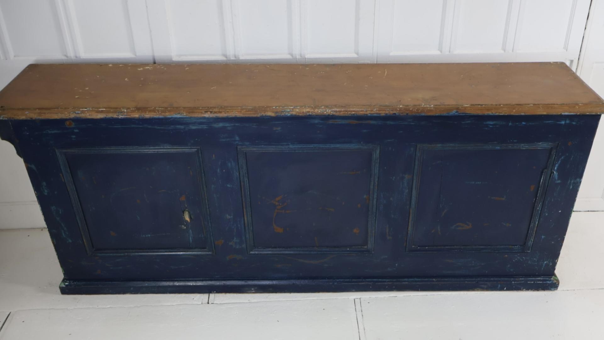 A rather charming, 19thc pine shop counter, just under 8 ft long.