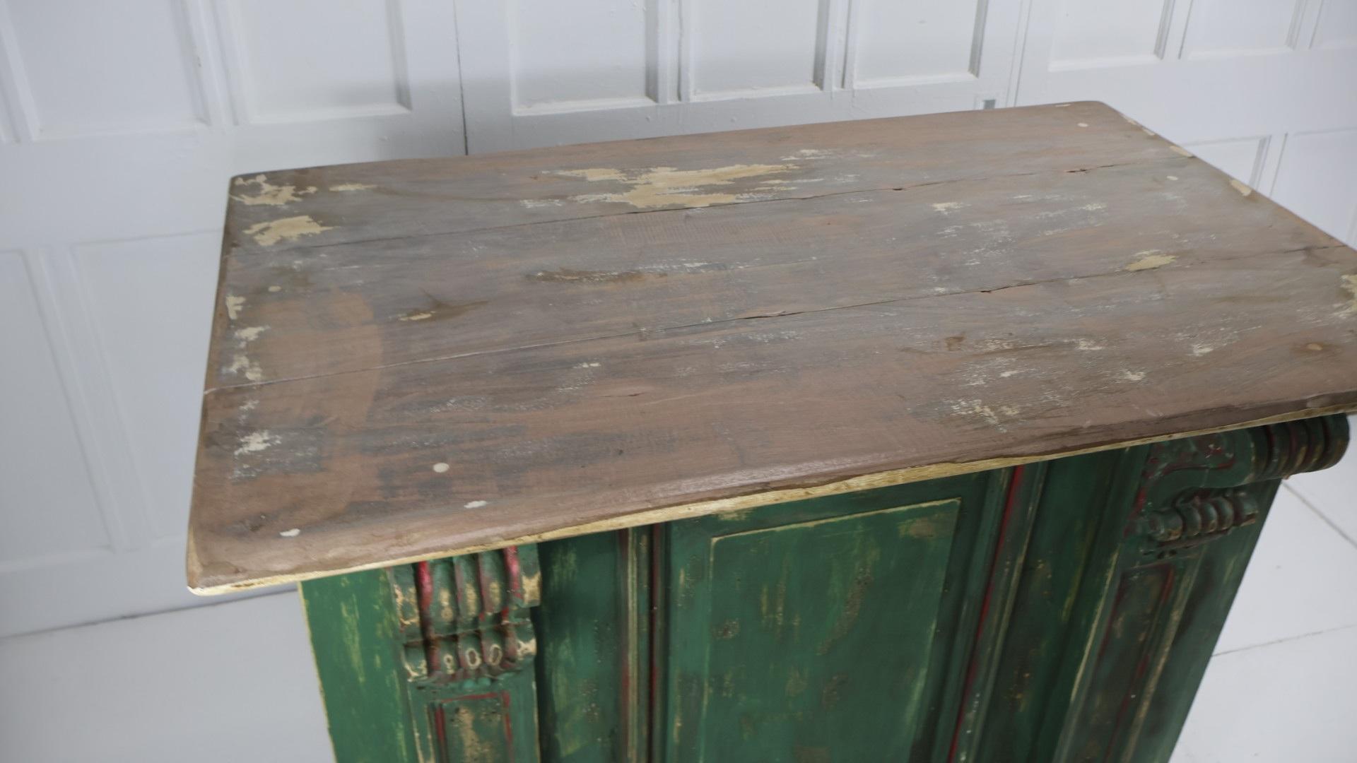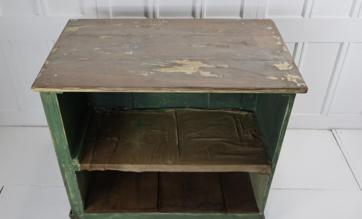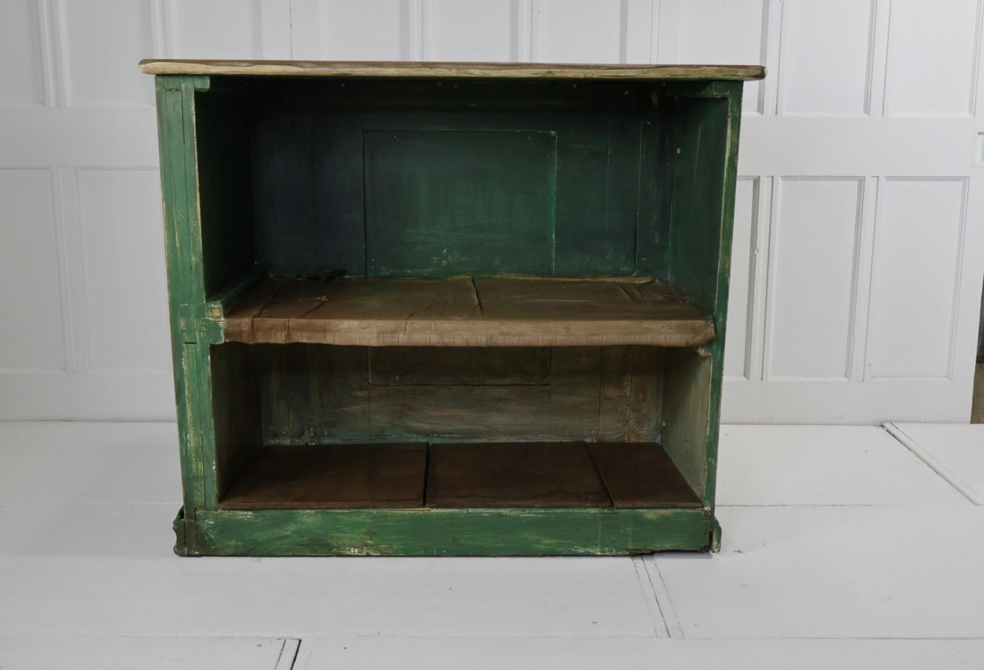 A decorative small painted pine counter, ideal for a kitchen island or as a counter for a business.