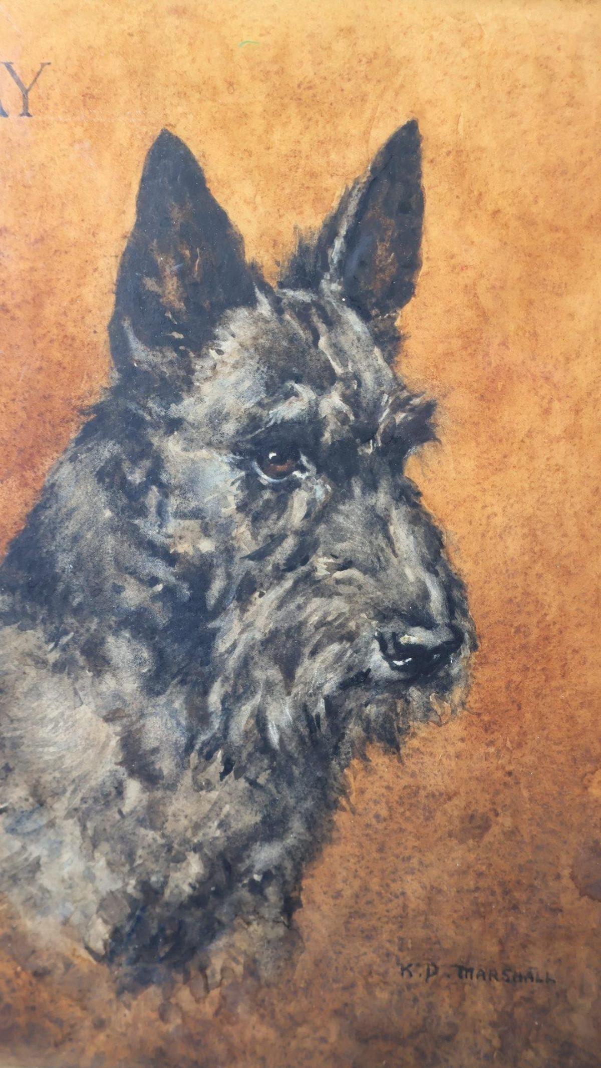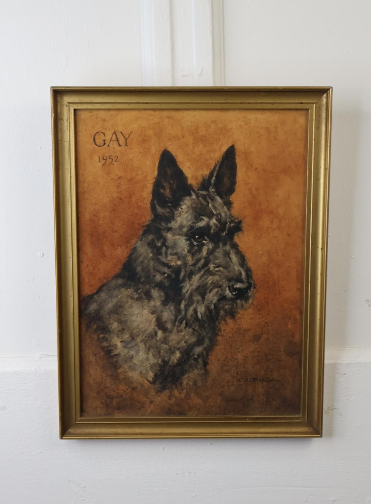 Beloved Gay, signed KP Marshall, dated 1952 watercolour of a Scottish Terrier.