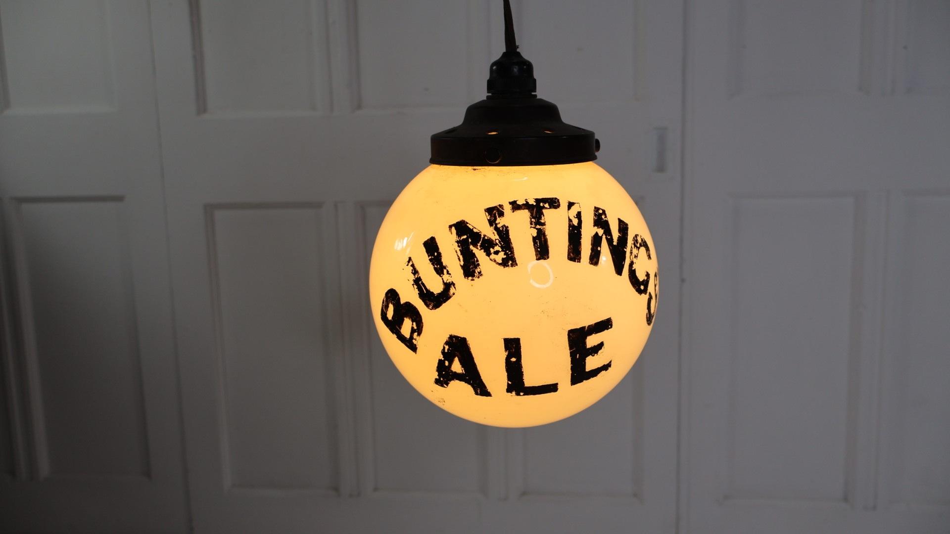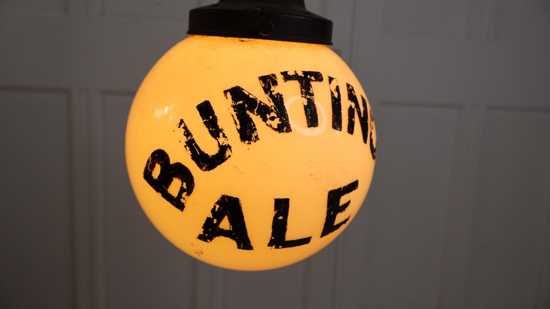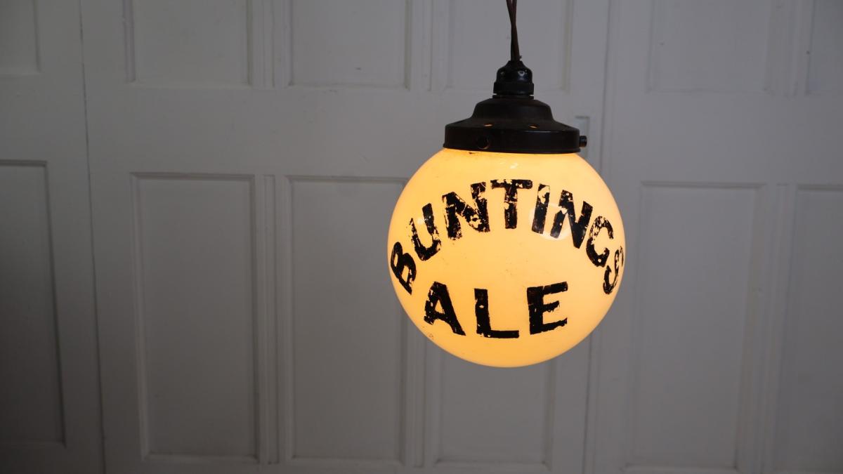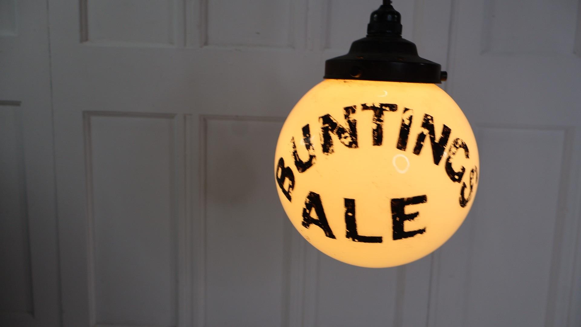 A rare advertising opaline light for Buntings Ale, which had a short trading life of around 40 years between 1890-1930.