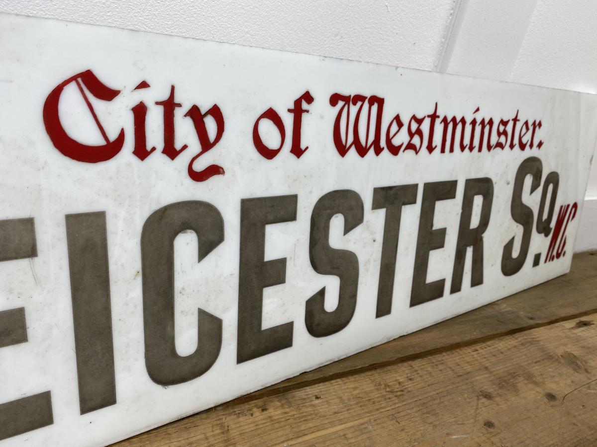 C1900 a rare vitrolite glass road sign for Leicester Square in excellent condition.