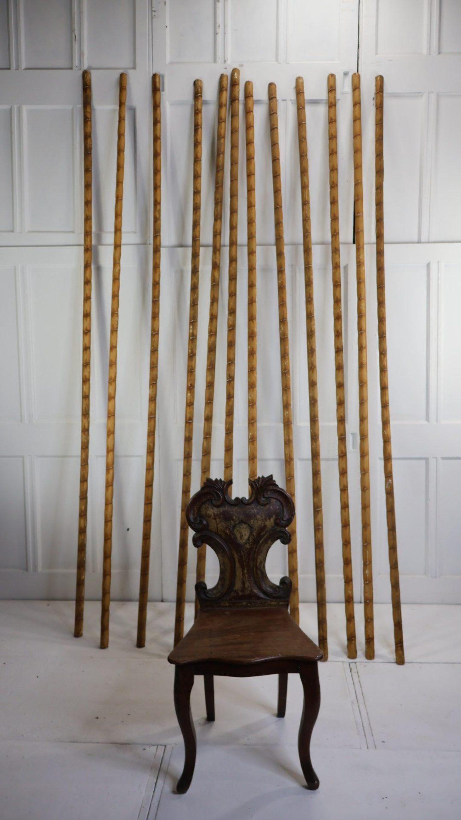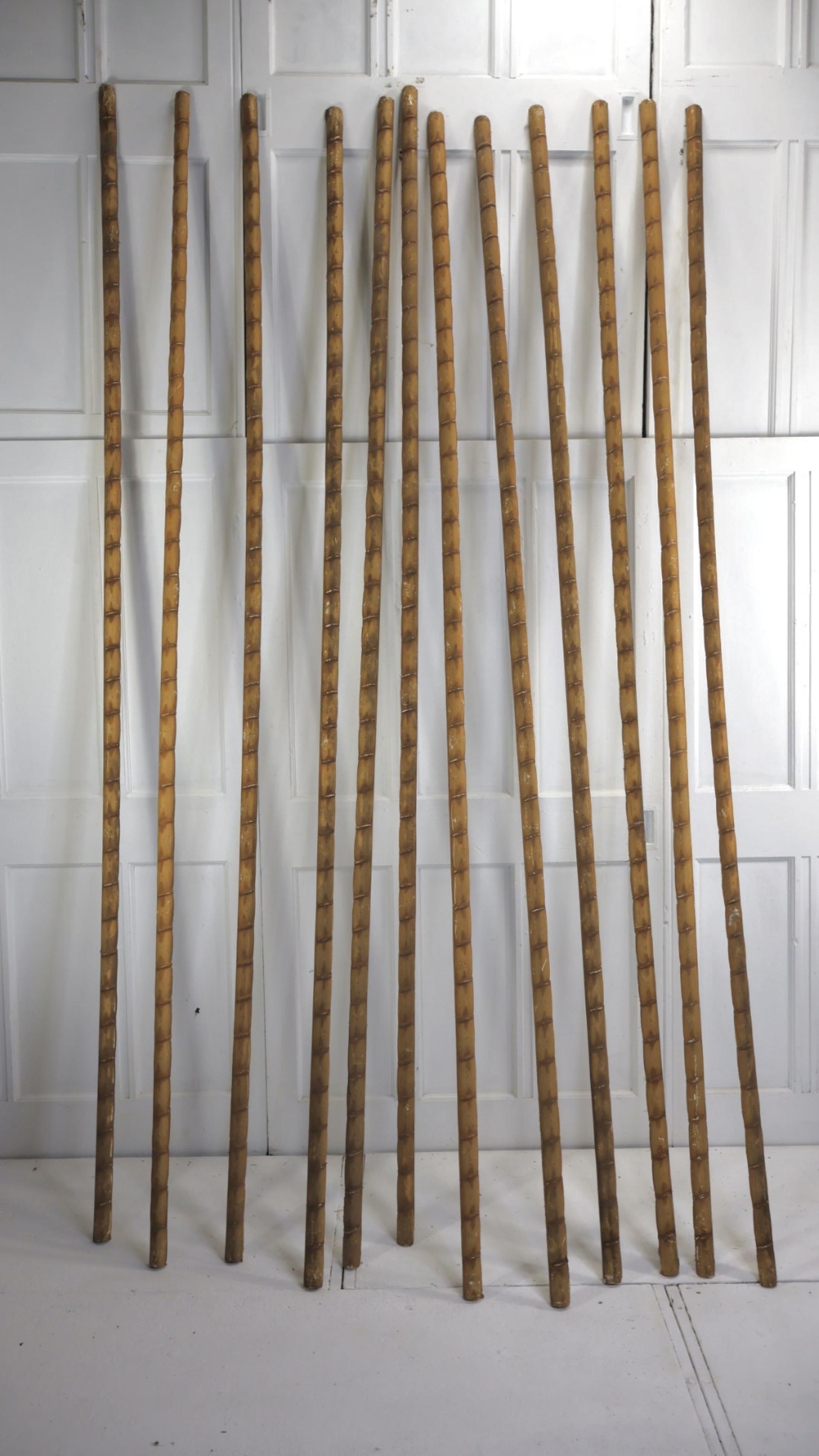 Twelve lengths of unusual and decorative faux bamboo poles.