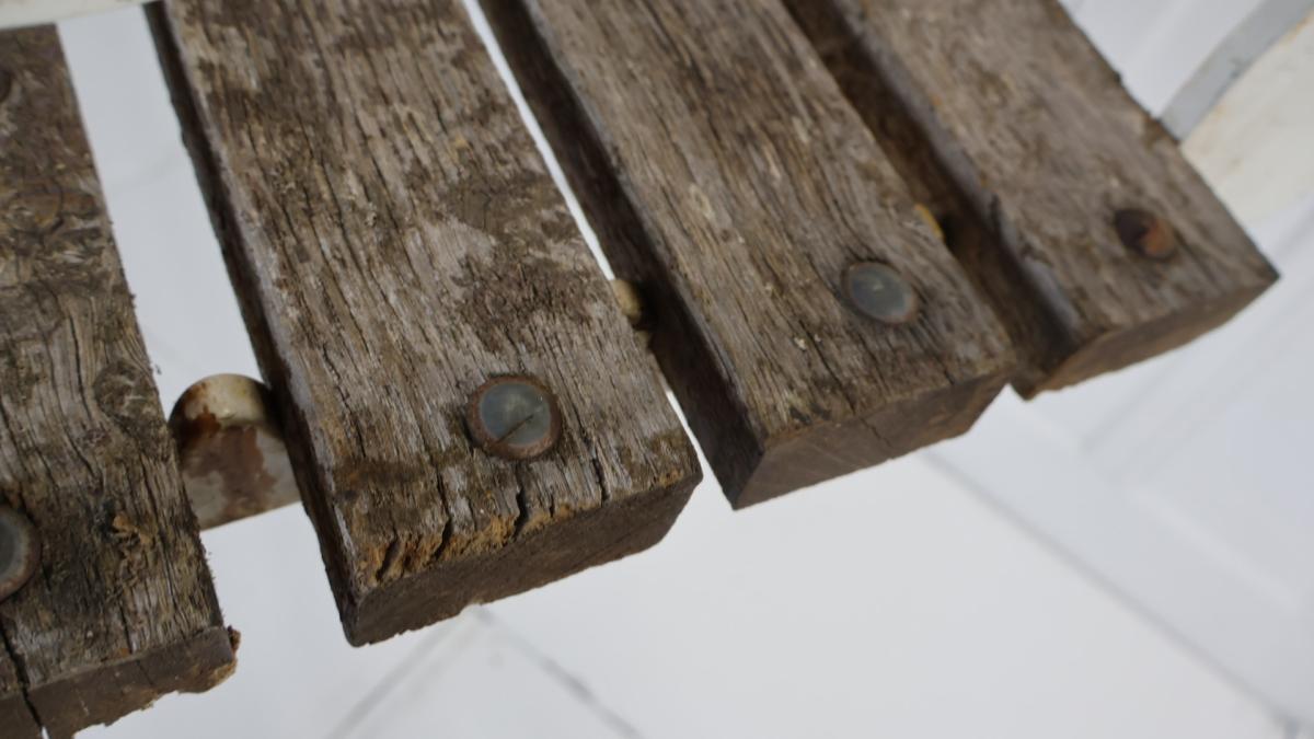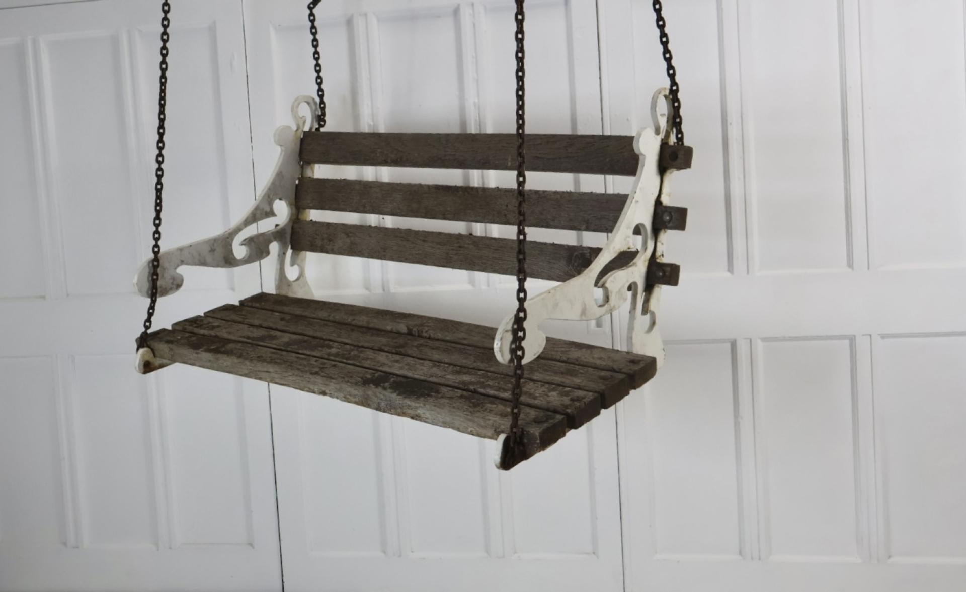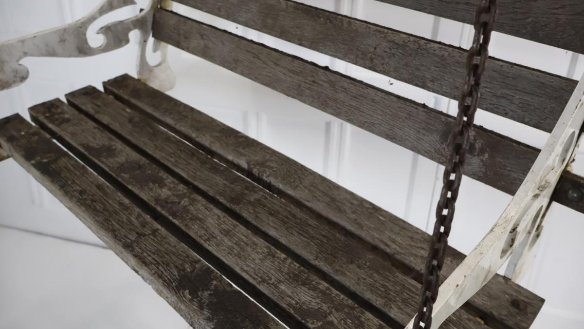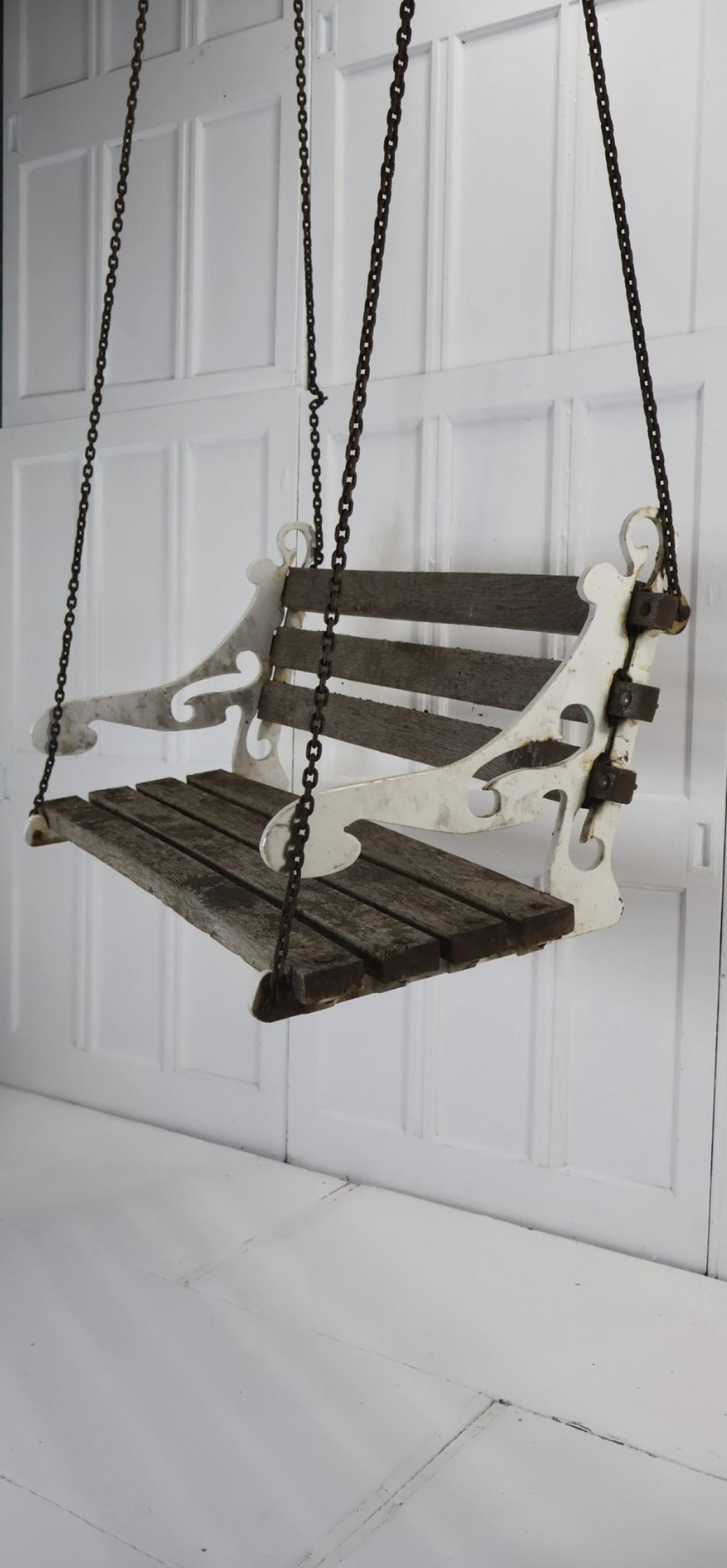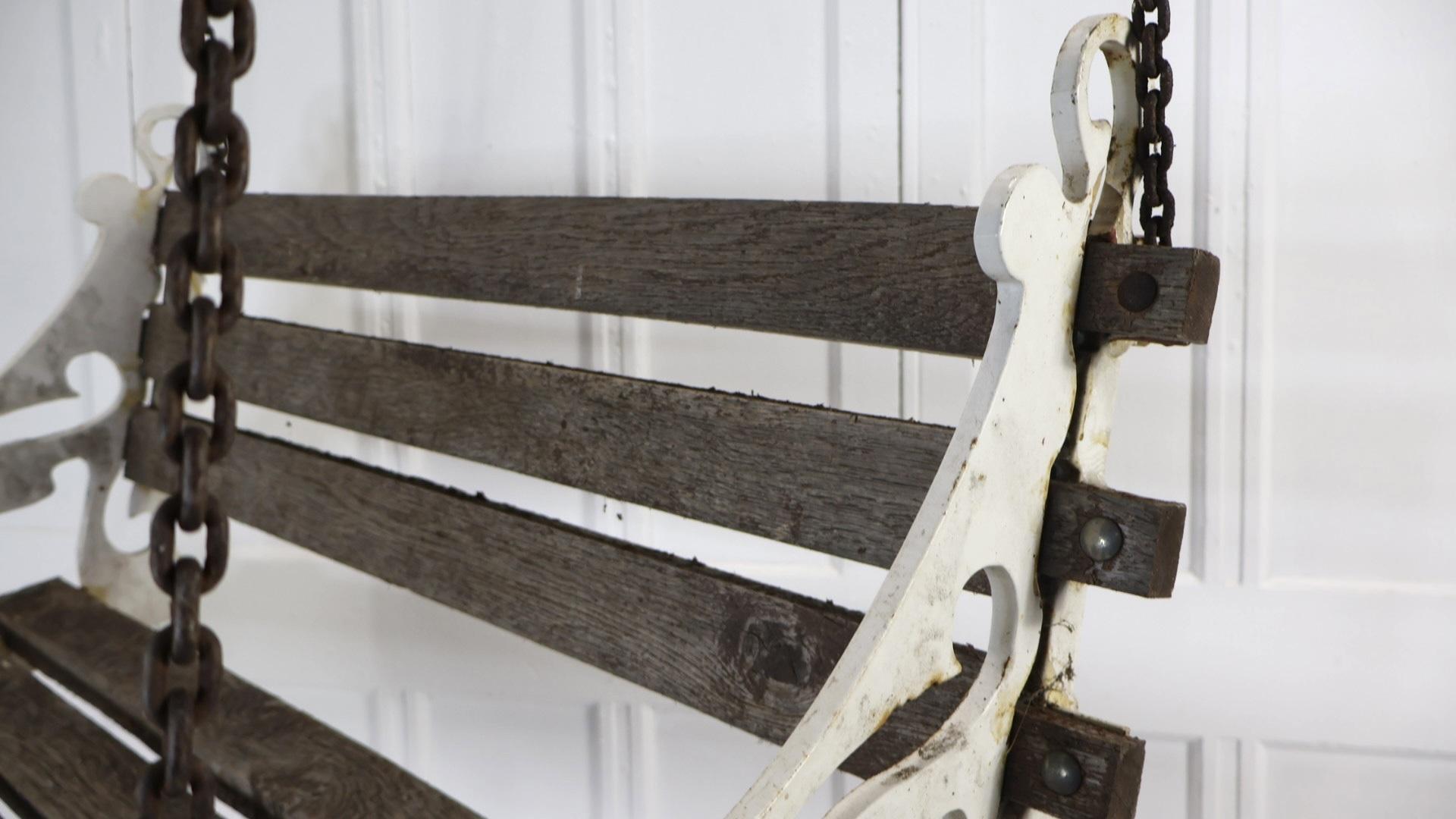 Comprising of hardwood weathered slats, with scrolled cast bench ends in the original white paint.