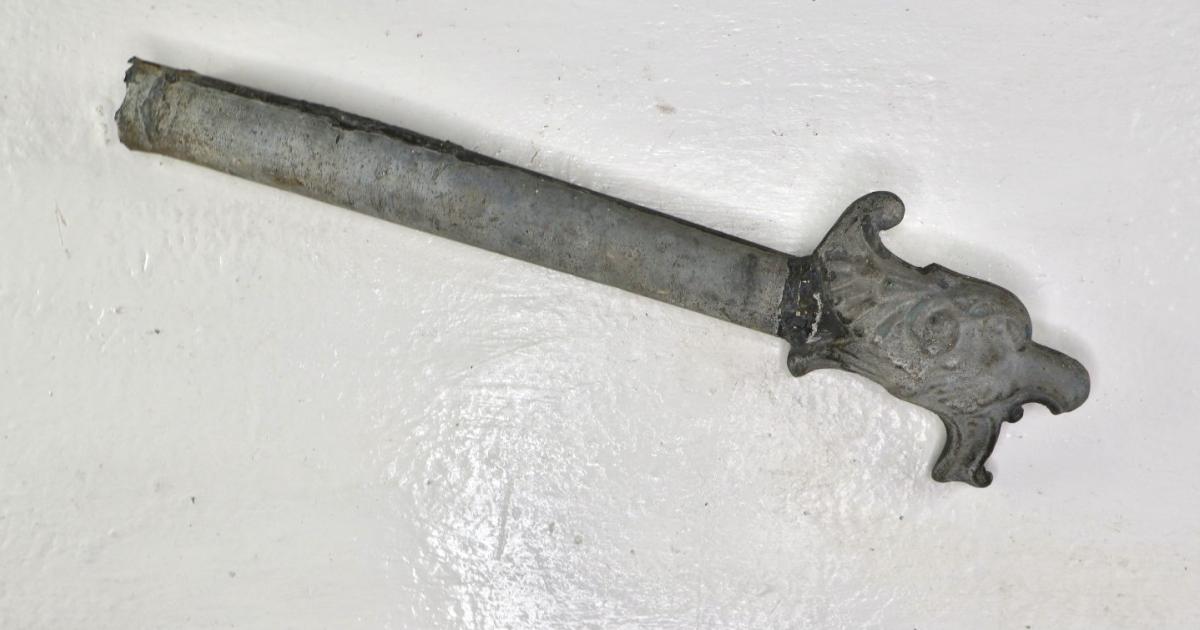 Comprising of a lead gargoyle head with a length of zinc pipe.