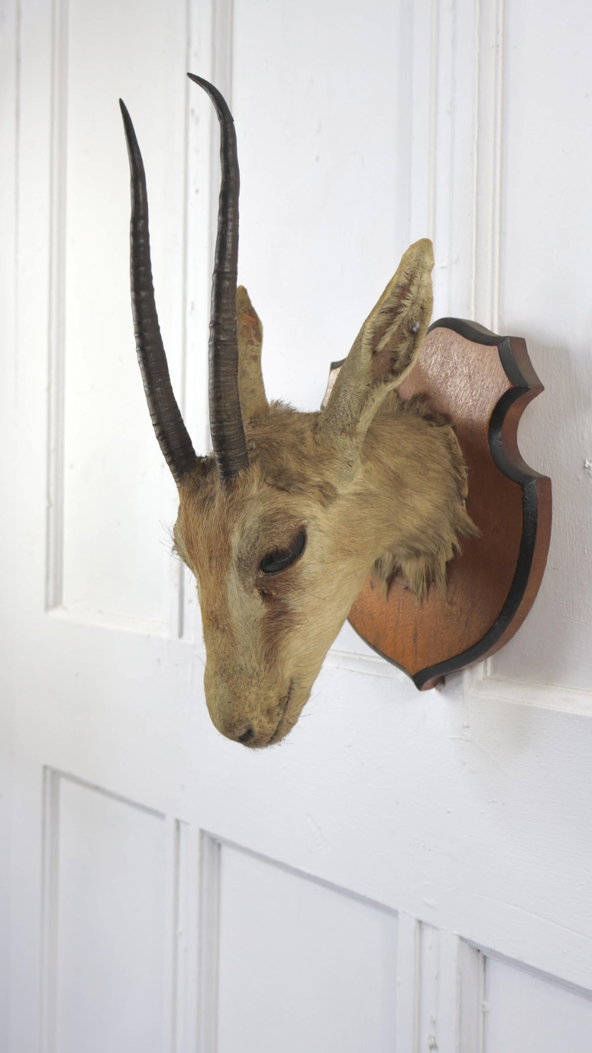 A good quality mount of a period gazelle, on a wooden scrolled shield.