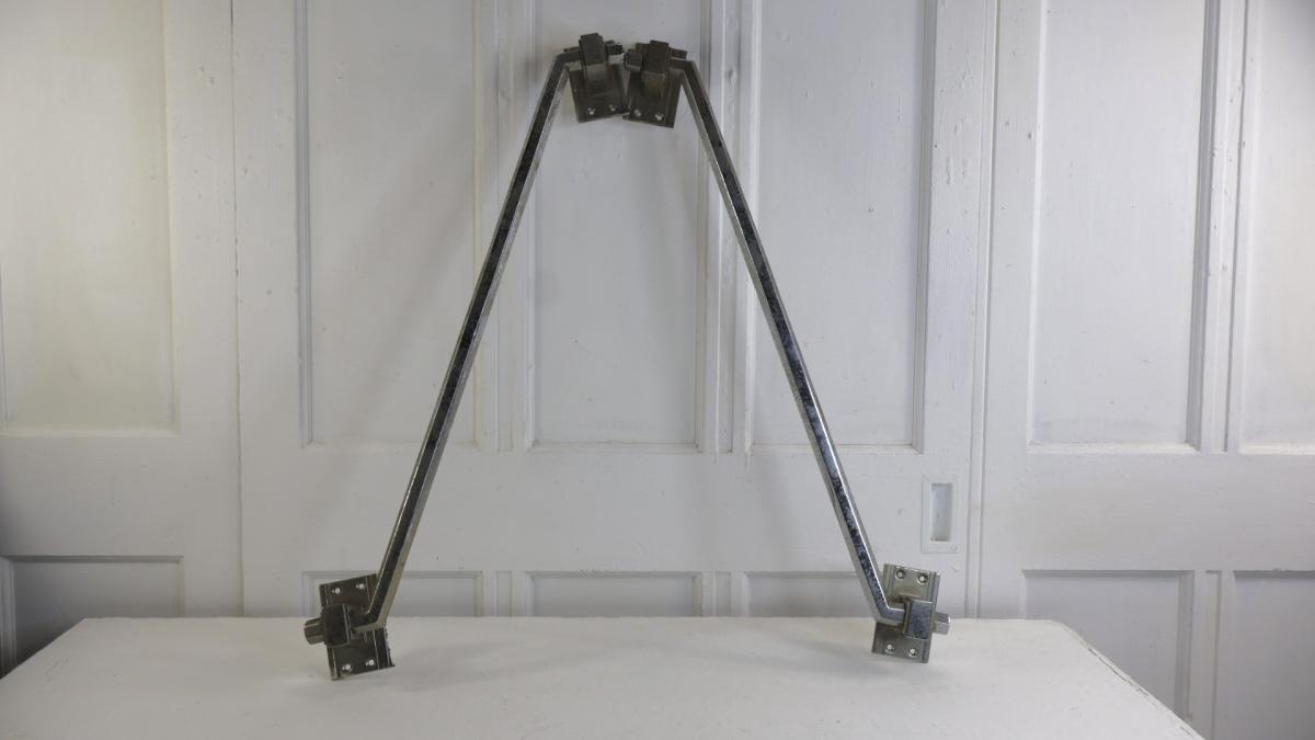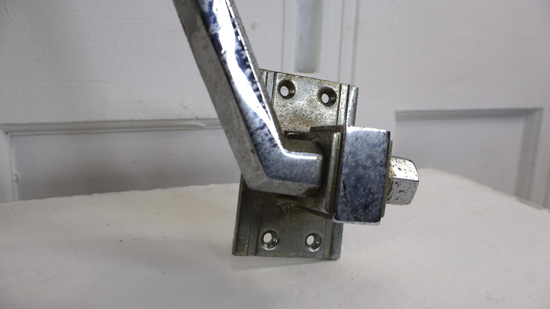 A large pair of chrome pull handles, salvaged from a closed cinema in Deal, Kent when they were part of a refurbishment in 1933.