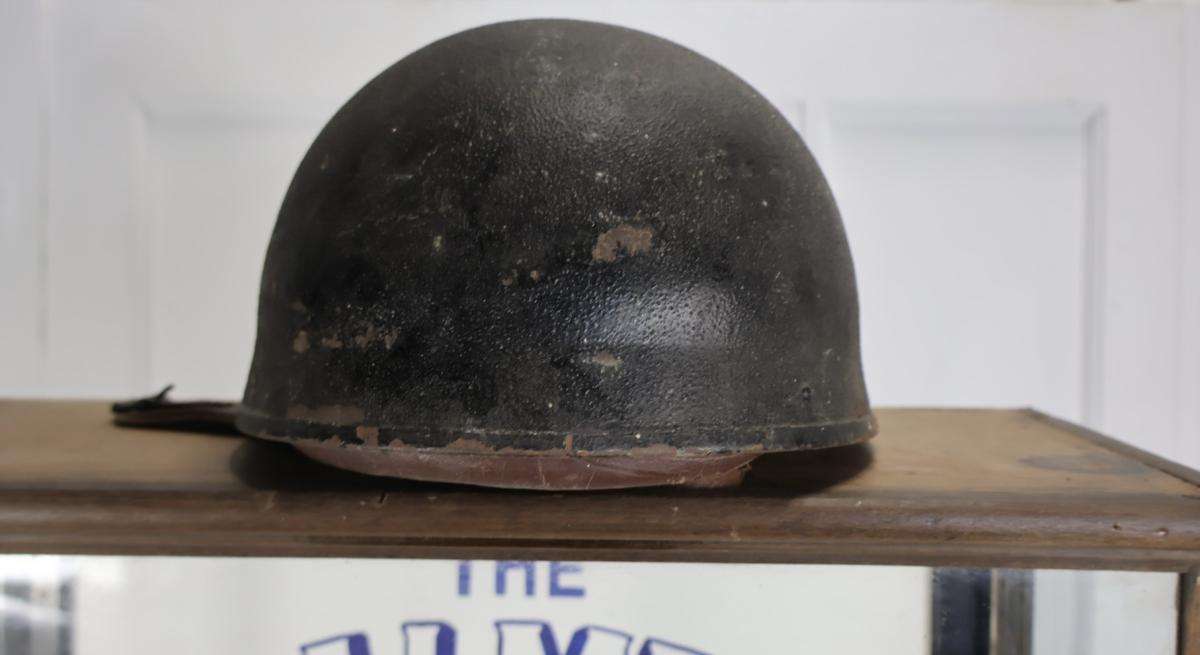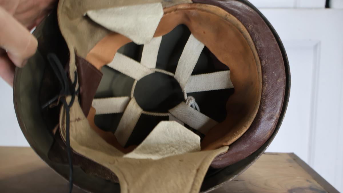 A 1940s pudding basin motorcycle helmet, appearing to be new old stock as it has never been worn.
