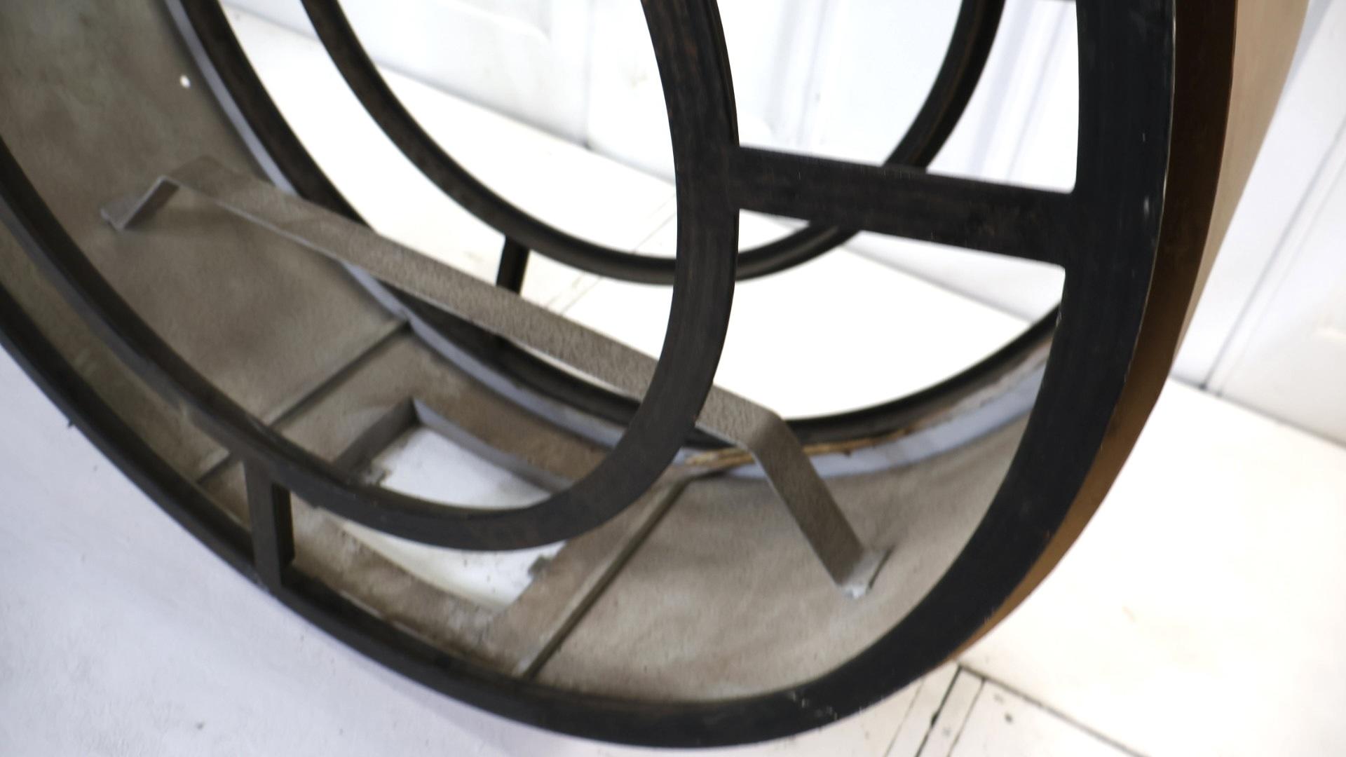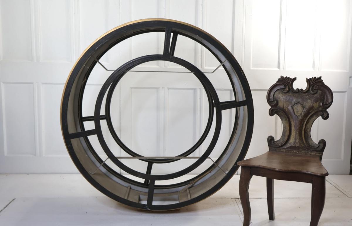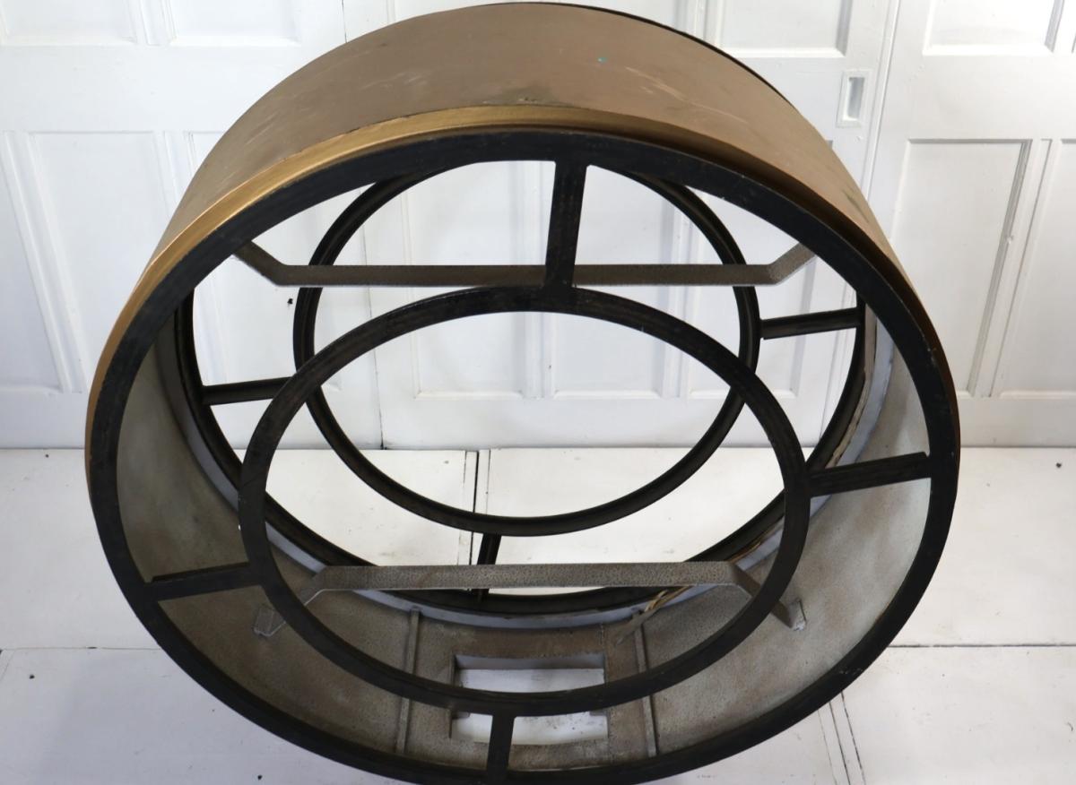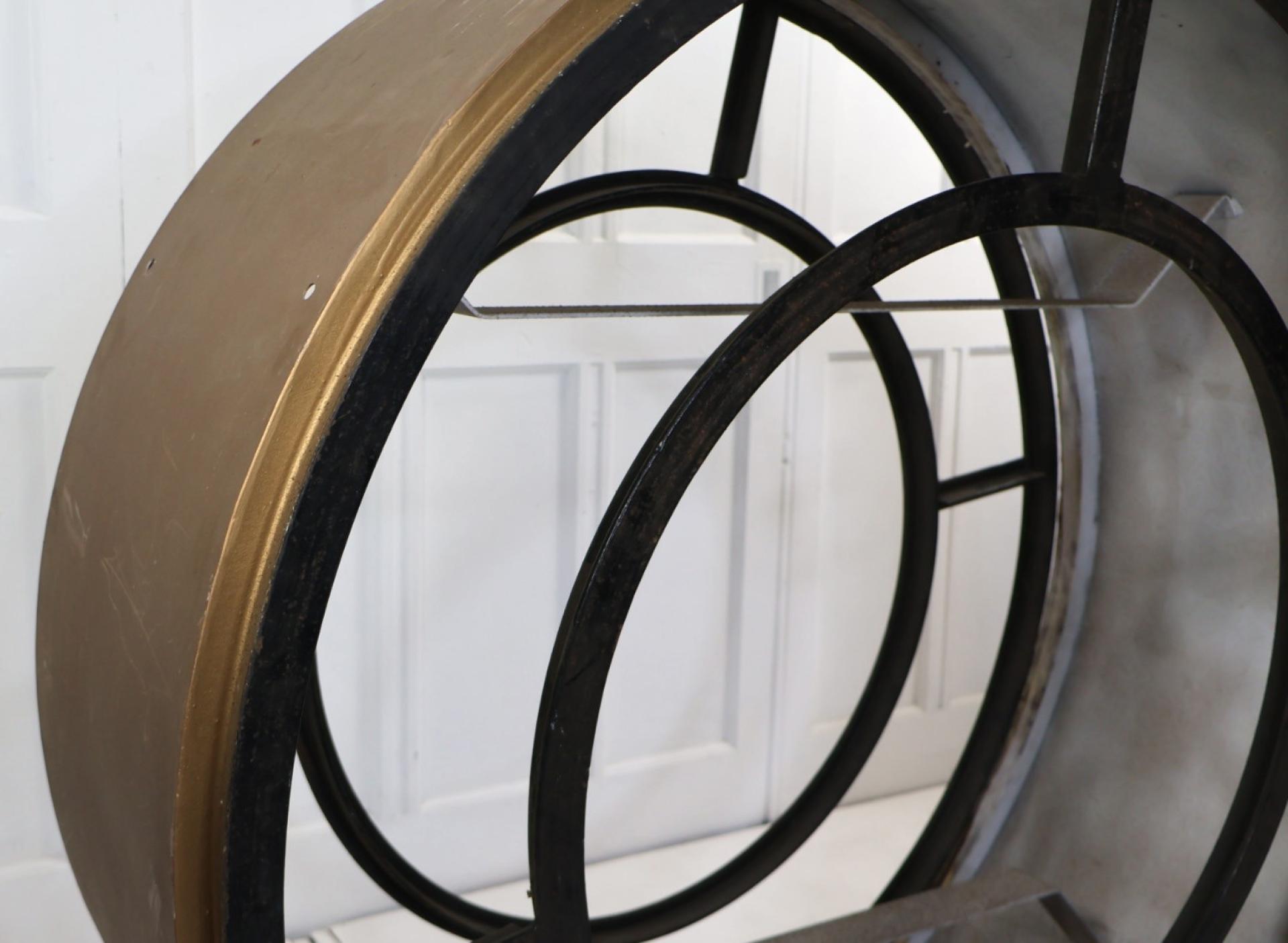 A huge, early 20thc double sided clock case, with 2 removable cast sections to each face.