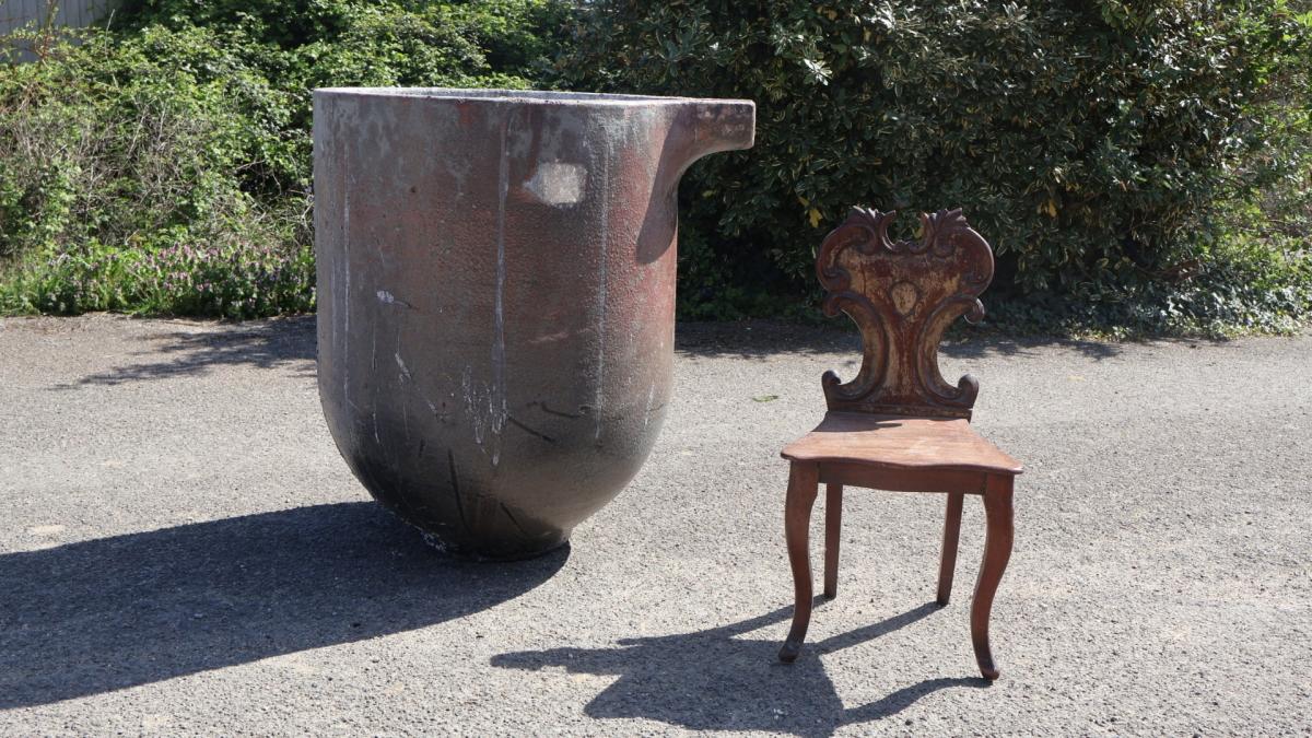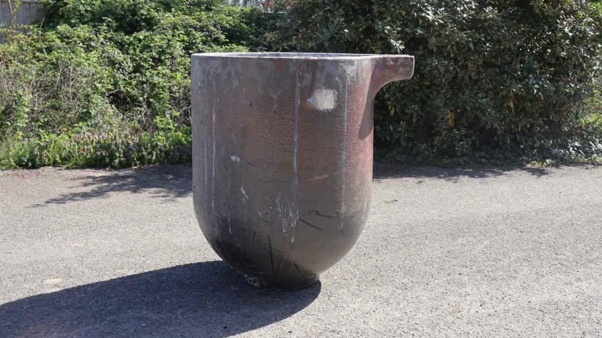 A huge crucible, salvaged directly from a foundry in the East Midlands.