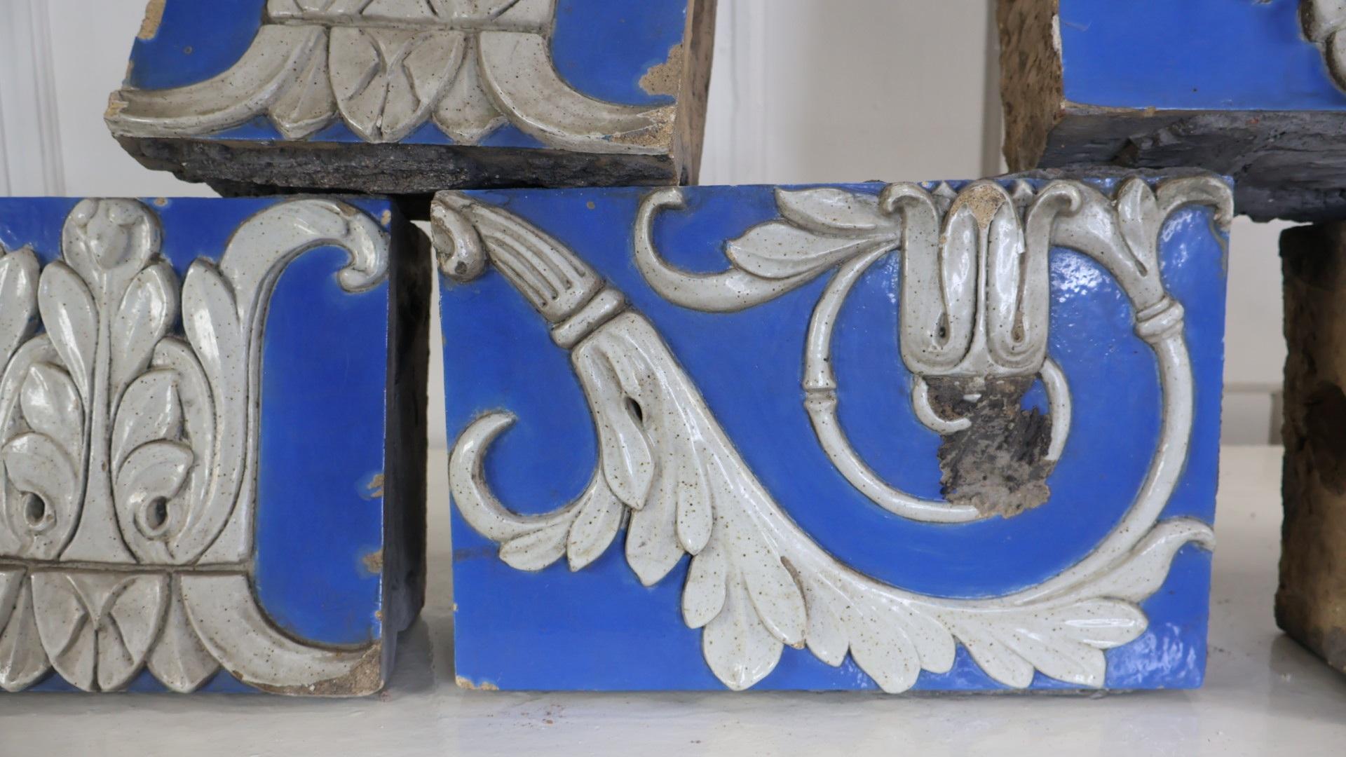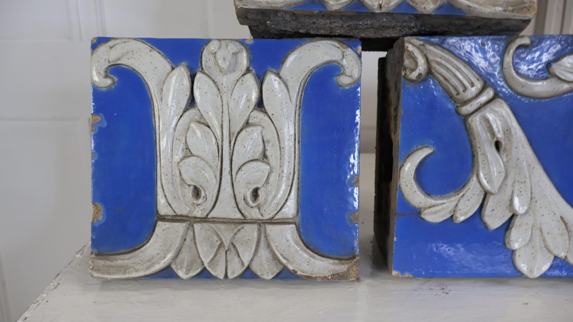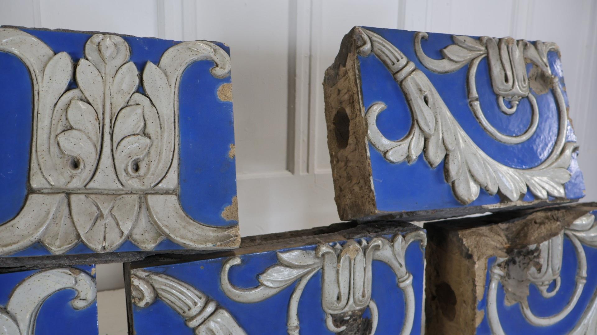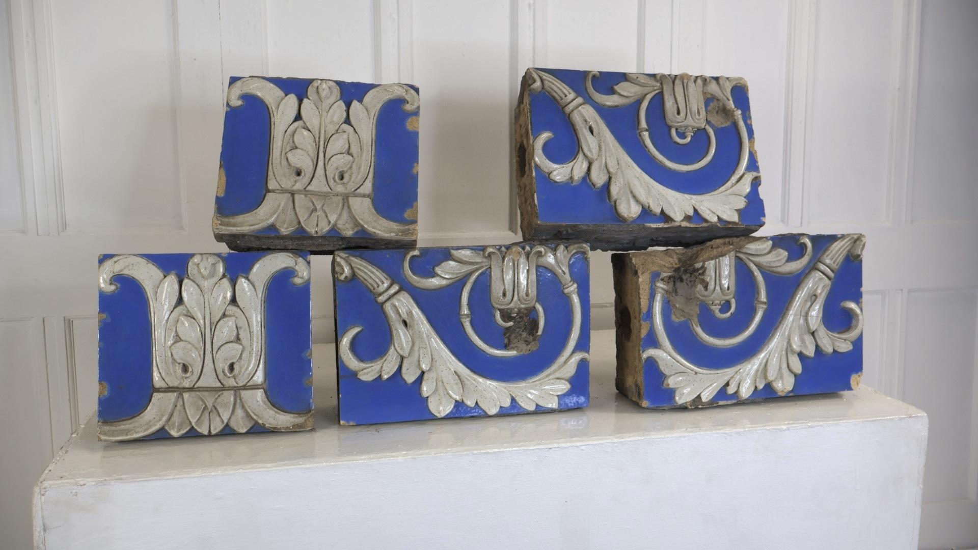 A rare set of 5 early 17thc Robbiana workshop terracotta building fragments, most likely part of a frieze.