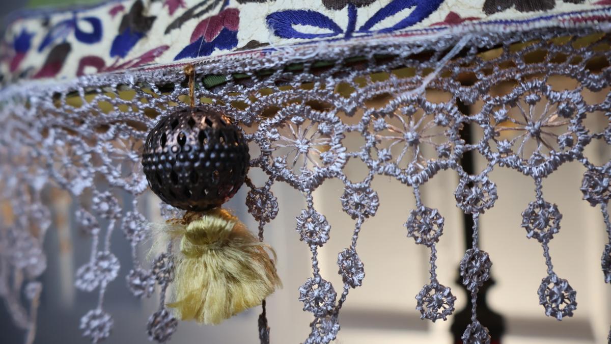 French c1920s, 3ft tall bohemian table lamp, reputedly from a Paris brothel.
