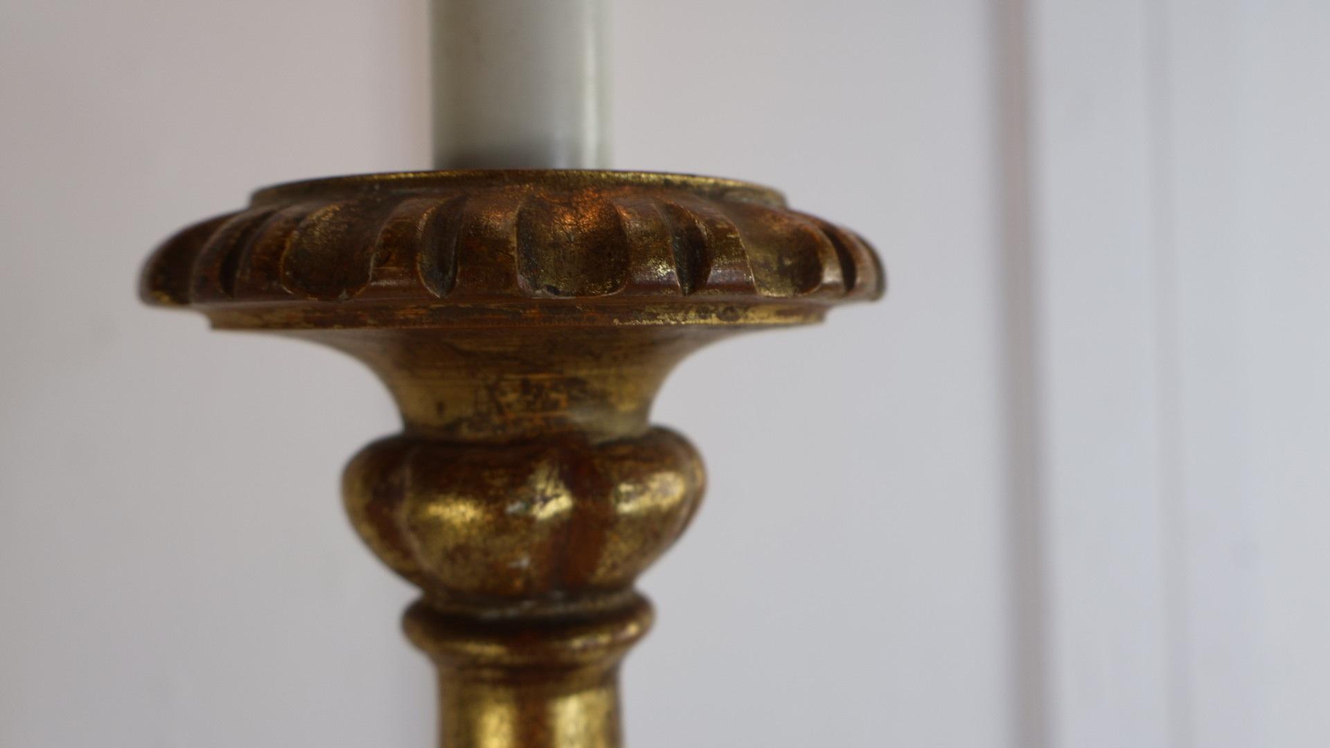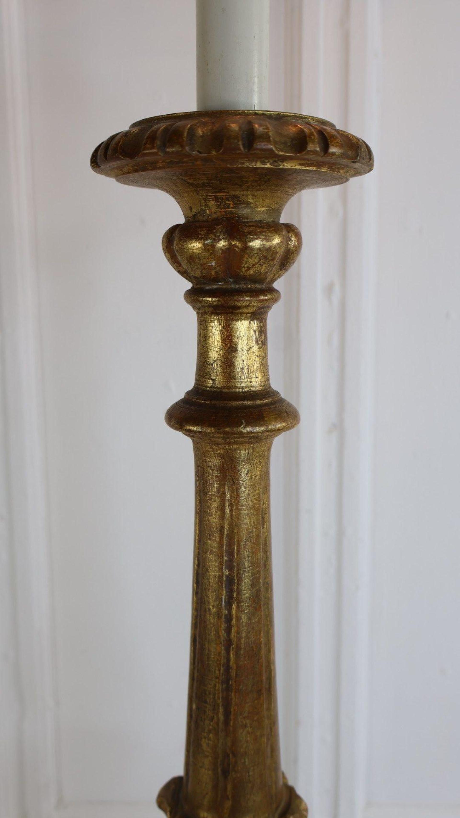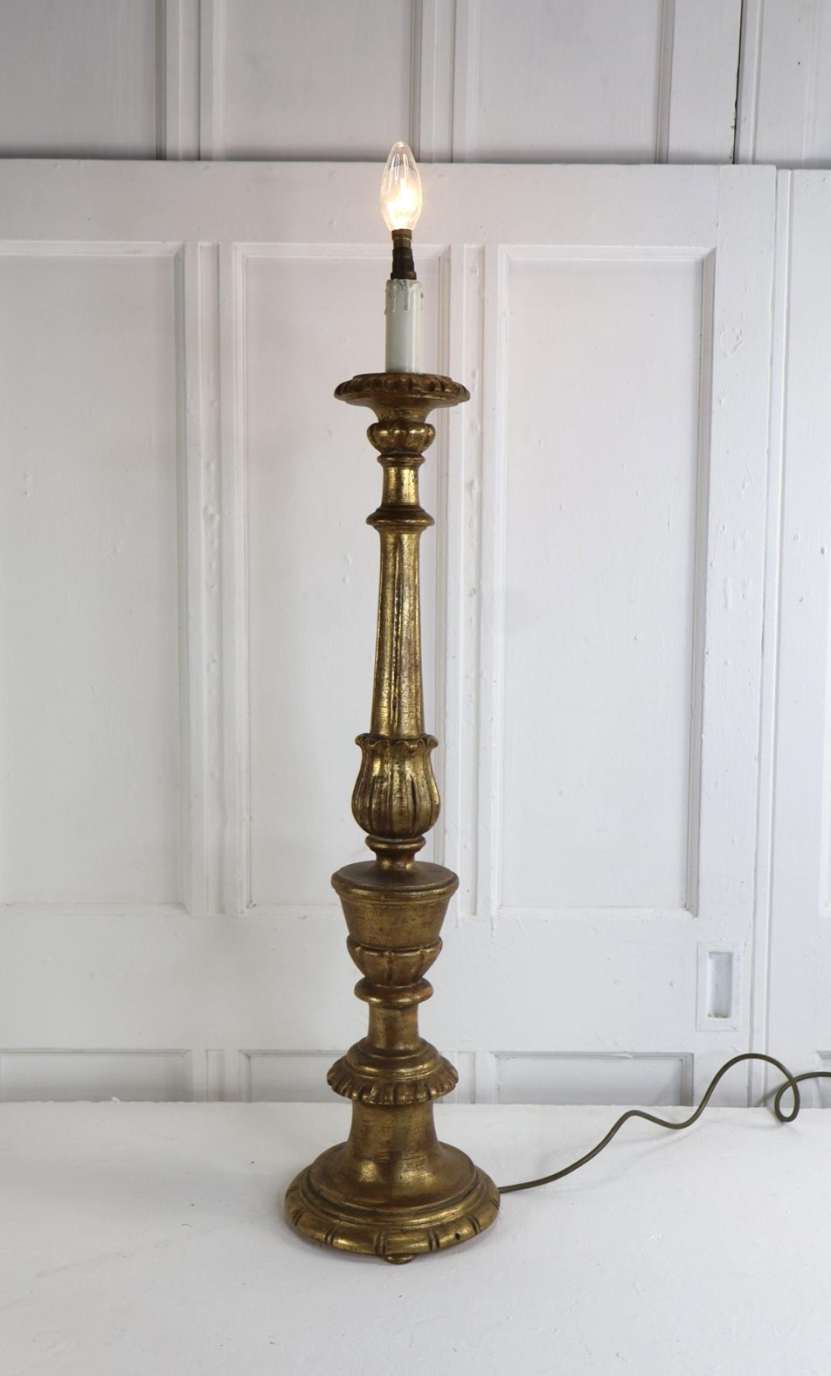 Of impressive scale at almost 3ft tall, a large hand carved and gold gilded table lamp.