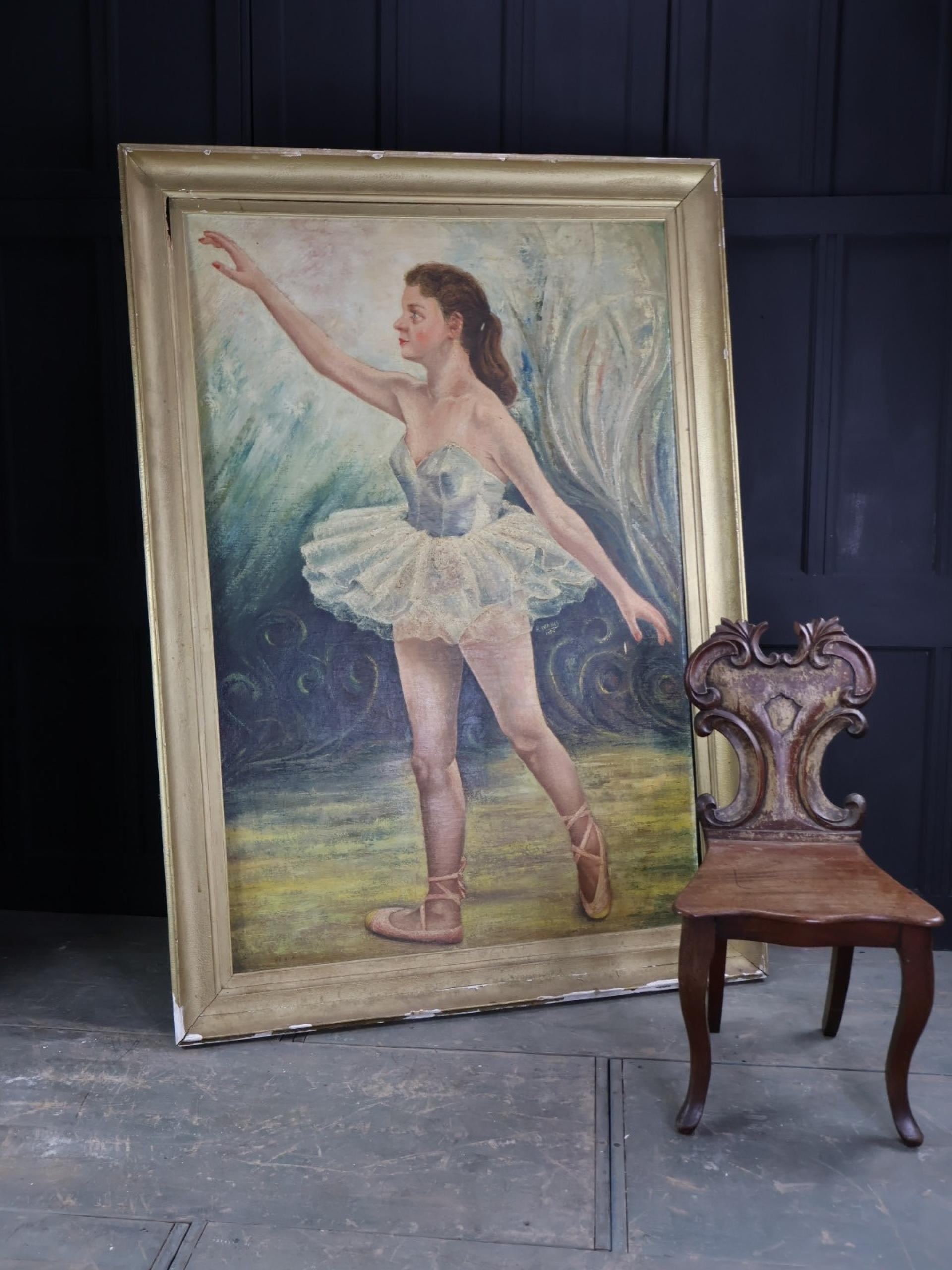 Of great scale and proportions, a very decorative oil on canvas depicting a ballerina.